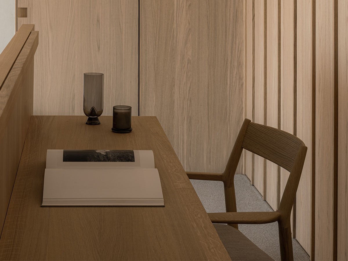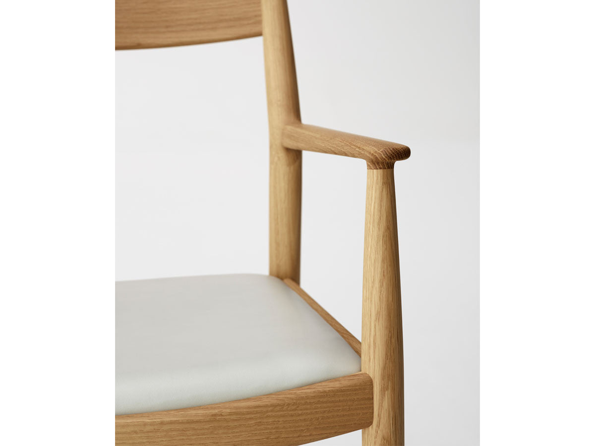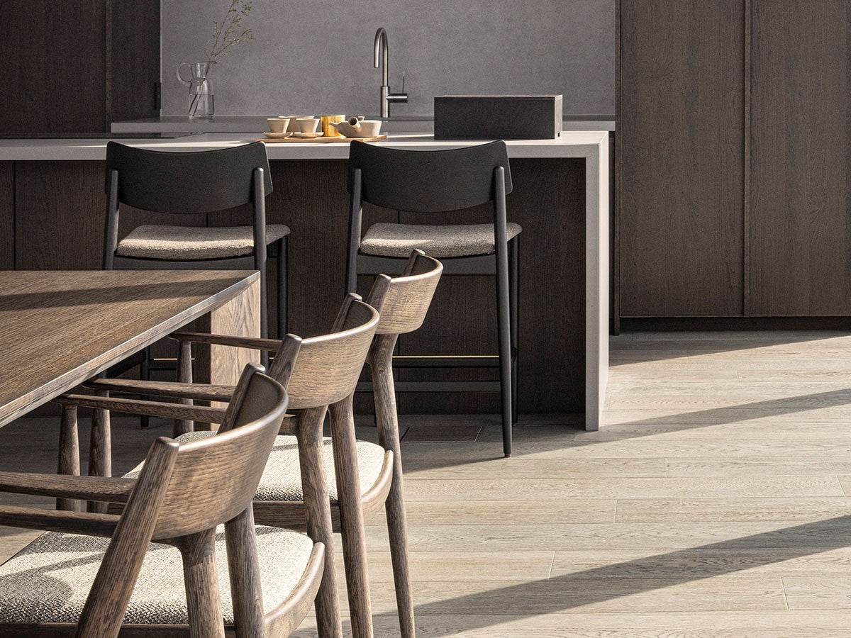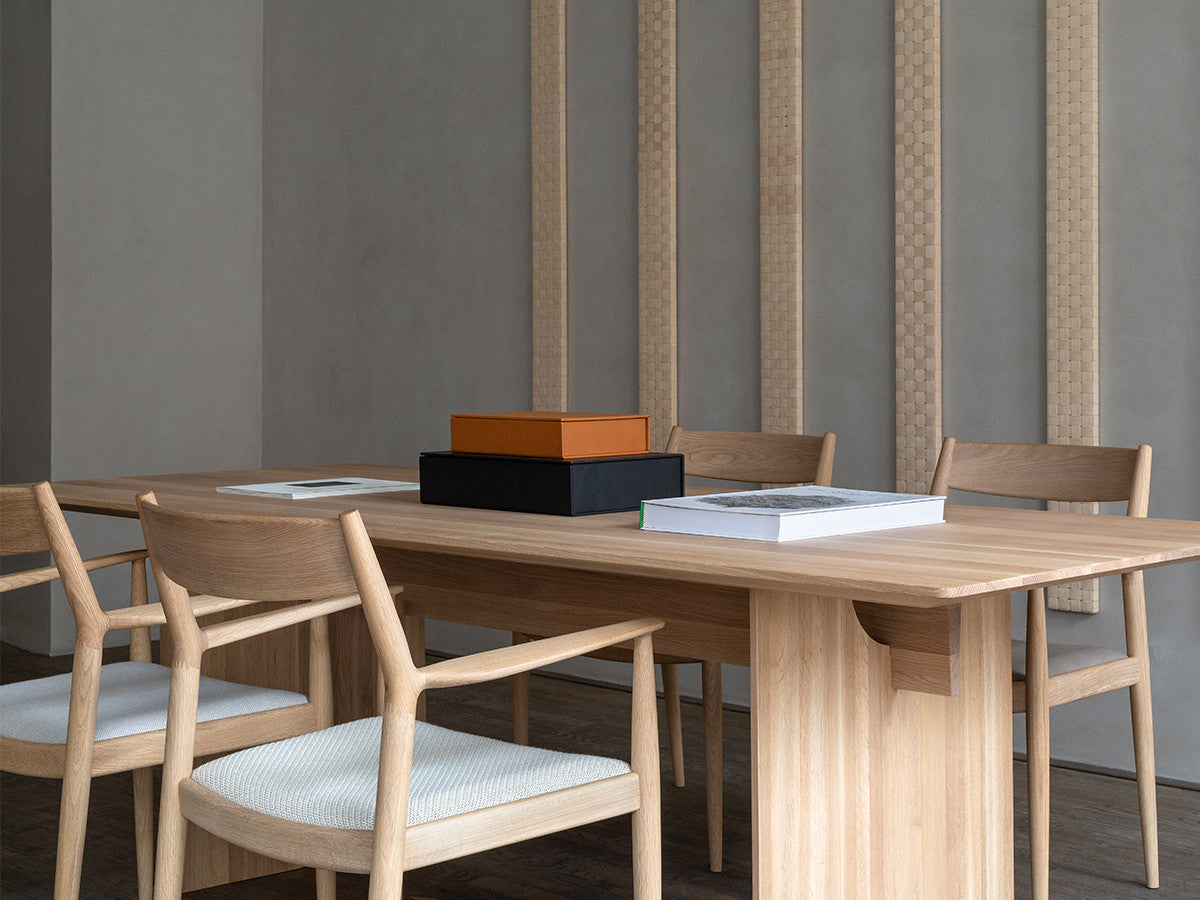 どの方向から見ても、加える要素も削る要素もない、ソフトミニマリズムを体現した緻密なデザイン。このダイニングチェアはデザイナーがカリモクの工場を視察し、職人と現場でワークショップを行った結果生まれたピースです。既存のパーツをアップデートすることで、日本とスカンジナビアのデザインが持つ審美性を融合。構造はシンプルながらも、暖かく、親しみやすい、クラシックチェアを生み出しました。非常に線が細く緻密なディテールを形にするために木工技術の限界に挑み、求めるデザイン性と強度との両立を実現しています。デンマークと日本、両国の相互的な敬意から生まれたカリモクケースには、両国のデザインの伝統に明白に息づく自然とのつながりが感じられます。現在、都市生活者の間では、天然の素材で作られた環境に囲まれた、感性を刺激する空間としての自宅に対するニーズが高まっています。これは自然とのつながりを再び持ちたいという願望を反映しています。カリモクケースでは、自宅に良質で自然を感じさせるカリモクデザインを採用することで、シンプルかつ効果的に生活の質を高めることができると考えています。
