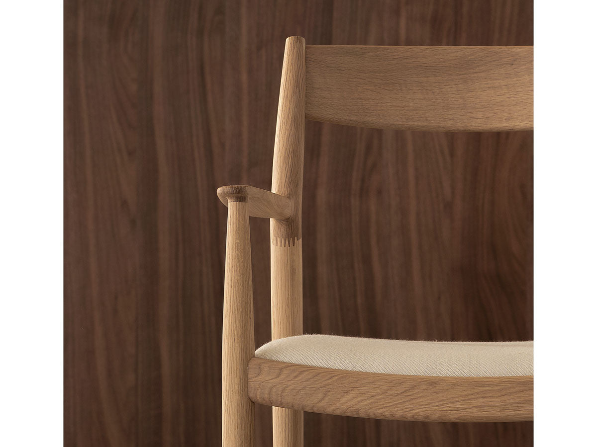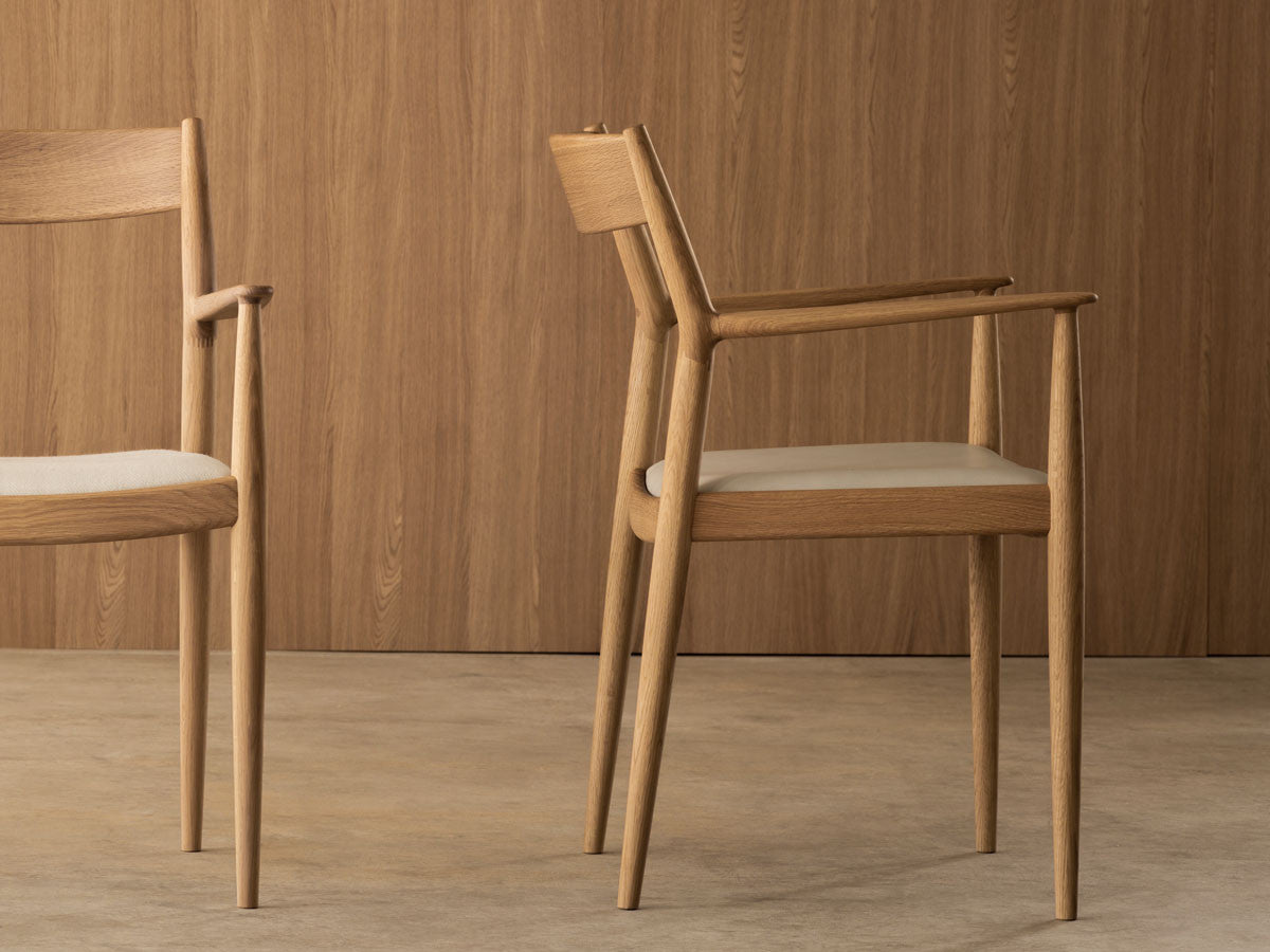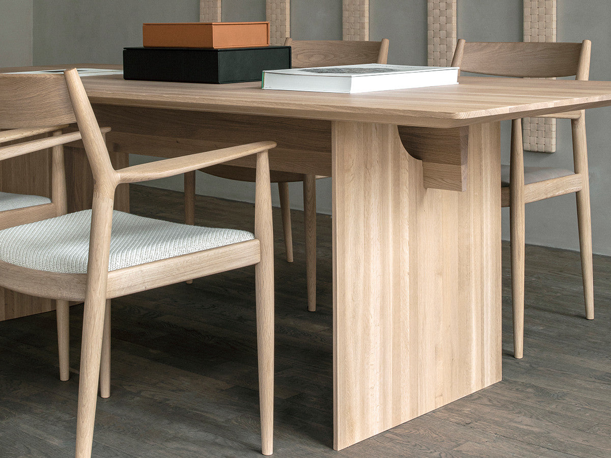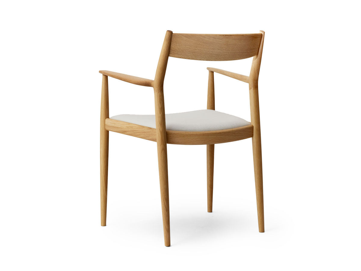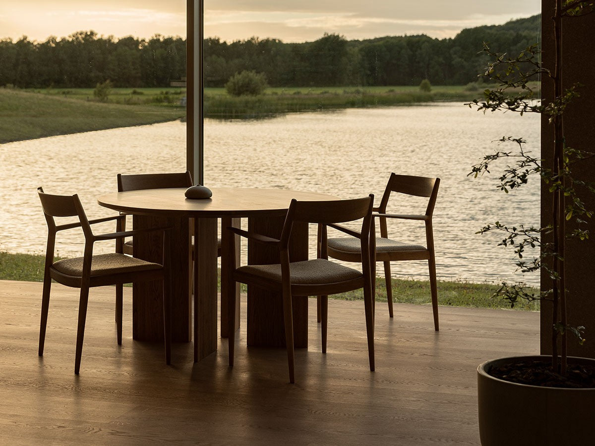 どの方向から見ても、加える要素も削る要素もない、ソフトミニマリズムを体現した緻密なデザイン。このダイニングチェアはデザイナーがカリモクの工場を視察し、職人と現場でワークショップを行った結果生まれたピースです。既存のパーツをアップデートすることで、日本とスカンジナビアのデザインが持つ審美性を融合。構造はシンプルながらも、暖かく、親しみやすい、クラシックチェアを生み出しました。非常に線が細く緻密なディテールを形にするために木工技術の限界に挑み、求めるデザイン性と強度との両立を実現しています。デンマークと日本、両国の相互的な敬意から生まれたカリモクケースには、両国のデザインの伝統に明白に息づく自然とのつながりが感じられます。現在、都市生活者の間では、天然の素材で作られた環境に囲まれた、感性を刺激する空間としての自宅に対するニーズが高まっています。これは自然とのつながりを再び持ちたいという願望を反映しています。カリモクケースでは、自宅に良質で自然を感じさせるカリモクデザインを採用することで、シンプルかつ効果的に生活の質を高めることができると考えています。