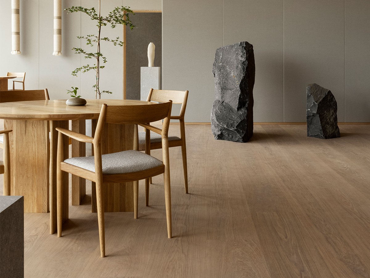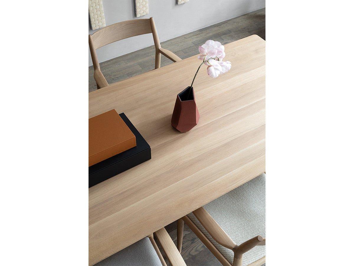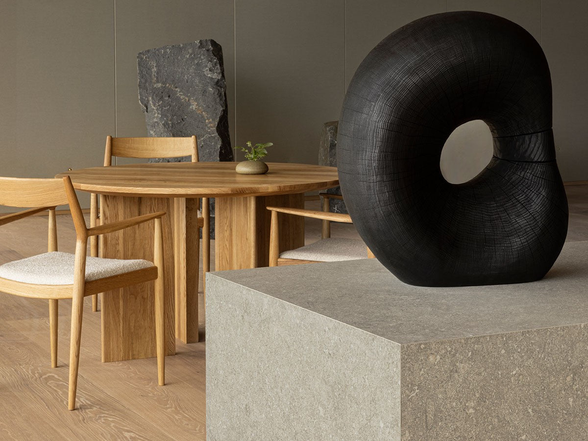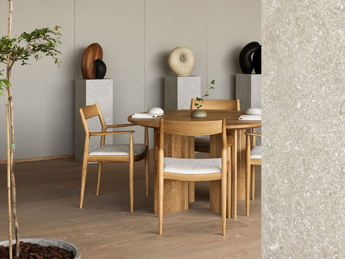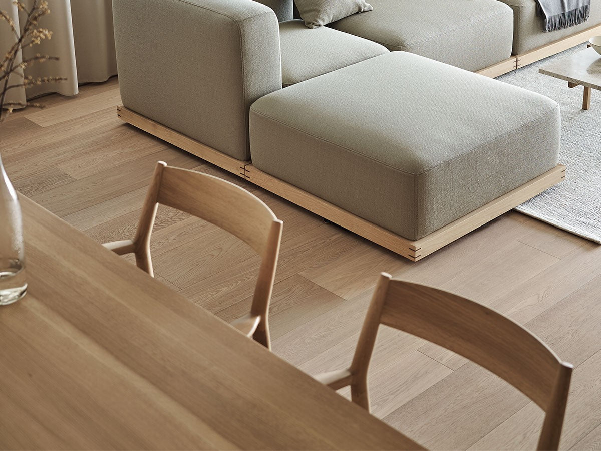 どの方向から見ても、加える要素も削る要素もない、ソフトミニマリズムを体現した緻密なデザイン。このダイニングチェアはデザイナーがカリモクの工場を視察し、職人と現場でワークショップを行った結果生まれたピースです。既存のパーツをアップデートすることで、日本とスカンジナビアのデザインが持つ審美性を融合。構造はシンプルながらも、暖かく、親しみやすい、クラシックチェアを生み出しました。非常に線が細く緻密なディテールを形にするために木工技術の限界に挑み、求めるデザイン性と強度との両立を実現しています。デンマークと日本、両国の相互的な敬意から生まれたカリモクケースには、両国のデザインの伝統に明白に息づく自然とのつながりが感じられます。現在、都市生活者の間では、天然の素材で作られた環境に囲まれた、感性を刺激する空間としての自宅に対するニーズが高まっています。これは自然とのつながりを再び持ちたいという願望を反映しています。カリモクケースでは、自宅に良質で自然を感じさせるカリモクデザインを採用することで、シンプルかつ効果的に生活の質を高めることができると考えています。