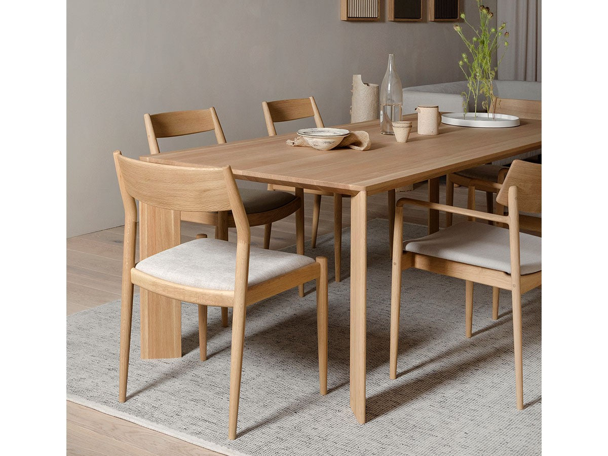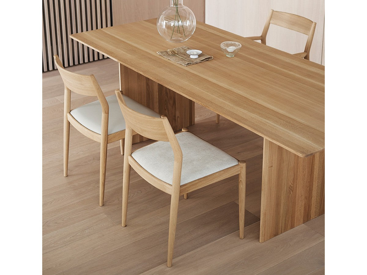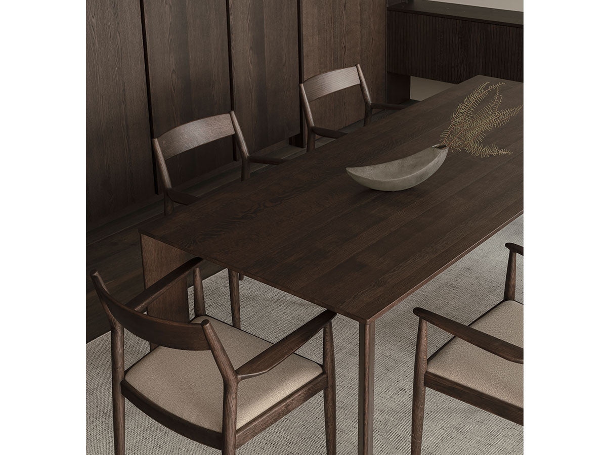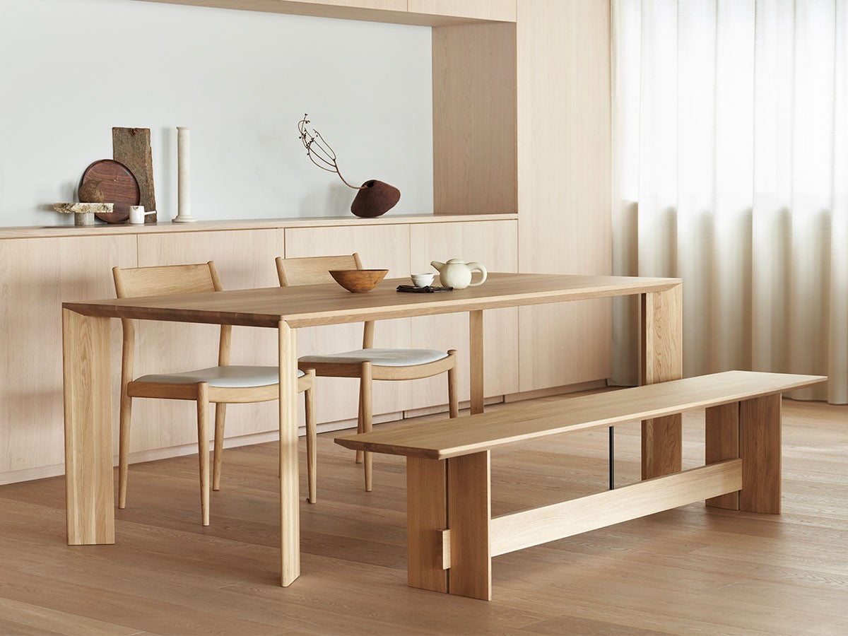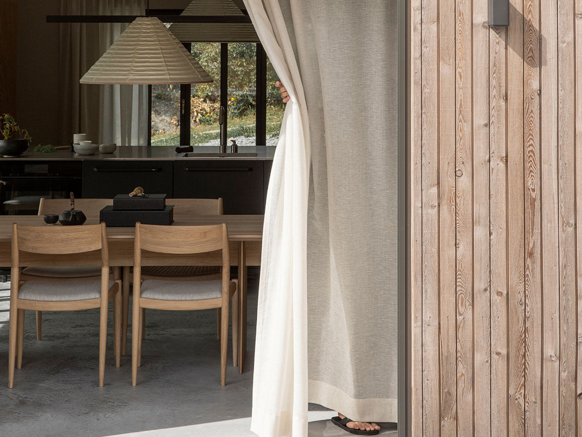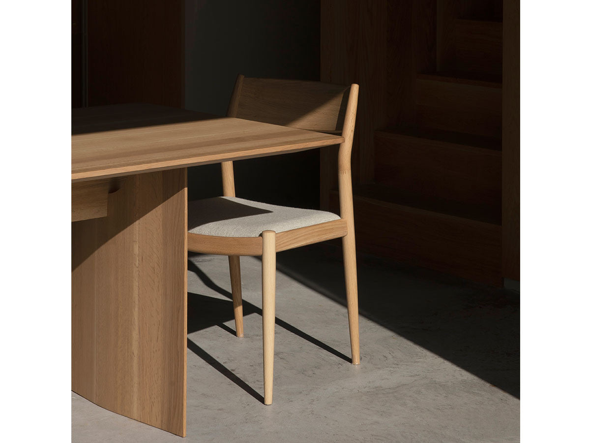 どの方向から見ても、加える要素も削る要素もない、ソフトミニマリズムを体現した緻密なデザイン。このダイニングチェアはデザイナーがカリモクの工場を視察し、職人と現場でワークショップを行った結果生まれたピースです。既存のパーツをアップデートすることで、日本とスカンジナビアのデザインが持つ審美性を融合。構造はシンプルながらも、暖かく、親しみやすい、クラシックチェアを生み出しました。非常に線が細く緻密なディテールを形にするために木工技術の限界に挑み、求めるデザイン性と強度との両立を実現しています。アームチェア(N-DC01)よりも少し背もたれの幅が広く、全体の幅感をコンパクトに調整されています。デンマークと日本、両国の相互的な敬意から生まれたカリモクケースには、両国のデザインの伝統に明白に息づく自然とのつながりが感じられます。現在、都市生活者の間では、天然の素材で作られた環境に囲まれた、感性を刺激する空間としての自宅に対するニーズが高まっています。これは自然とのつながりを再び持ちたいという願望を反映しています。カリモクケースでは、自宅に良質で自然を感じさせるカリモクデザインを採用することで、シンプルかつ効果的に生活の質を高めることができると考えています。