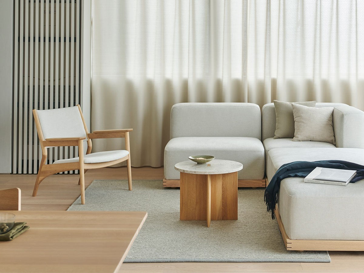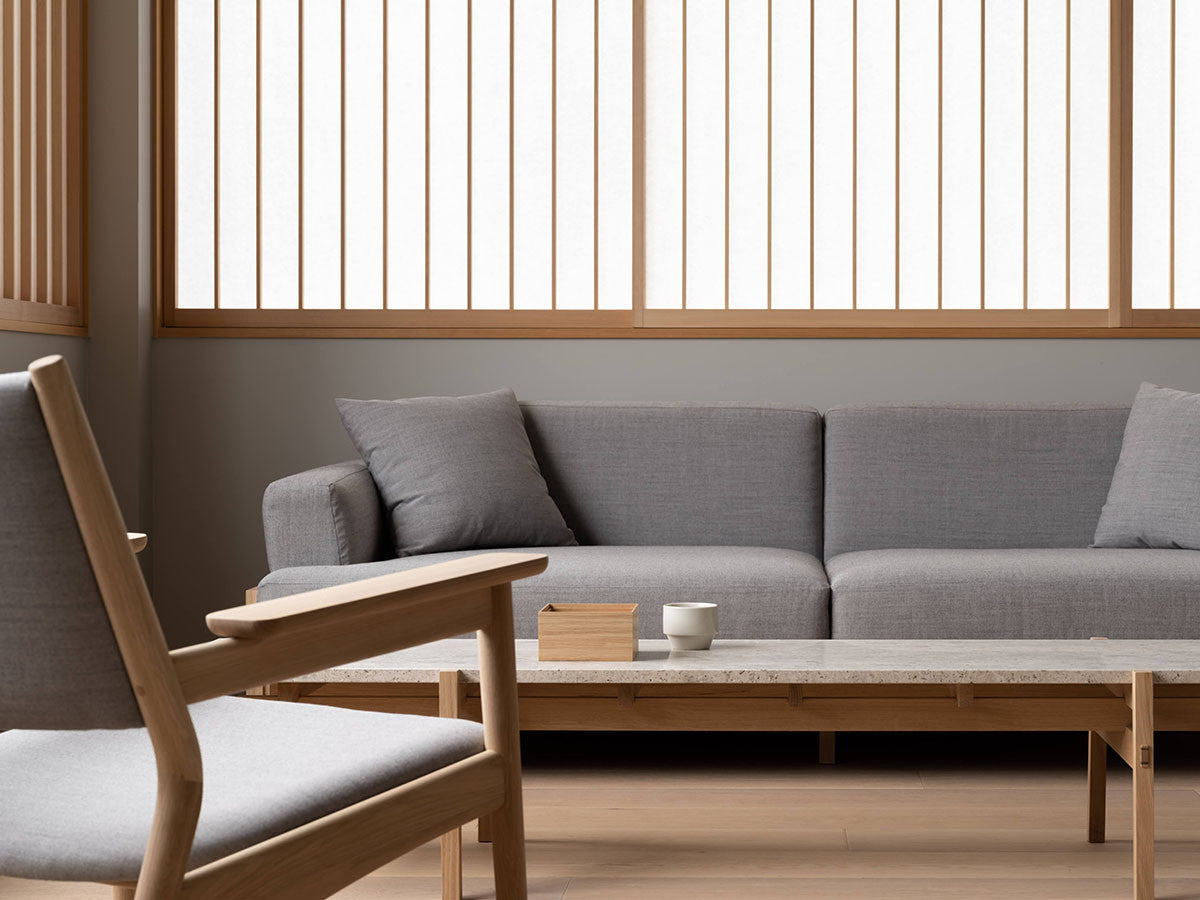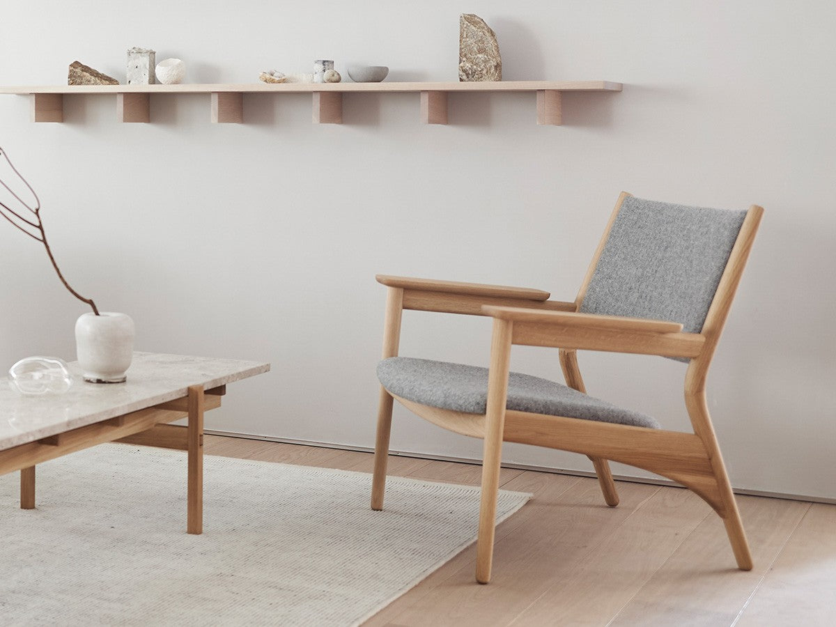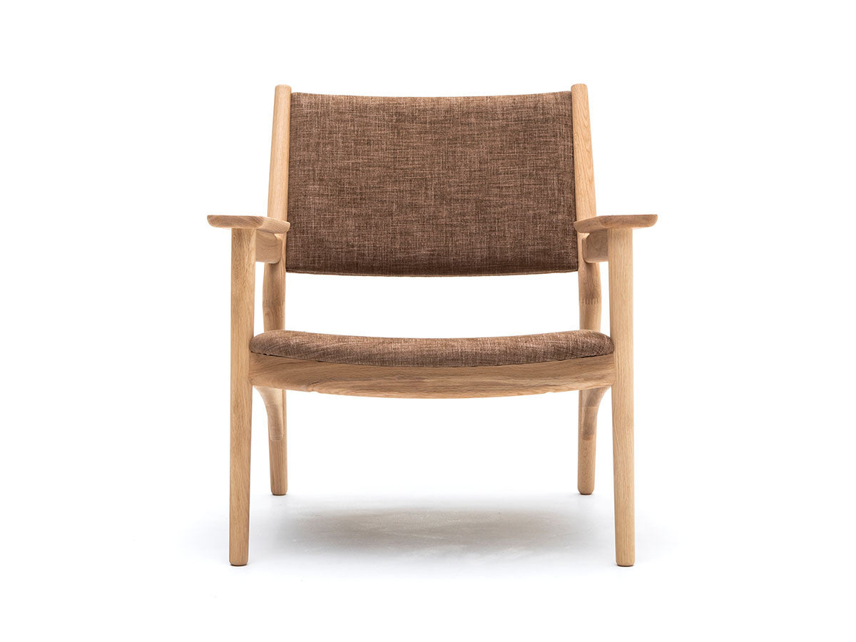 1950年代の伝統的なデンマークの家具デザインからインスピレーションを得た、ダイニングチェアとソファのハイブリッドのようなラウンジチェア。ソファのように広々としながら、ダイニングチェアのような洗練された軽さが特徴的です。本商品は張込シートタイプ(N-LC01)です。ハンモックシートタイプ(N-LC02)と同デザインに見えますが、それぞれのシートの性質に合わせた精細なバランスチューニングがなされています。いずれもセッティングスペースを要さないコンパクトなサイズ性ですが、掛けてみるとしっくり落ち着く完成度の高いラウンジチェアに仕上がっています。木部に比べて傷みやすいシートやバックレストのオーバーホールが可能なロングライフに配慮された構造です。バックレストは本体フレームに張込まれたきれいな仕上がりに見えますが、実は丸ごとユニット交換も可能です。