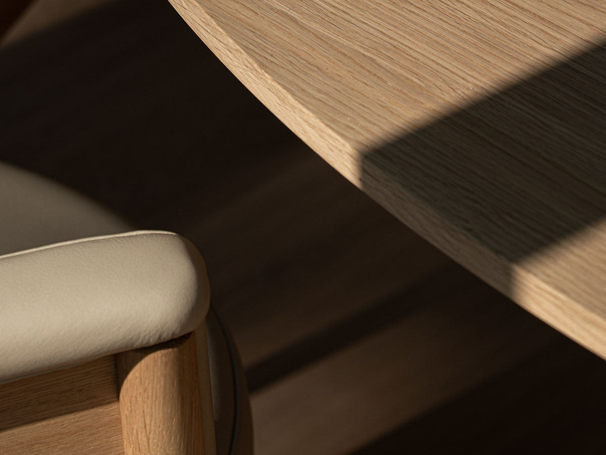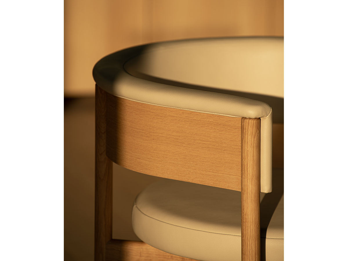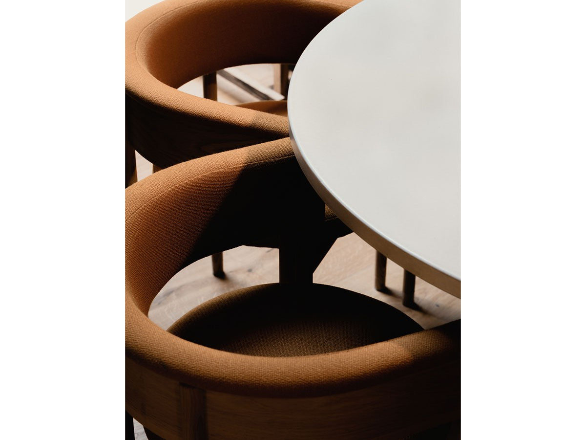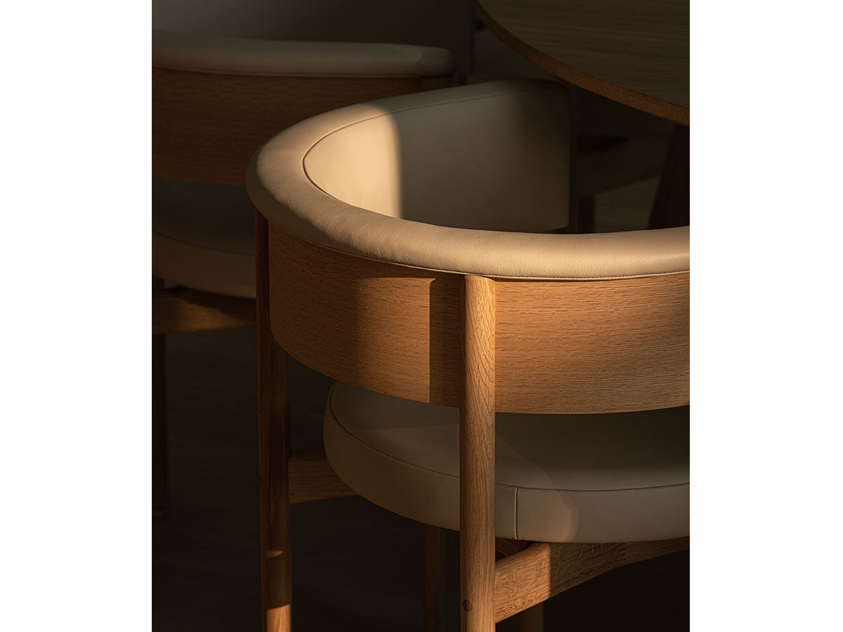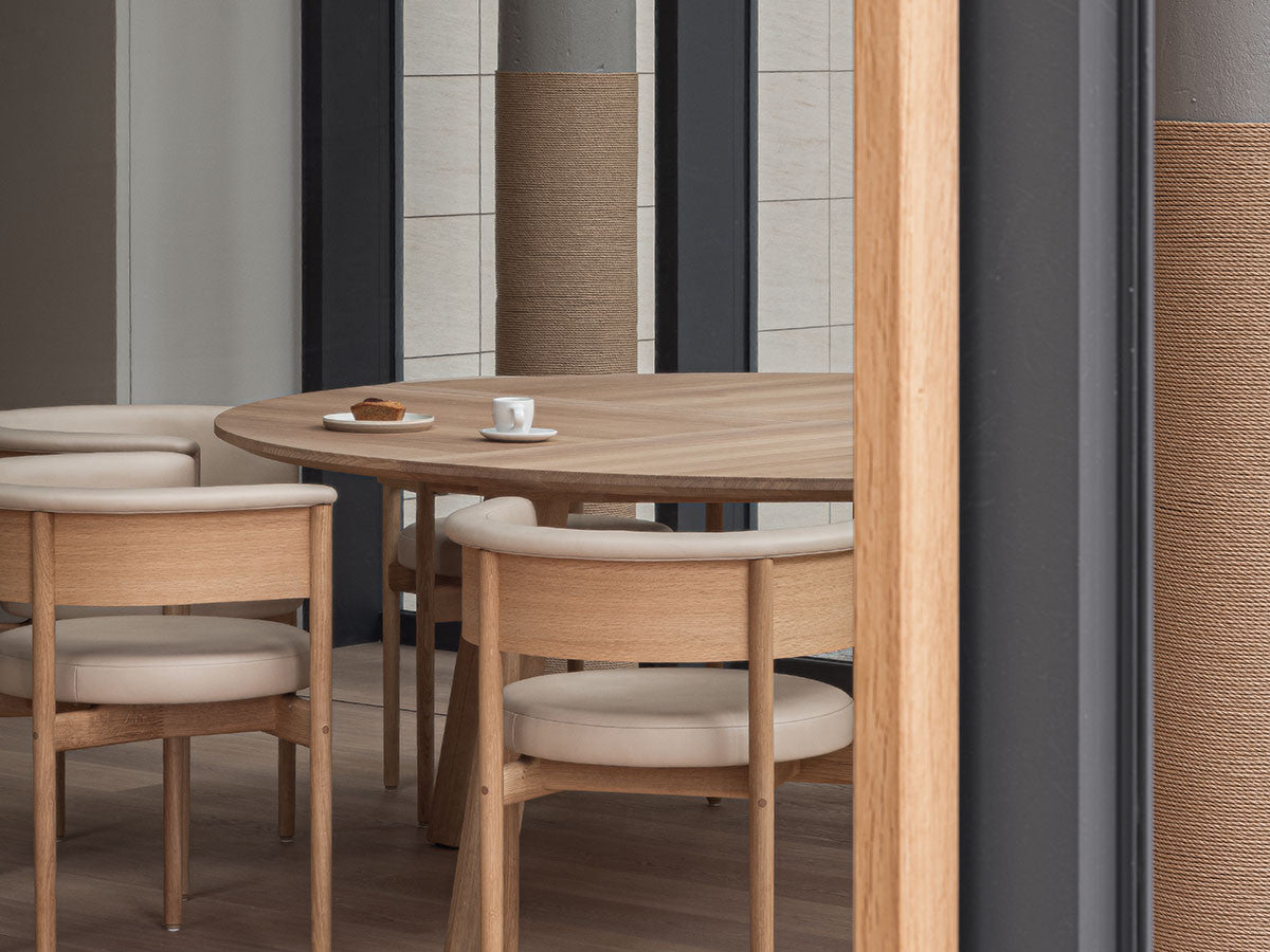 クリーンなフォルムと新鮮さのあるデザインランゲージ、またソフトで快適性のある座面は、ブルーボトルコーヒーみなとみらいのインテリアエレメンツにインスパイアされてデザインされました。低めに設定された背面とコンパクトにまとまった脚部により、ダイニングチェアでもスツールでもない、それぞれの良さを兼ね揃えた機能性豊かなチェアに仕上げられています。MINATOMIRAI CAFEみなとみらいコレクションは、横浜のみなとみらいにある「ブルーボトルコーヒー みなとみらいカフェ」に備え付けられることを想定し、つくられたコレクションです。公園に隣接し、ガラス張りの開放的な空間と曲線や木の素材使いによる柔らかさが心地よいブルーボトルコーヒー みなとみらいカフェ。カフェ全体のデザインは芦沢啓治建築設計事務所が担当し、カフェを構成する要素としてテイラーメイドの木製インテリアと家具が制作されました。テーブルやチェアなどの家具は、ノーム・アーキテクツと協働でデザインされたもので、その一部がカリモクケースのセカンドコレクションを構成しています。