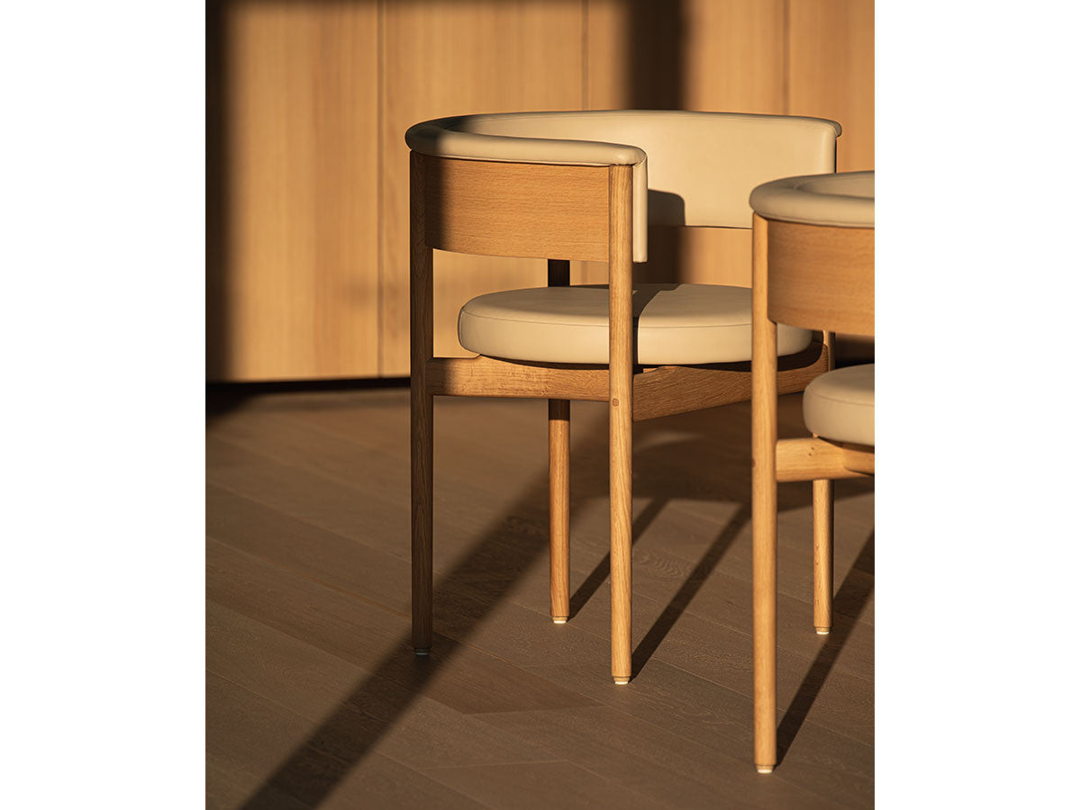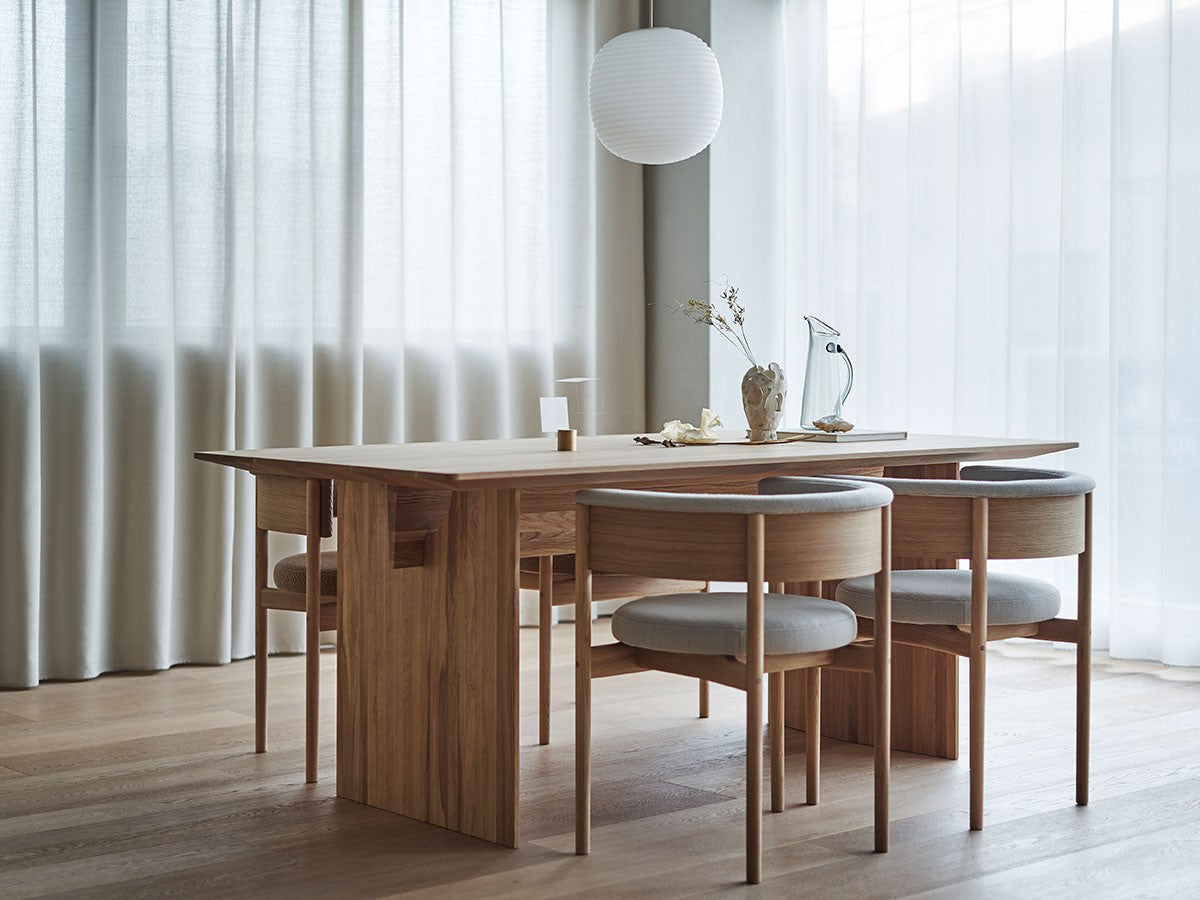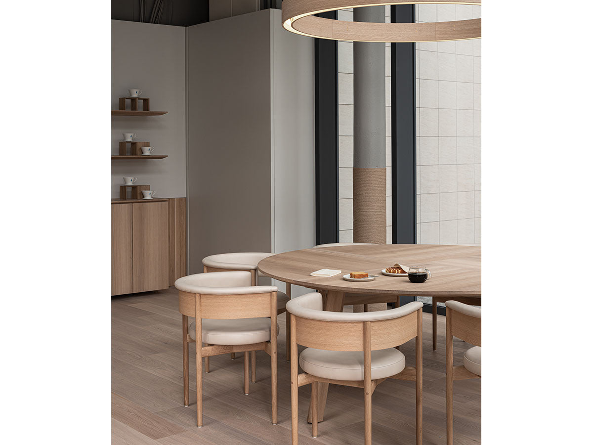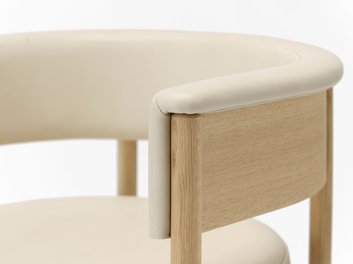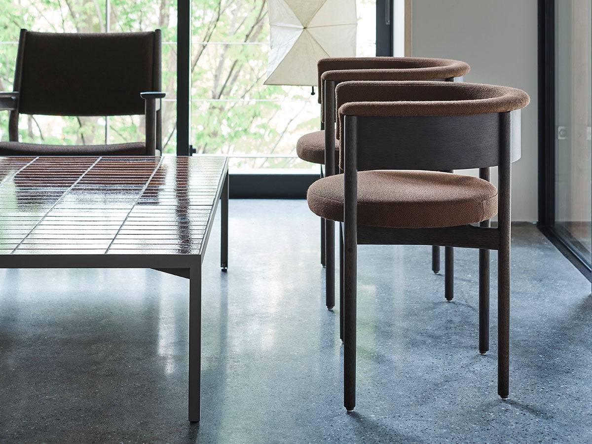 クリーンなフォルムと新鮮さのあるデザインランゲージ、またソフトで快適性のある座面は、ブルーボトルコーヒーみなとみらいのインテリアエレメンツにインスパイアされてデザインされました。低めに設定された背面とコンパクトにまとまった脚部により、ダイニングチェアでもスツールでもない、それぞれの良さを兼ね揃えた機能性豊かなチェアに仕上げられています。MINATOMIRAI CAFEみなとみらいコレクションは、横浜のみなとみらいにある「ブルーボトルコーヒー みなとみらいカフェ」に備え付けられることを想定し、つくられたコレクションです。公園に隣接し、ガラス張りの開放的な空間と曲線や木の素材使いによる柔らかさが心地よいブルーボトルコーヒー みなとみらいカフェ。カフェ全体のデザインは芦沢啓治建築設計事務所が担当し、カフェを構成する要素としてテイラーメイドの木製インテリアと家具が制作されました。テーブルやチェアなどの家具は、ノーム・アーキテクツと協働でデザインされたもので、その一部がカリモクケースのセカンドコレクションを構成しています。