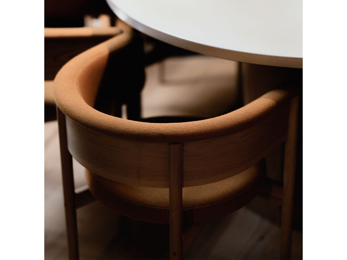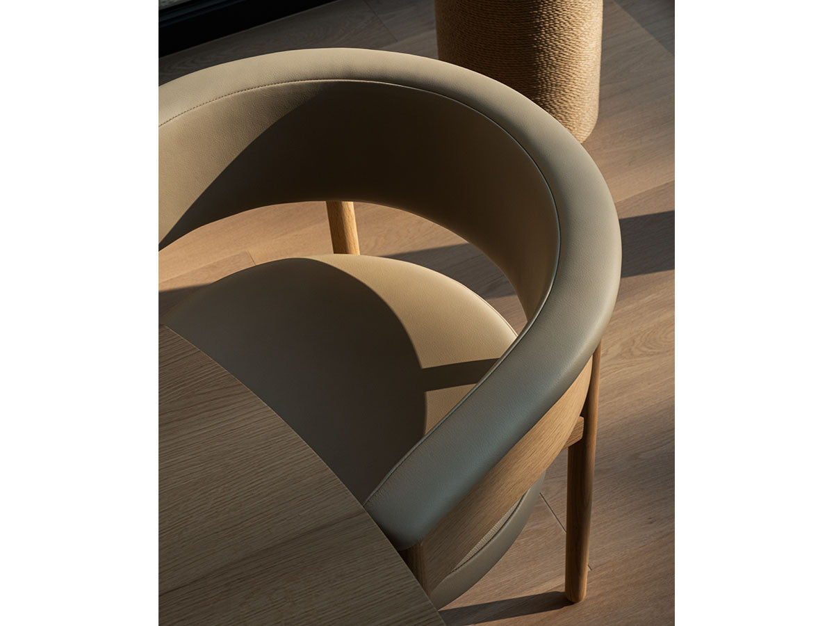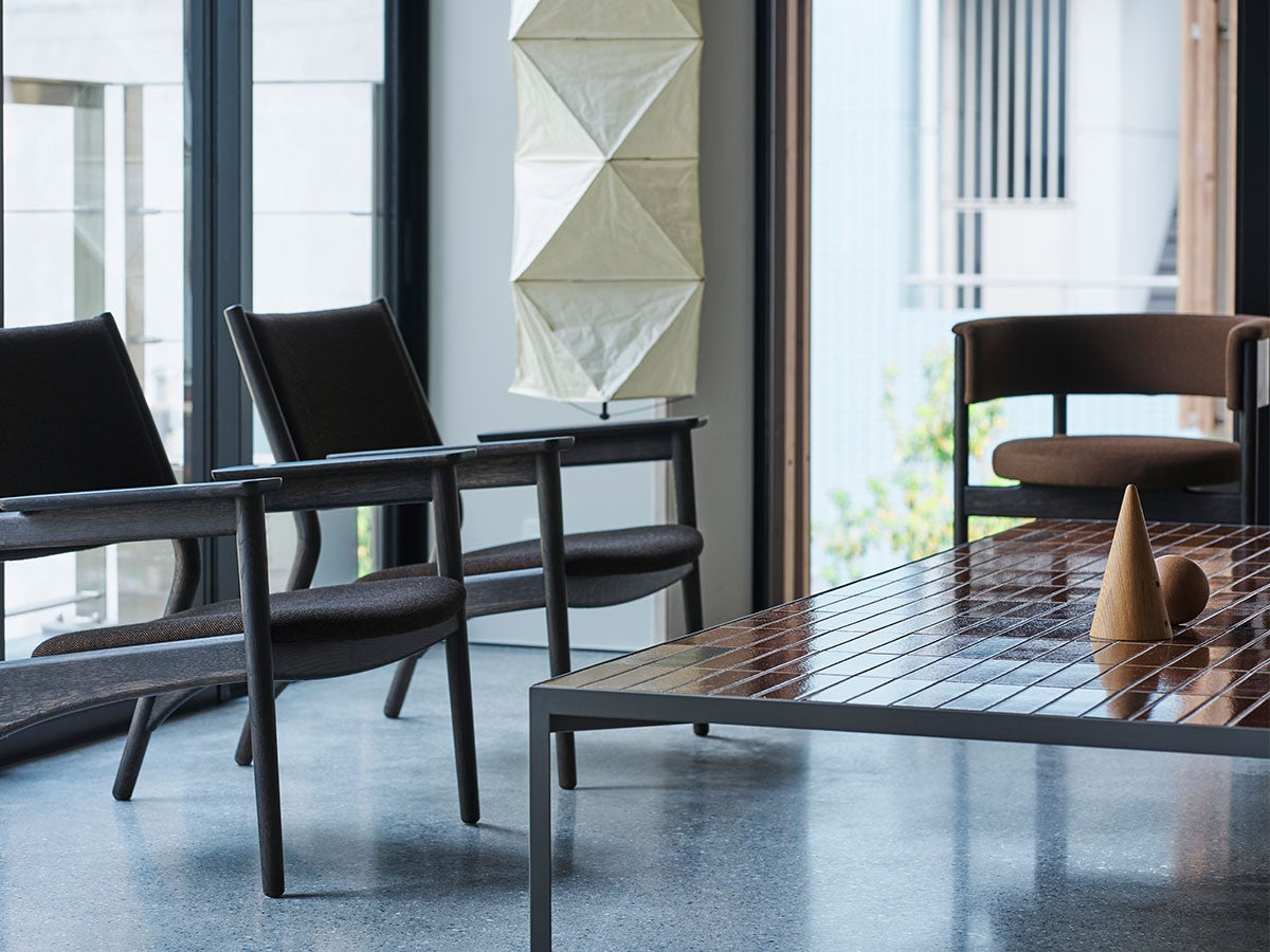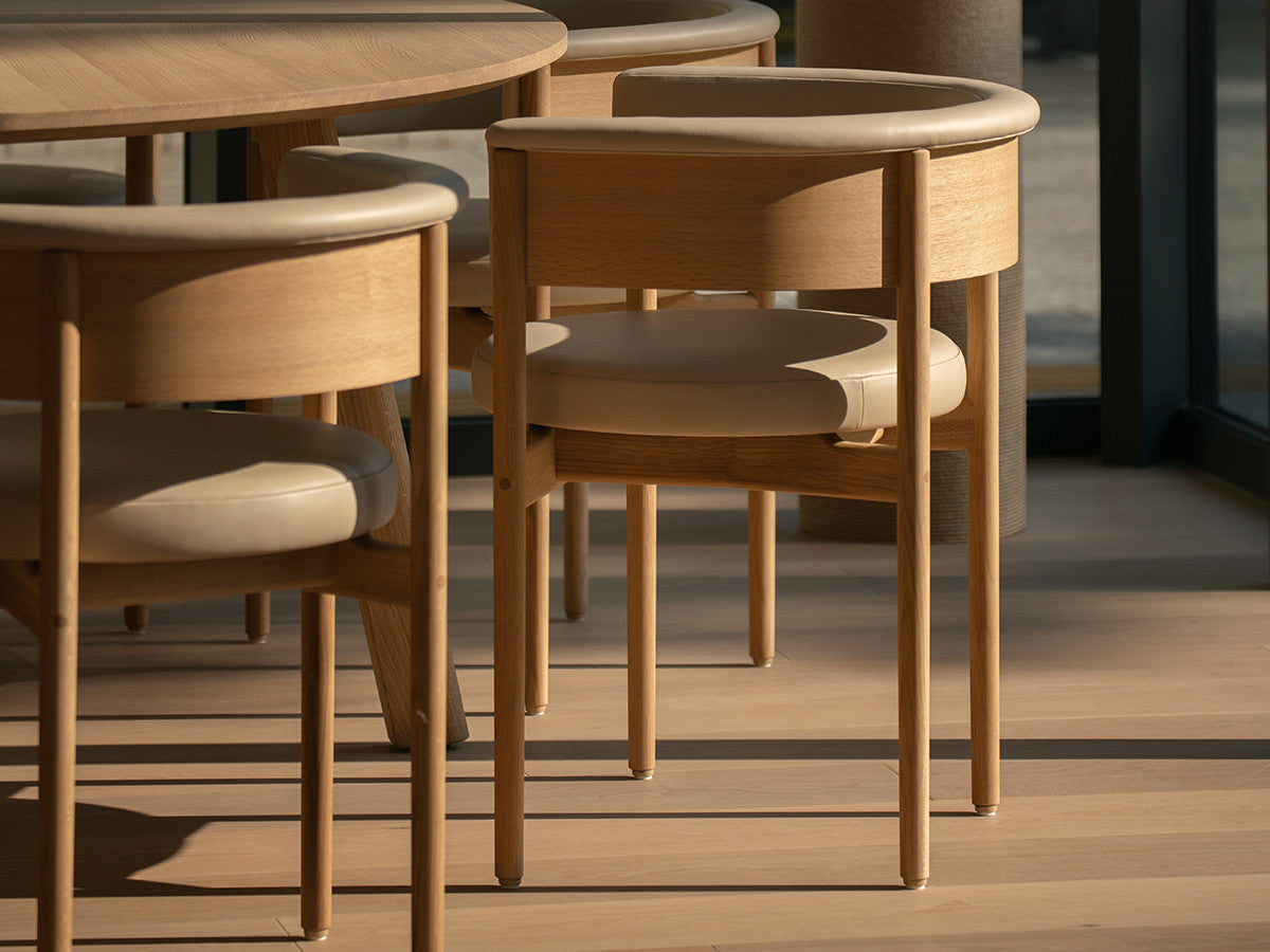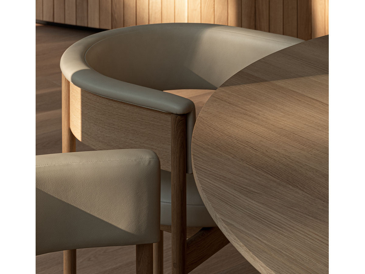 クリーンなフォルムと新鮮さのあるデザインランゲージ、またソフトで快適性のある座面は、ブルーボトルコーヒーみなとみらいのインテリアエレメンツにインスパイアされてデザインされました。低めに設定された背面とコンパクトにまとまった脚部により、ダイニングチェアでもスツールでもない、それぞれの良さを兼ね揃えた機能性豊かなチェアに仕上げられています。MINATOMIRAI CAFEみなとみらいコレクションは、横浜のみなとみらいにある「ブルーボトルコーヒー みなとみらいカフェ」に備え付けられることを想定し、つくられたコレクションです。公園に隣接し、ガラス張りの開放的な空間と曲線や木の素材使いによる柔らかさが心地よいブルーボトルコーヒー みなとみらいカフェ。カフェ全体のデザインは芦沢啓治建築設計事務所が担当し、カフェを構成する要素としてテイラーメイドの木製インテリアと家具が制作されました。テーブルやチェアなどの家具は、ノーム・アーキテクツと協働でデザインされたもので、その一部がカリモクケースのセカンドコレクションを構成しています。