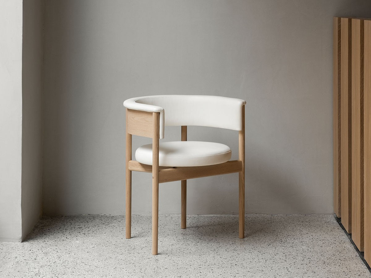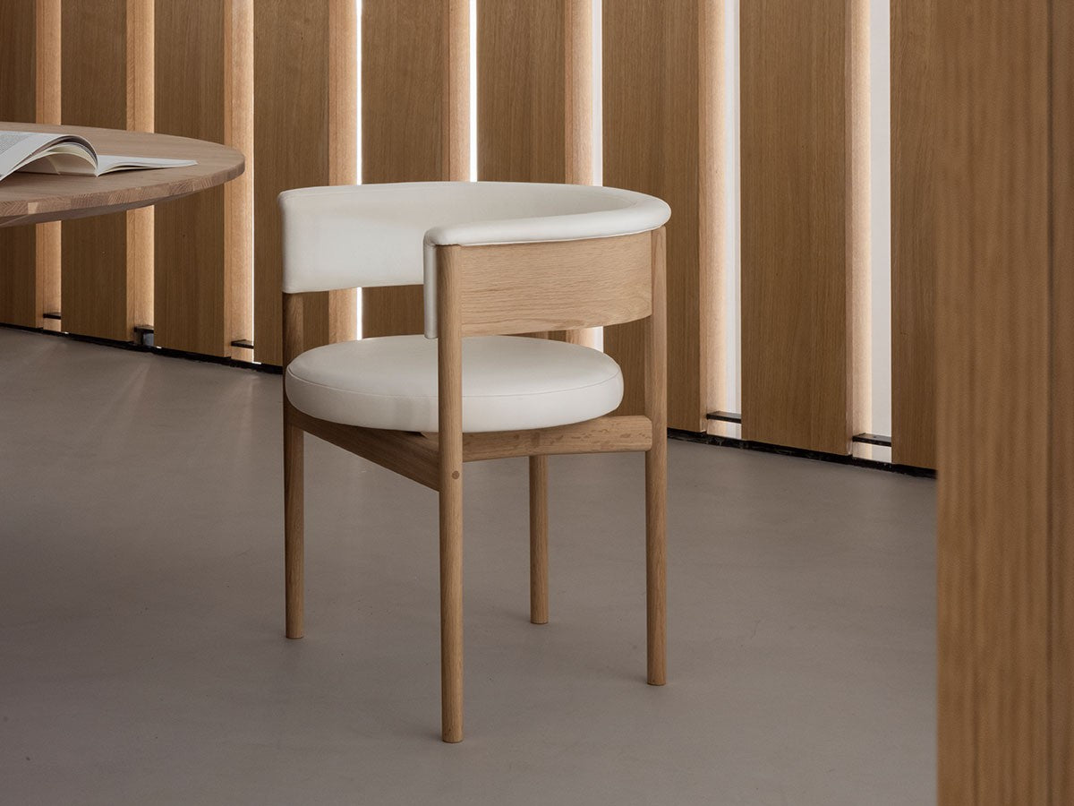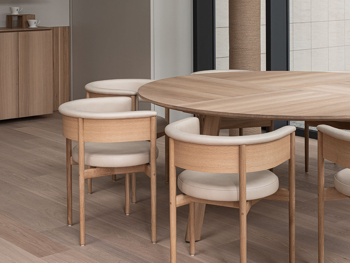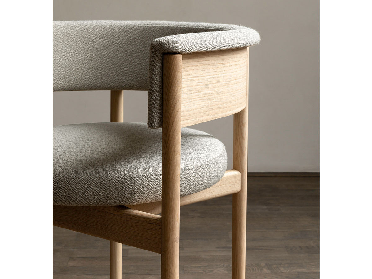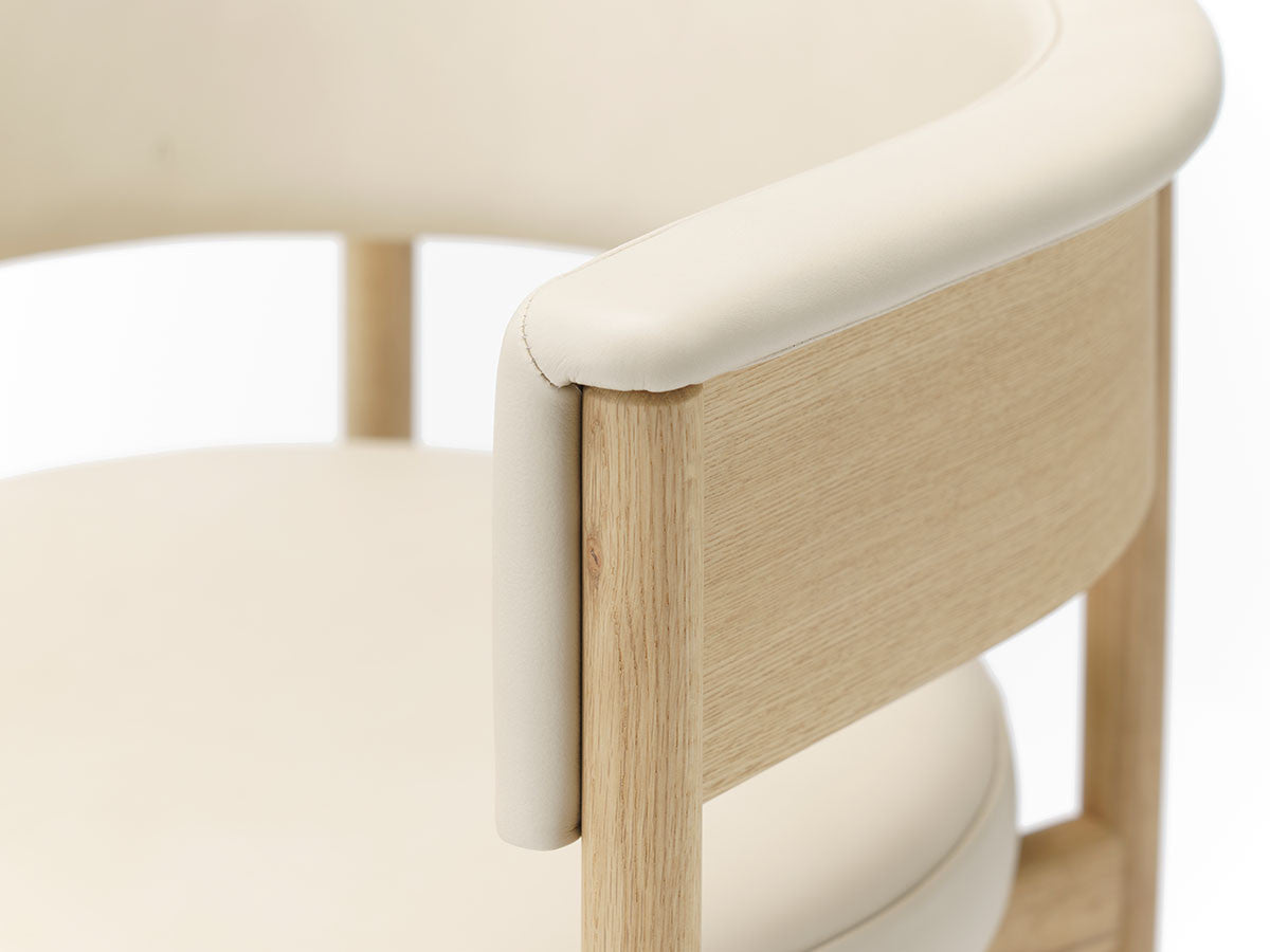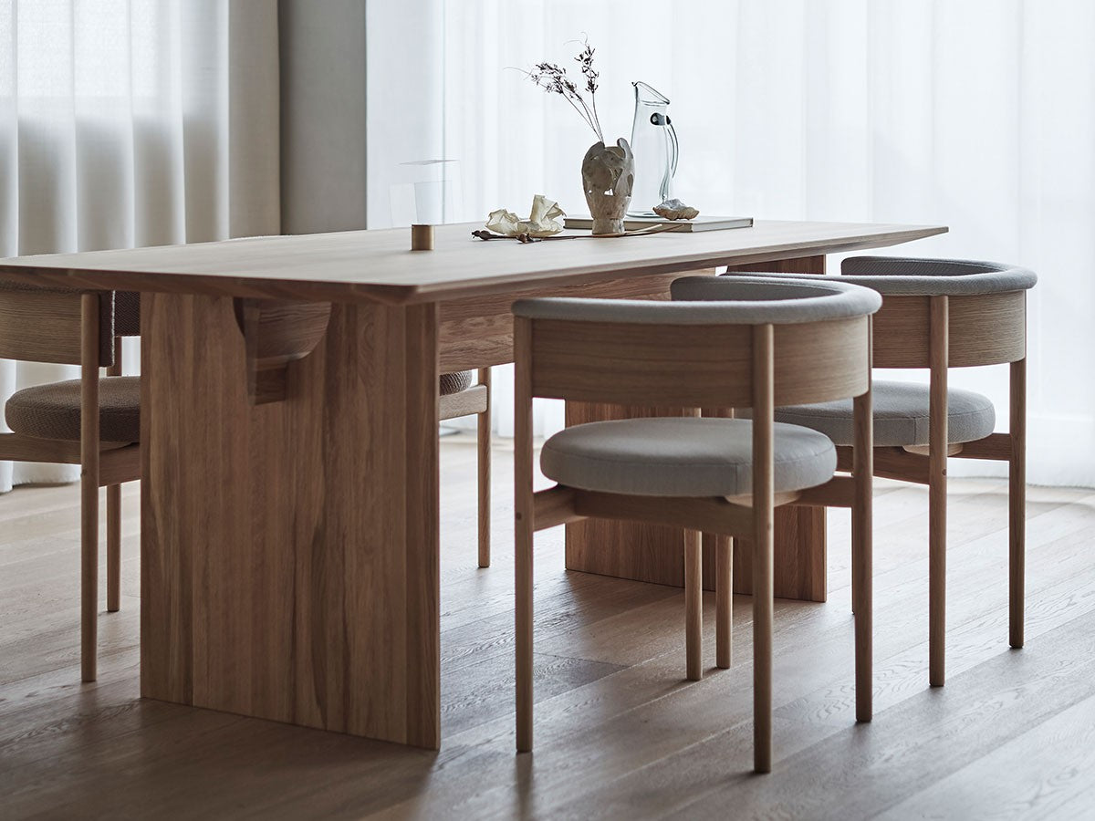 クリーンなフォルムと新鮮さのあるデザインランゲージ、またソフトで快適性のある座面は、ブルーボトルコーヒーみなとみらいのインテリアエレメンツにインスパイアされてデザインされました。低めに設定された背面とコンパクトにまとまった脚部により、ダイニングチェアでもスツールでもない、それぞれの良さを兼ね揃えた機能性豊かなチェアに仕上げられています。MINATOMIRAI CAFEみなとみらいコレクションは、横浜のみなとみらいにある「ブルーボトルコーヒー みなとみらいカフェ」に備え付けられることを想定し、つくられたコレクションです。公園に隣接し、ガラス張りの開放的な空間と曲線や木の素材使いによる柔らかさが心地よいブルーボトルコーヒー みなとみらいカフェ。カフェ全体のデザインは芦沢啓治建築設計事務所が担当し、カフェを構成する要素としてテイラーメイドの木製インテリアと家具が制作されました。テーブルやチェアなどの家具は、ノーム・アーキテクツと協働でデザインされたもので、その一部がカリモクケースのセカンドコレクションを構成しています。