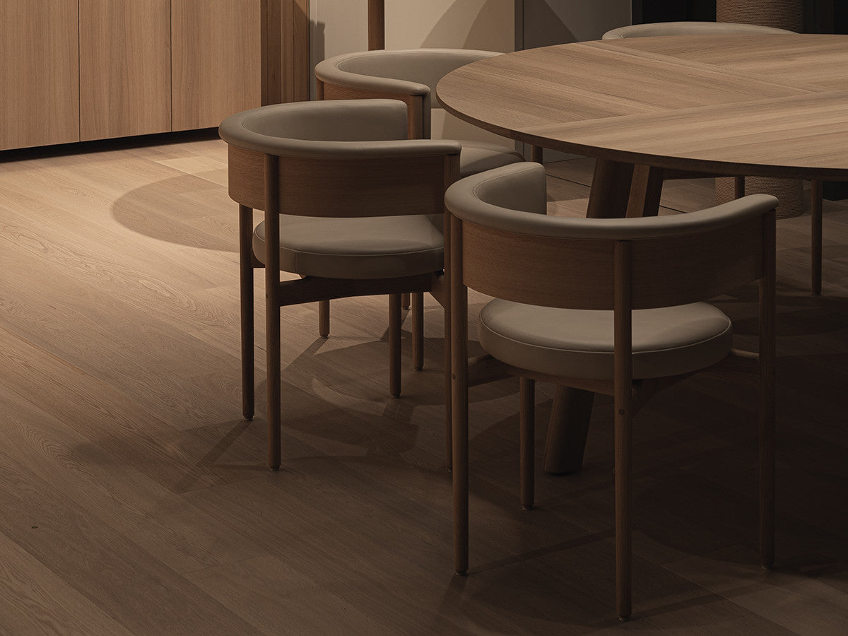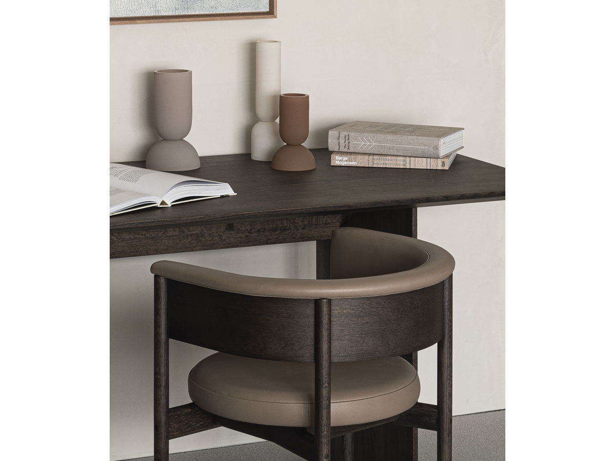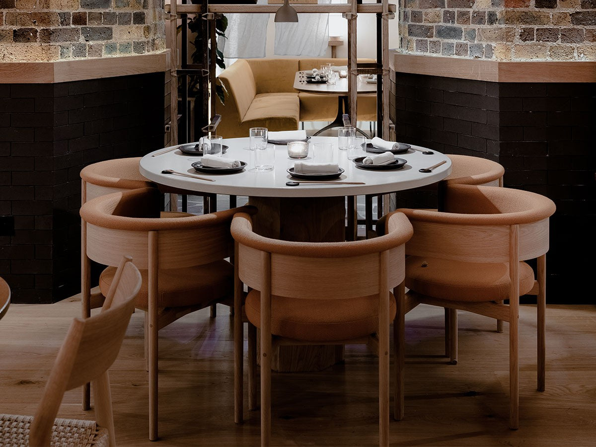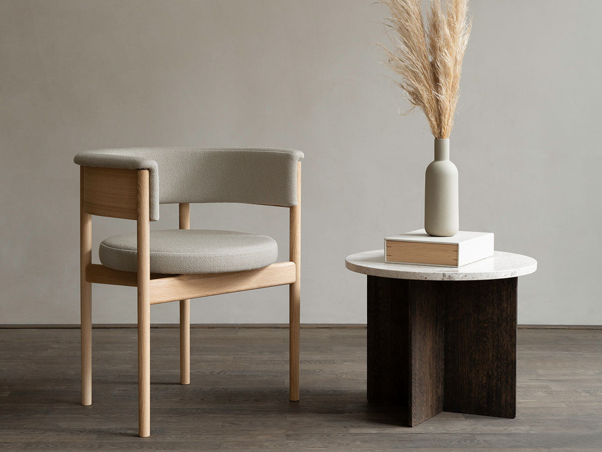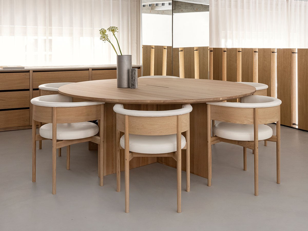 クリーンなフォルムと新鮮さのあるデザインランゲージ、またソフトで快適性のある座面は、ブルーボトルコーヒーみなとみらいのインテリアエレメンツにインスパイアされてデザインされました。低めに設定された背面とコンパクトにまとまった脚部により、ダイニングチェアでもスツールでもない、それぞれの良さを兼ね揃えた機能性豊かなチェアに仕上げられています。MINATOMIRAI CAFEみなとみらいコレクションは、横浜のみなとみらいにある「ブルーボトルコーヒー みなとみらいカフェ」に備え付けられることを想定し、つくられたコレクションです。公園に隣接し、ガラス張りの開放的な空間と曲線や木の素材使いによる柔らかさが心地よいブルーボトルコーヒー みなとみらいカフェ。カフェ全体のデザインは芦沢啓治建築設計事務所が担当し、カフェを構成する要素としてテイラーメイドの木製インテリアと家具が制作されました。テーブルやチェアなどの家具は、ノーム・アーキテクツと協働でデザインされたもので、その一部がカリモクケースのセカンドコレクションを構成しています。