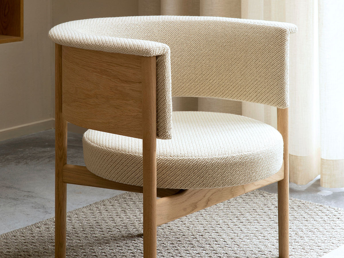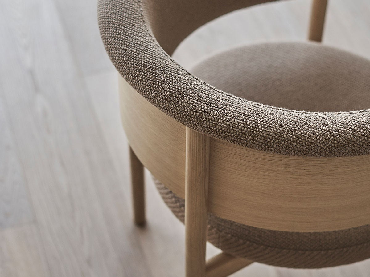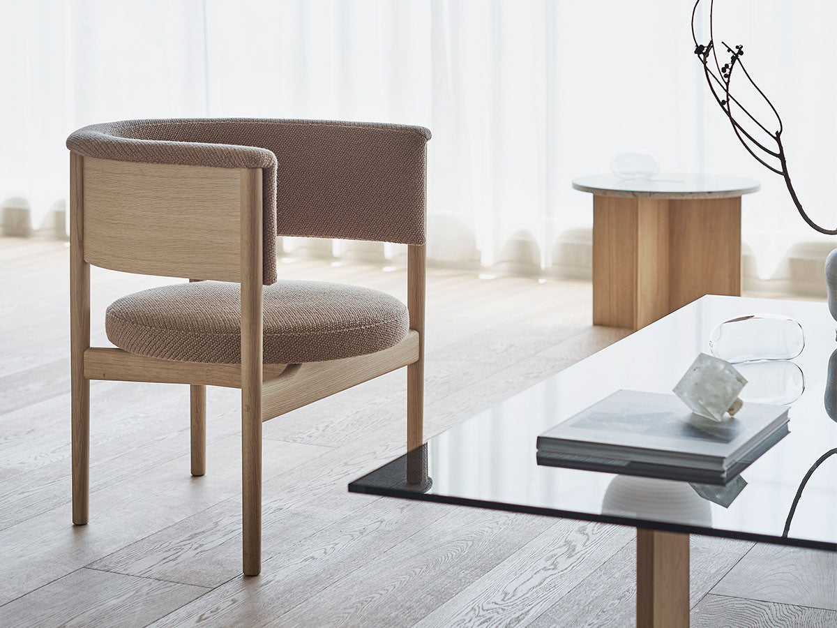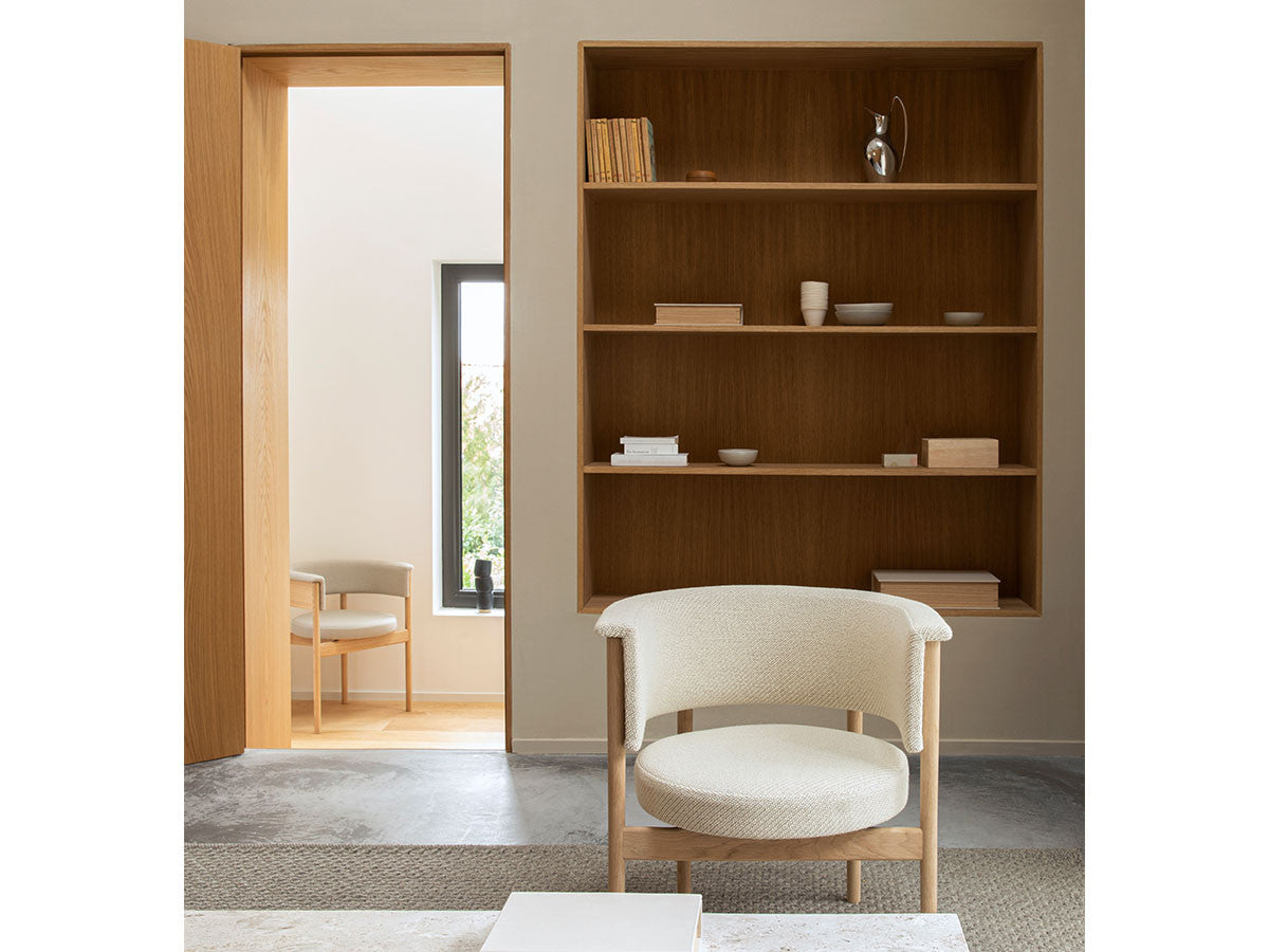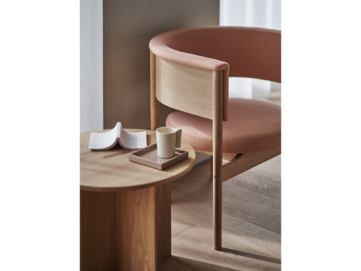 狭小空間にフィットする小さめの作りでありながら、快適性にも優れたデザインのローチェア。丸みを帯びた背もたれは、暖かく、おおらかな印象を加え、椅子に座ってもユーザーの動きを制限しません。背もたれとアームレストのさり気ない張り出し部により、椅子自体も動かしやすくなっています。
