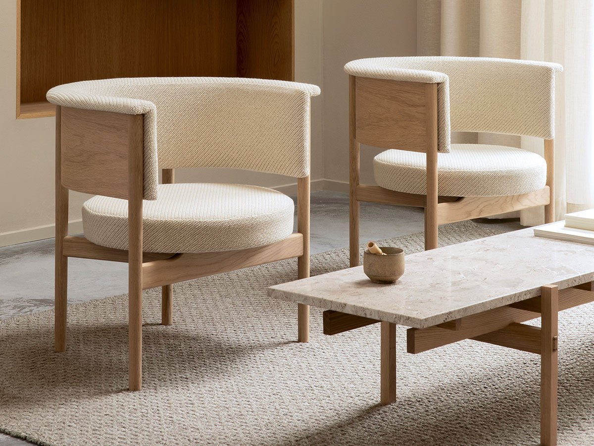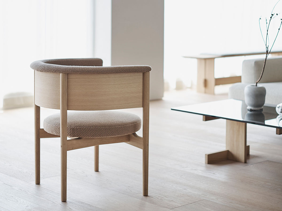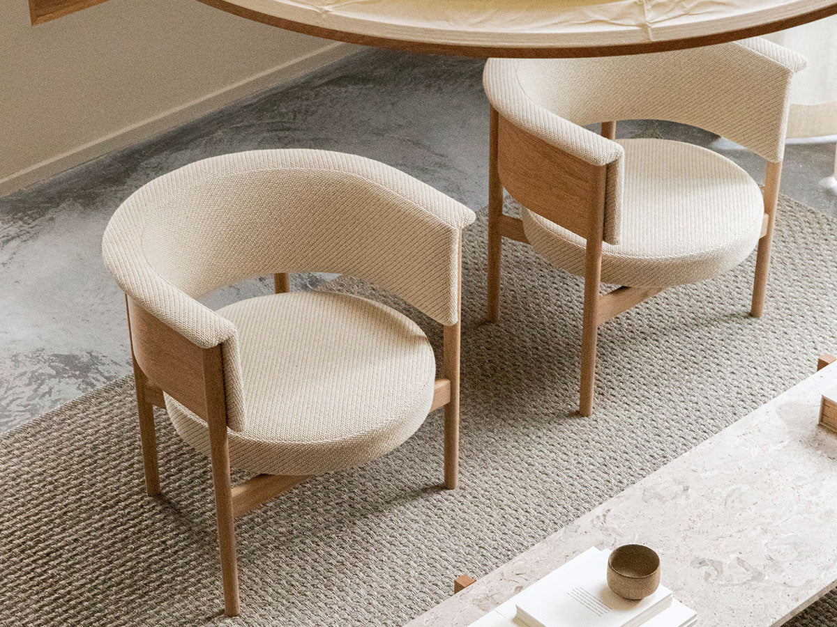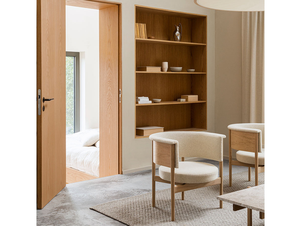 狭小空間にフィットする小さめの作りでありながら、快適性にも優れたデザインのローチェア。丸みを帯びた背もたれは、暖かく、おおらかな印象を加え、椅子に座ってもユーザーの動きを制限しません。背もたれとアームレストのさり気ない張り出し部により、椅子自体も動かしやすくなっています。