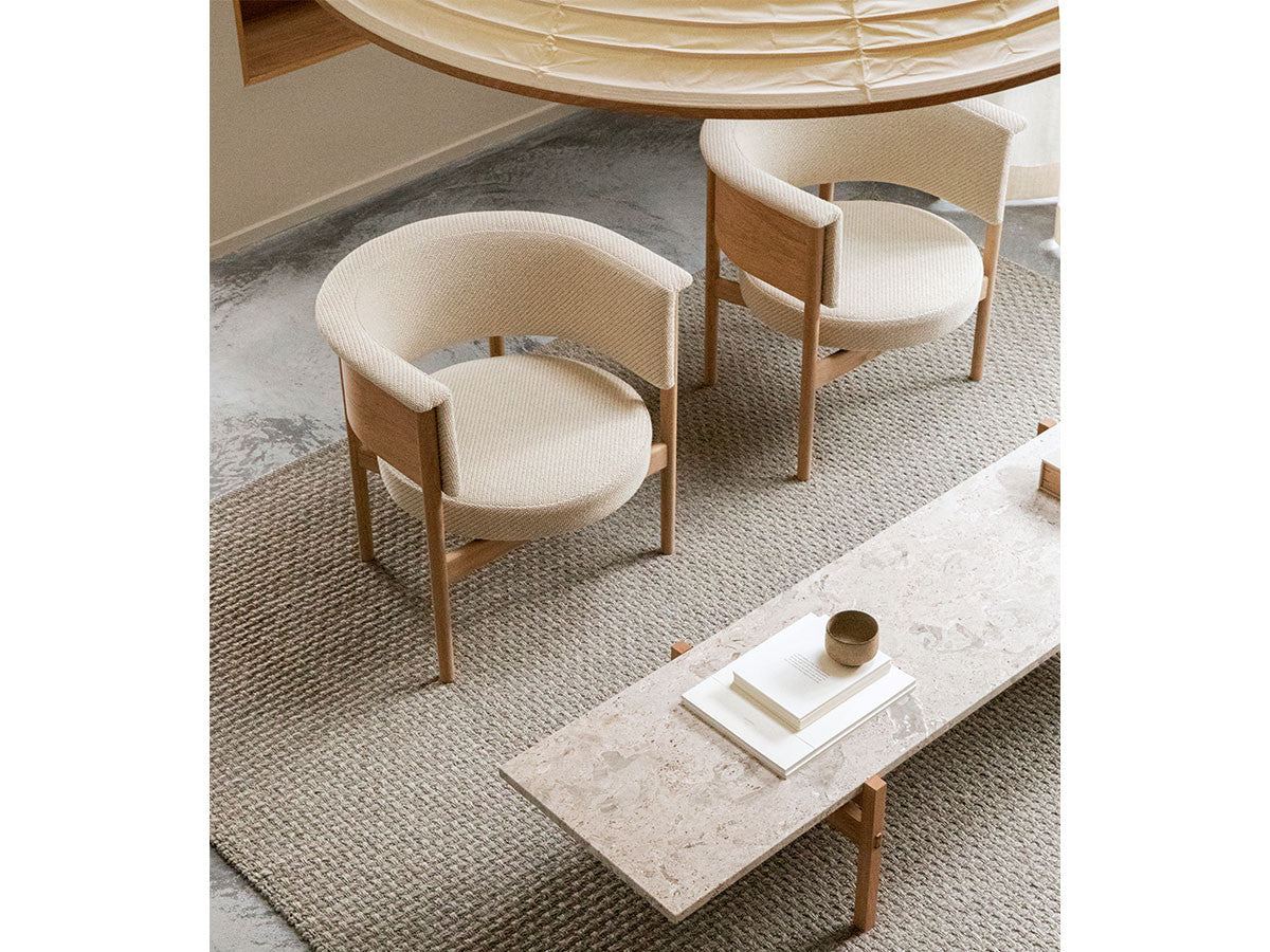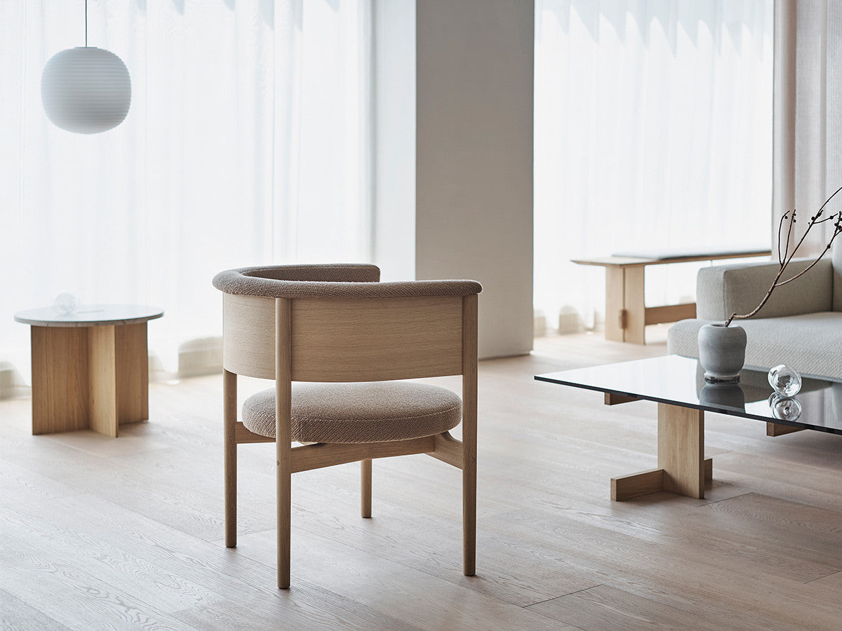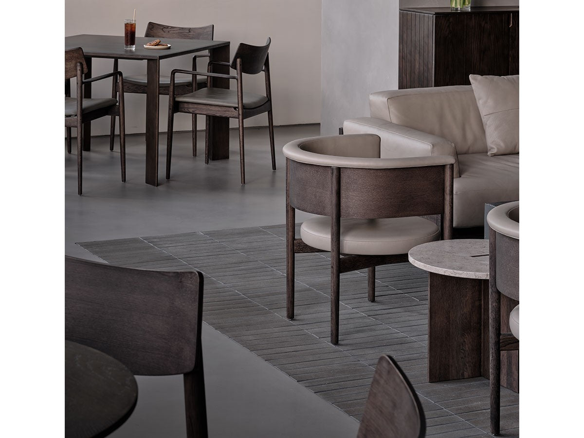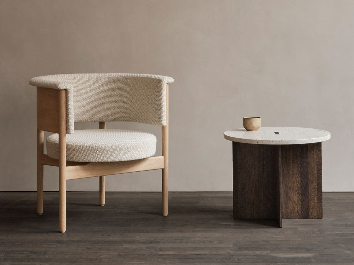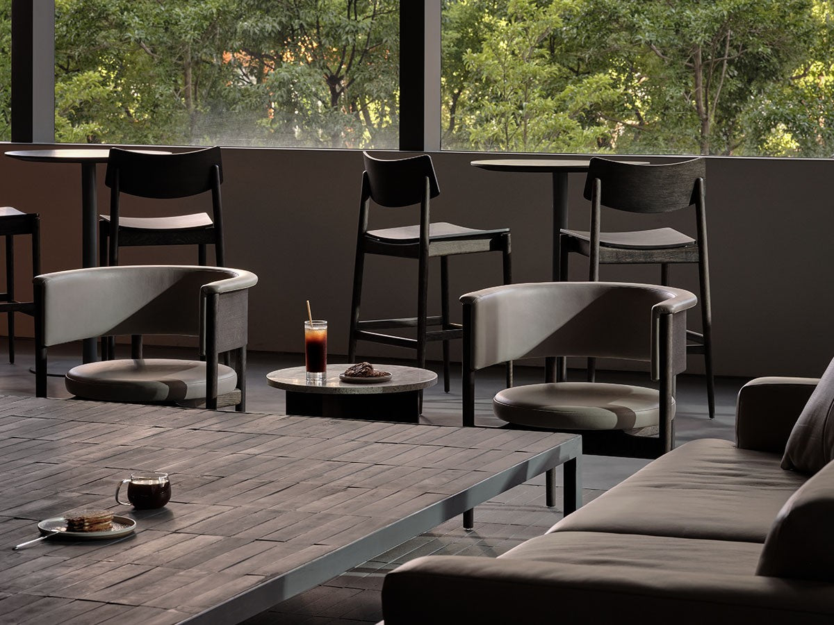 狭小空間にフィットする小さめの作りでありながら、快適性にも優れたデザインのローチェア。丸みを帯びた背もたれは、暖かく、おおらかな印象を加え、椅子に座ってもユーザーの動きを制限しません。背もたれとアームレストのさり気ない張り出し部により、椅子自体も動かしやすくなっています。