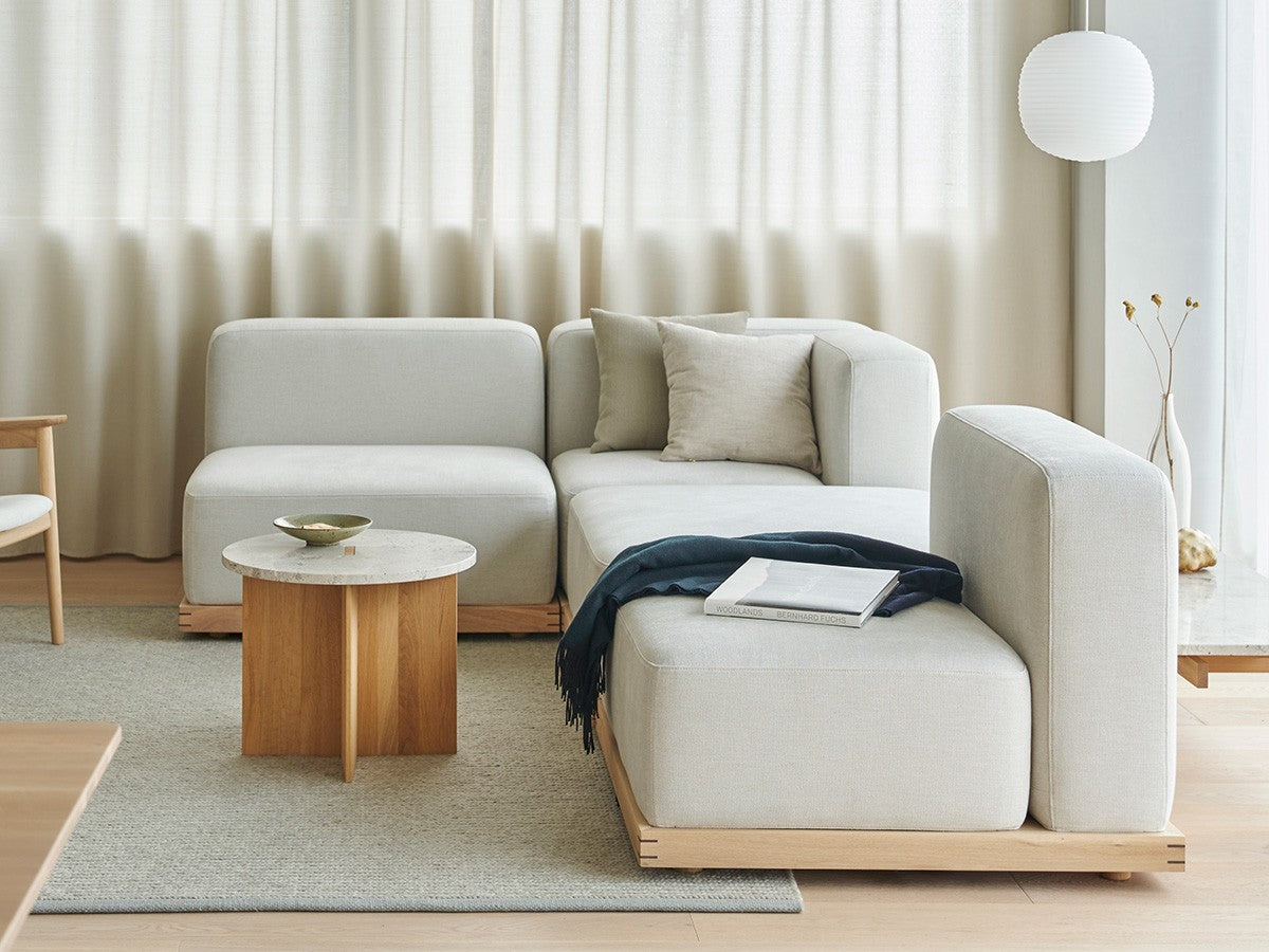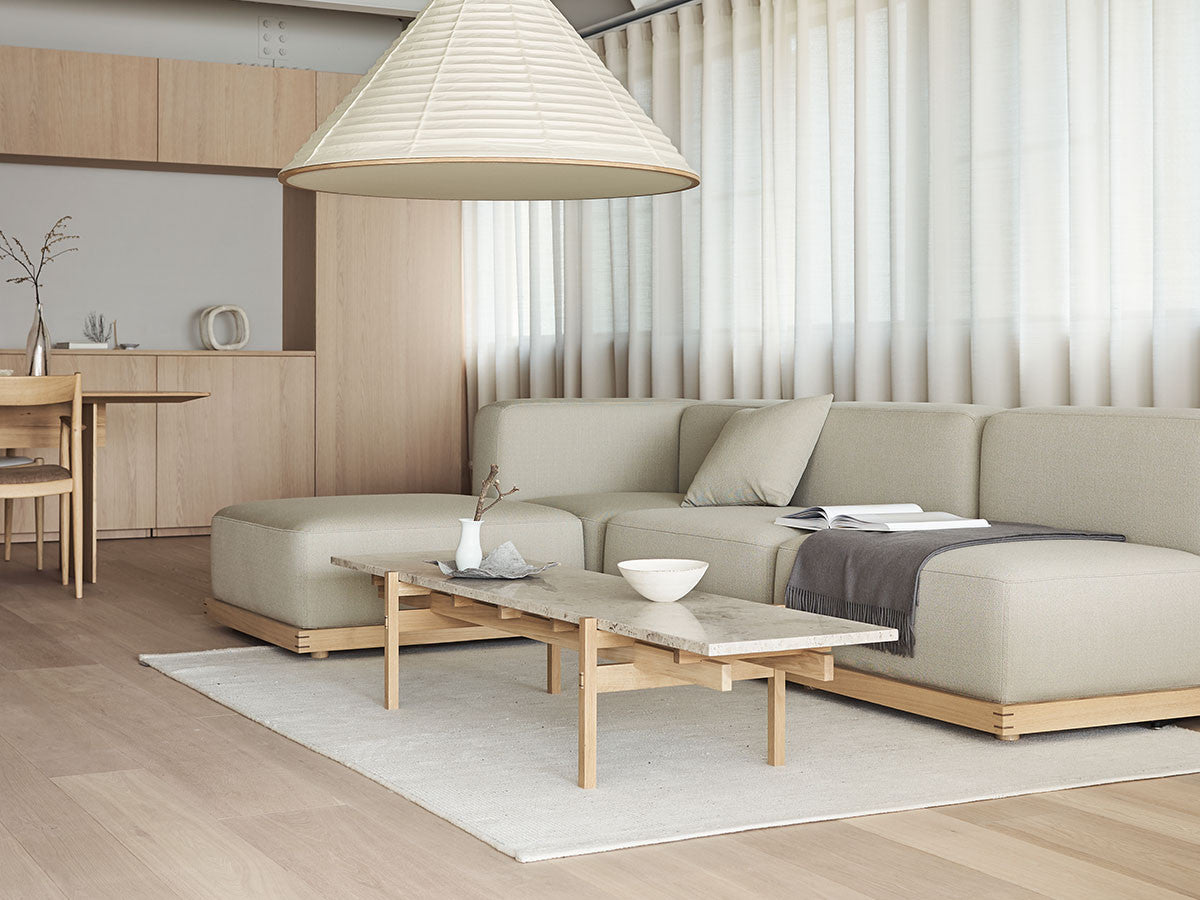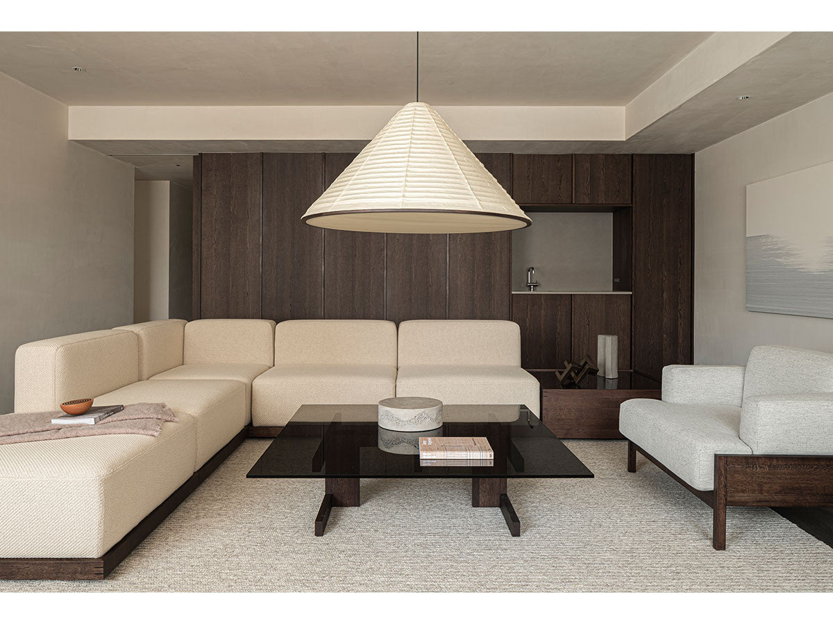 閑静な住宅街にひっそりと佇む、1988年に建てられた高級マンションの一室のリノベーションプロジェクトのためにつくられたコレクション。丈夫な木製のベースと柔らかな布地でできたモジュラーソファです。優れた匠の技が細部にまで施された木のフレームは、デザインを大切にしながらも、日本のカリモクならではの家具づくりの伝統を確かに示しています。同シリーズの「N-S01 オットマン」「N-S01 アーム付」と組み合わせることで、スペースに適した形状でお使いになれます。