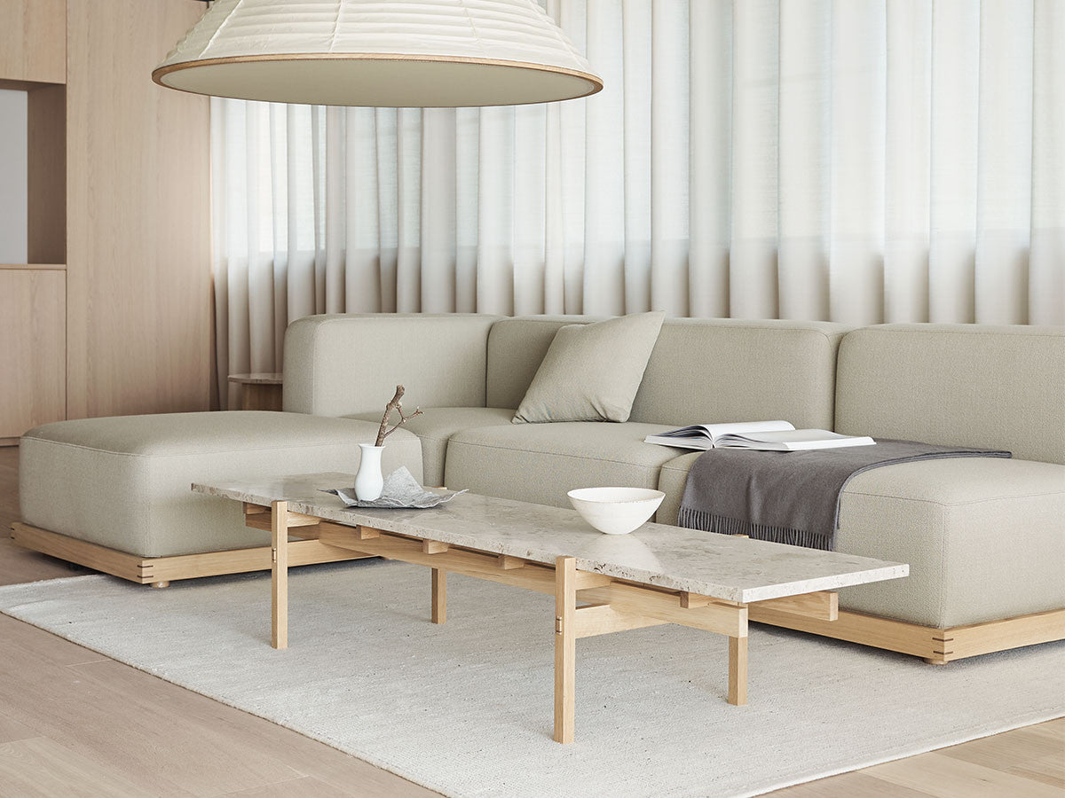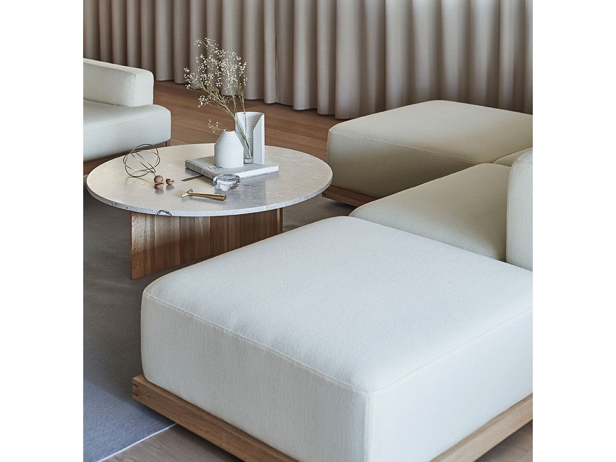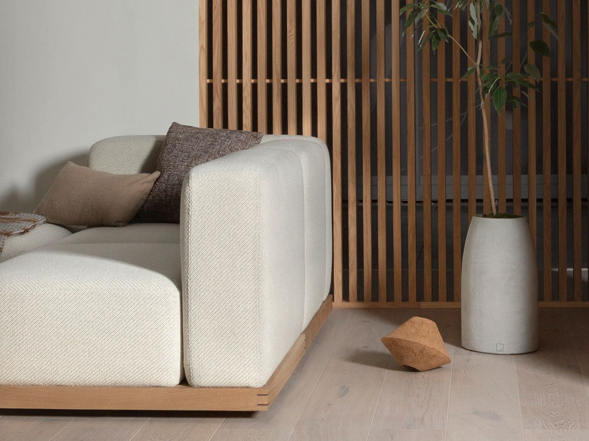 閑静な住宅街にひっそりと佇む、1988年に建てられた高級マンションの一室のリノベーションプロジェクトのためにつくられたコレクション。丈夫な木製のベースと柔らかな布地でできたモジュラーソファです。優れた匠の技が細部にまで施された木のフレームは、デザインを大切にしながらも、日本のカリモクならではの家具づくりの伝統を確かに示しています。同シリーズの「N-S01 オットマン」「N-S01 アーム付」と組み合わせることで、スペースに適した形状でお使いになれます。