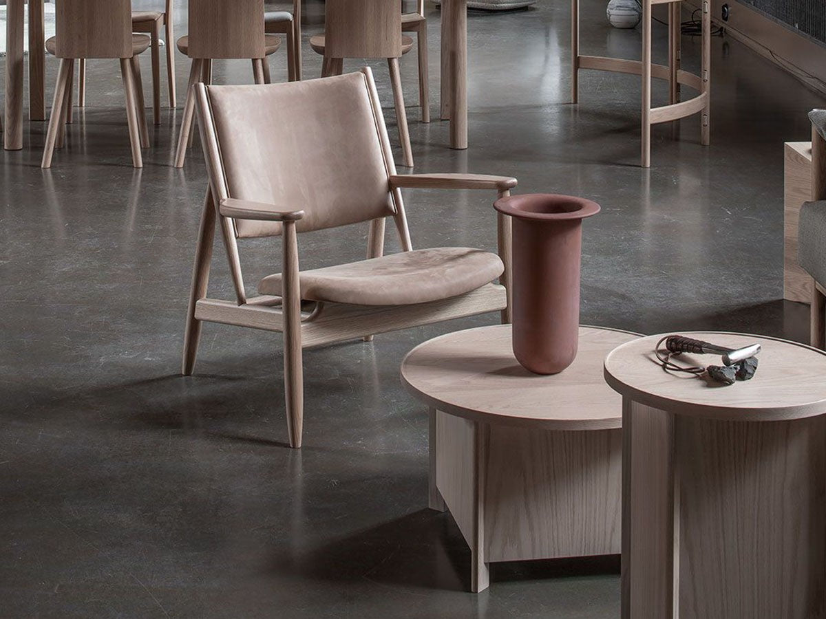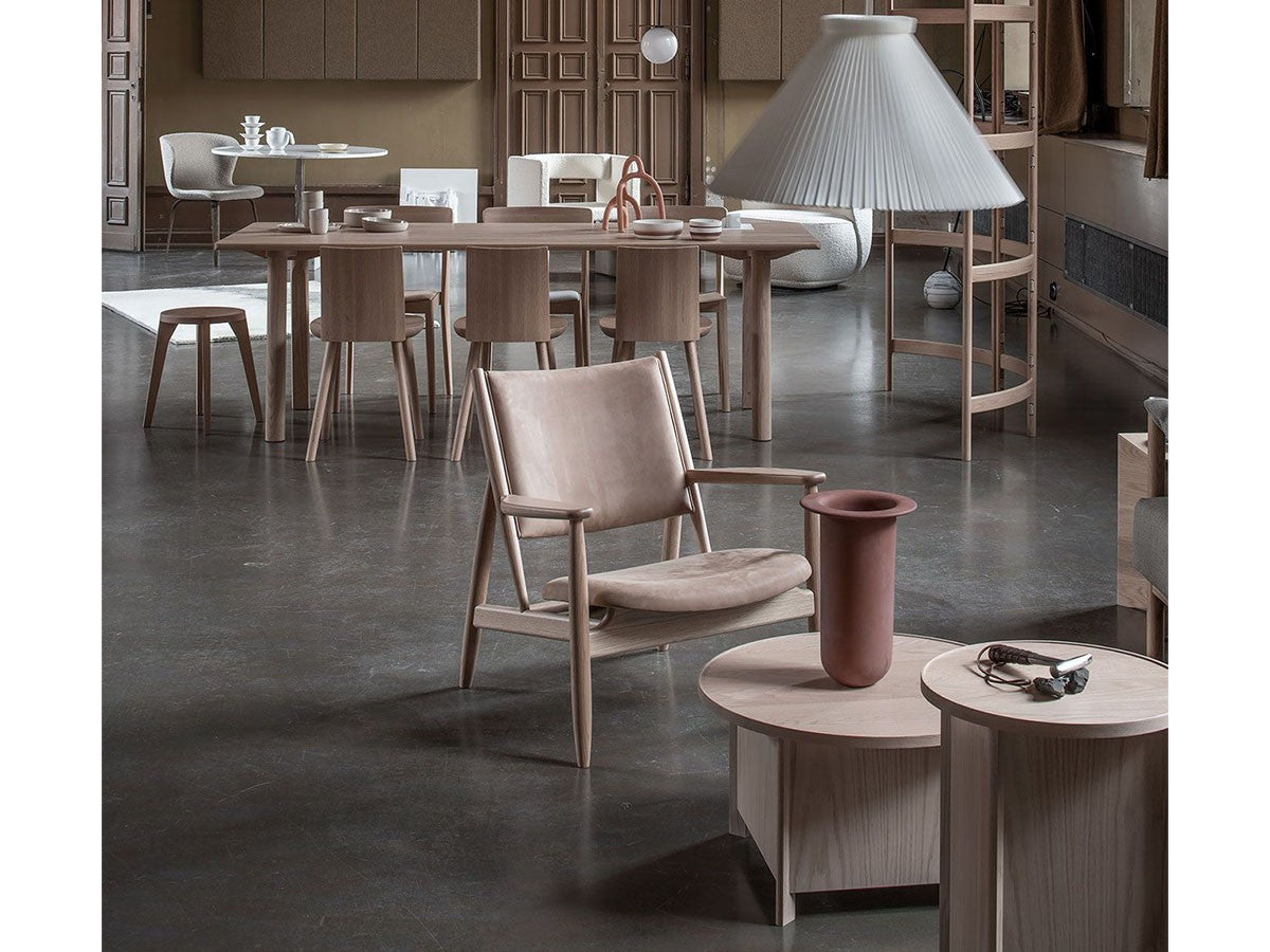 伝統的なスカンジナビア家具職人の椅子にヒントを得てデザインされたこの椅子は、軽く、透明感があり、椅子の構造をはっきりと見せるデザインになっています。葉巻型の脚にすることで椅子全体に強さと美しさを表現。小さな足元、広い肘掛と高めの背もたれで構成されたこの椅子は、リラックスしたおしゃべりにも白熱した議論の場にも適したものとなっています。「Summit」という名前は、打ち合わせや会議の場で、椅子そのものがお客様をおもてなしするホストの役割を担うことを期待してつけられたものです。