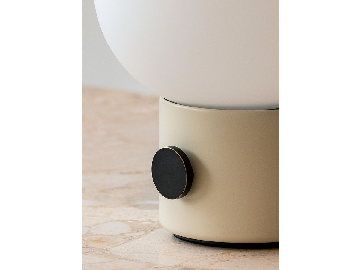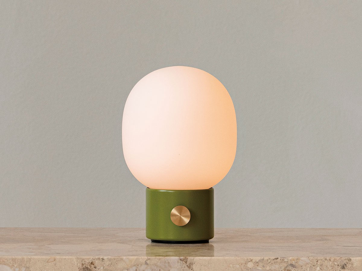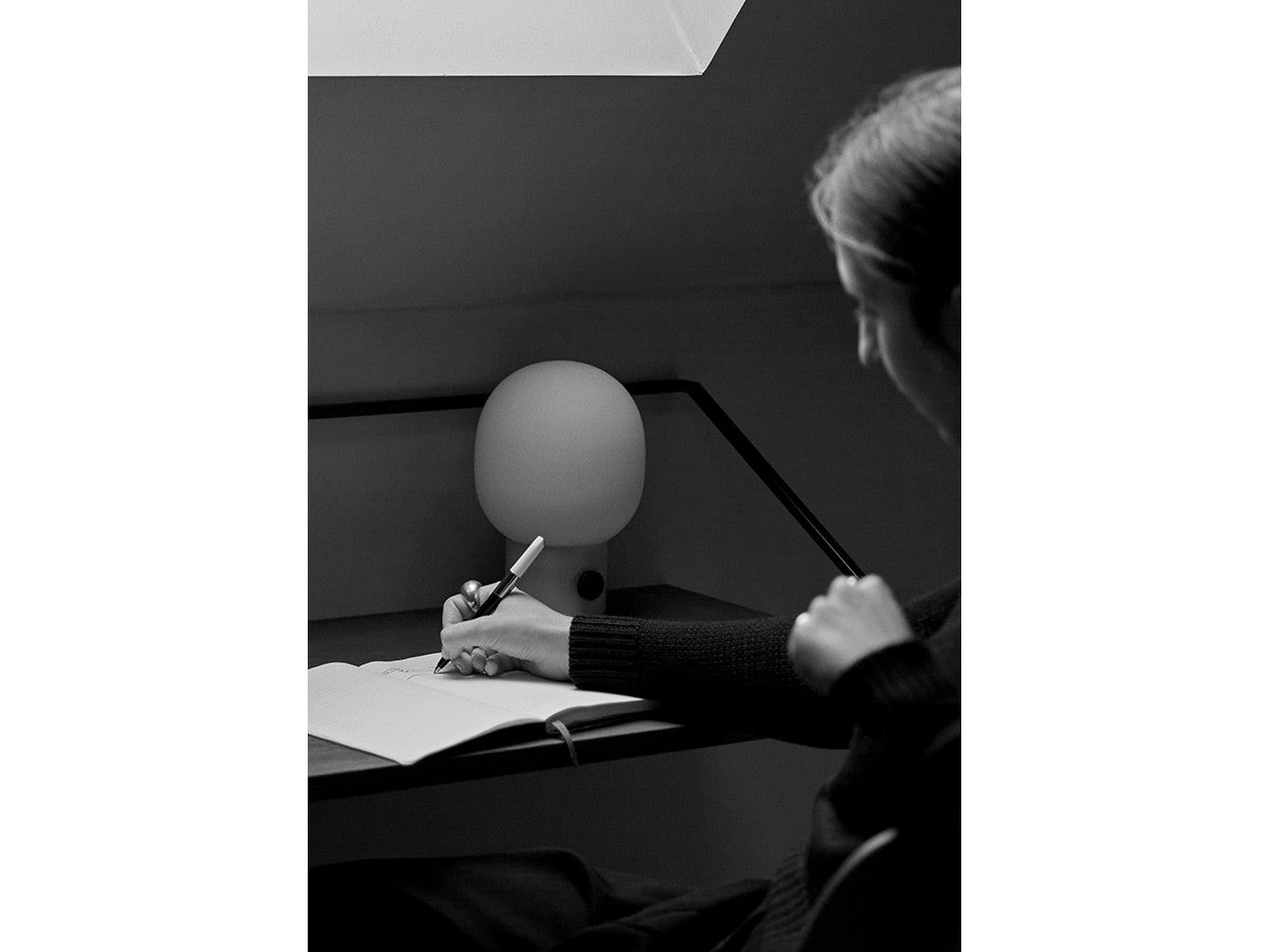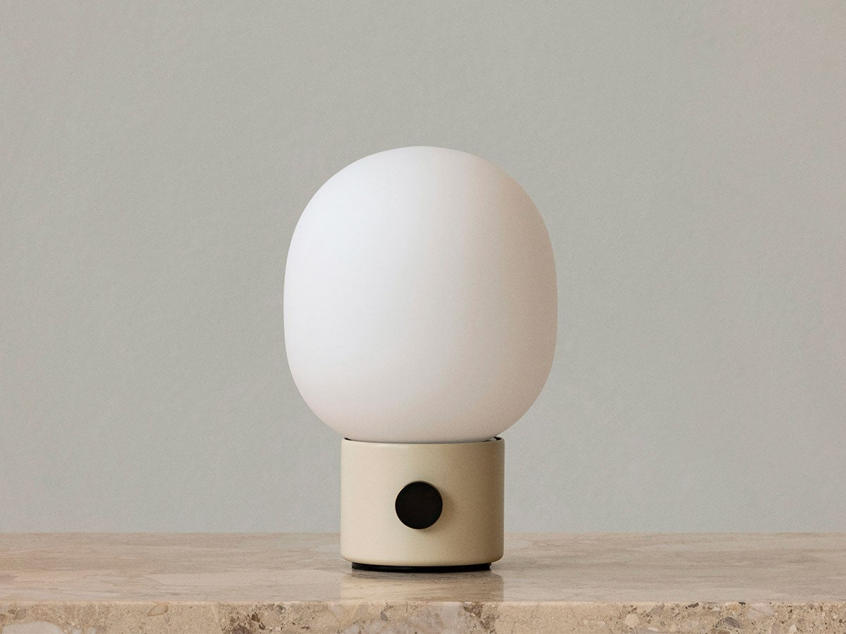 繊細で丸みを帯びた吹きガラスのシェードと頑丈なスチール製ベースのコントラストが、バランスの取れた魅力的なシルエットを生み出す彫刻のようなテーブルライト。スウェーデンの建築家兼デザイナーのJonas Wagell(ヨナス・ワーゲル)が、伝統的なオイルランプに着想を得てデザインしました。本商品は「JWDA テーブルランプ」の充電式ポータブルライトタイプです。持ち運び可能で、お好きな場所でお使いいただけます。ベース中央に配置された真鍮製のダイヤルで調光が可能です。充電用ジャックはマグネット式で、本体底の目立たない部分に備えられており、外観を損なわないように配慮されています。