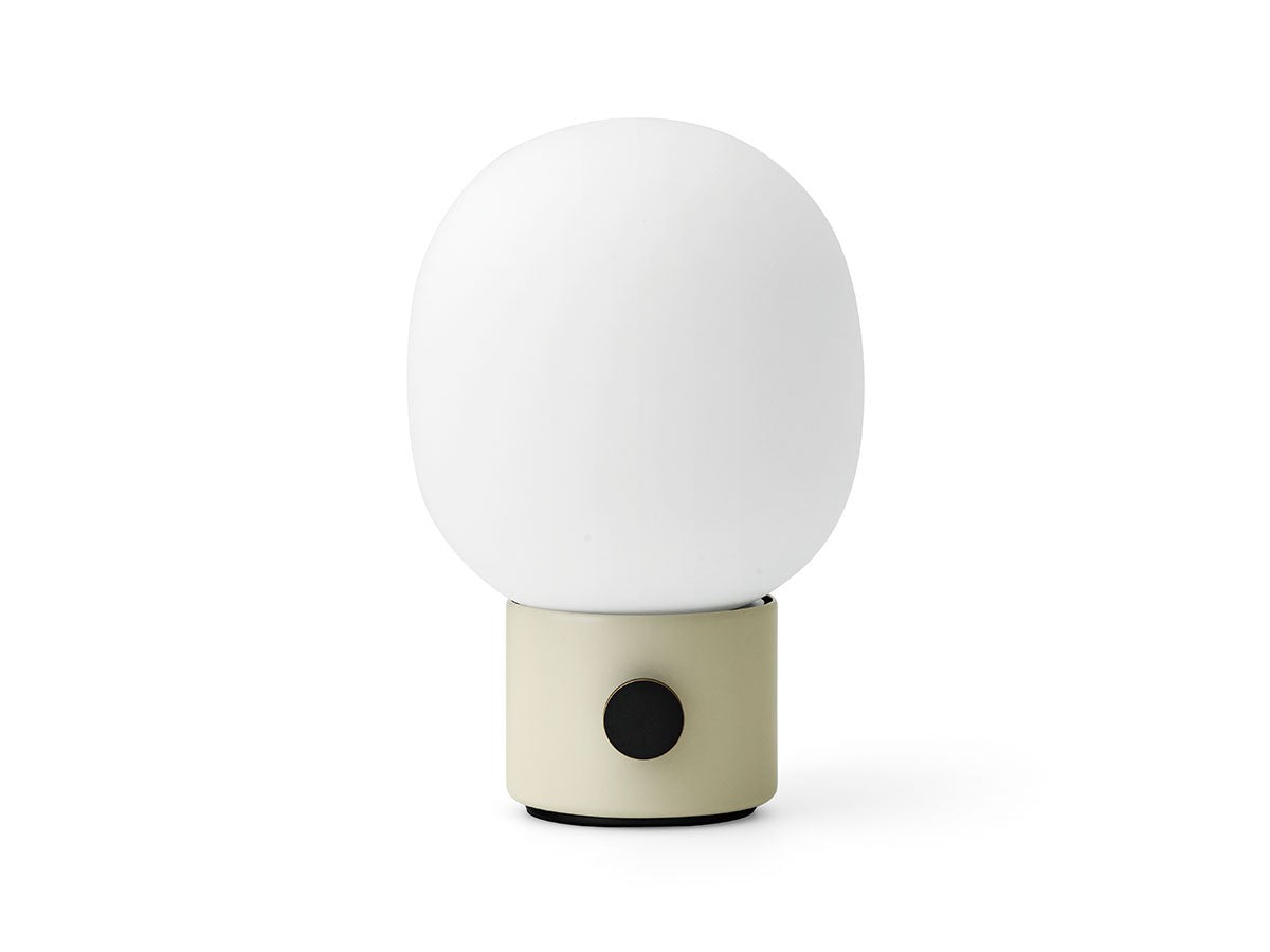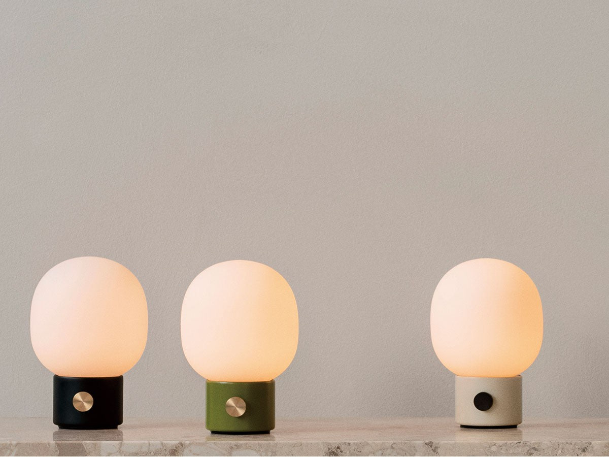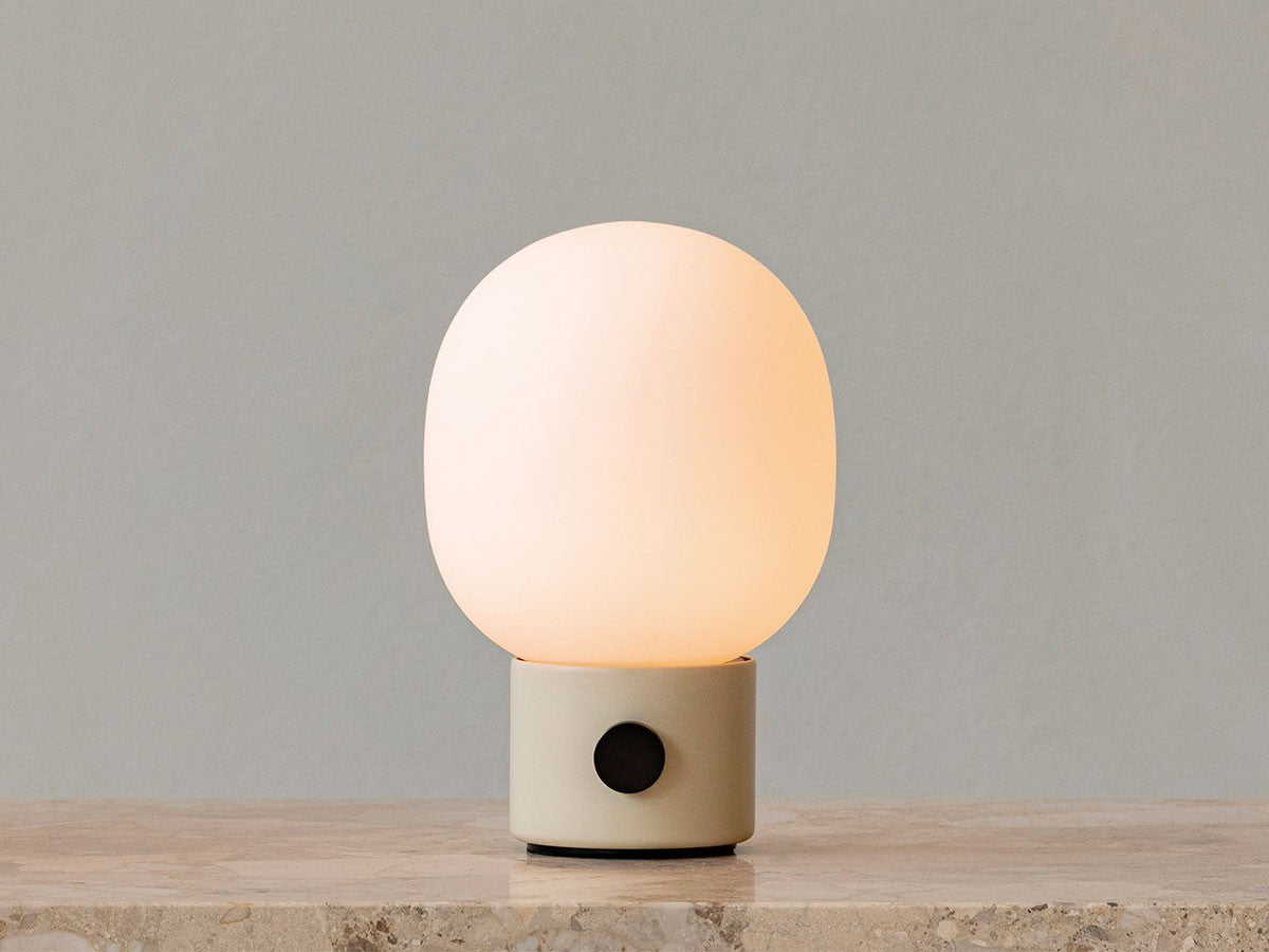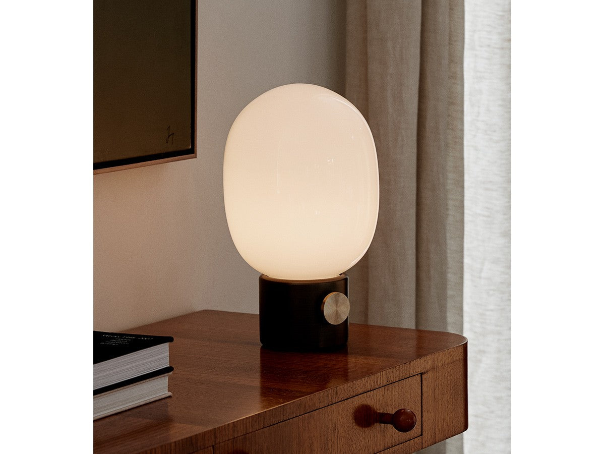 繊細で丸みを帯びた吹きガラスのシェードと頑丈なスチール製ベースのコントラストが、バランスの取れた魅力的なシルエットを生み出す彫刻のようなテーブルライト。スウェーデンの建築家兼デザイナーのJonas Wagell(ヨナス・ワーゲル)が、伝統的なオイルランプに着想を得てデザインしました。本商品は「JWDA テーブルランプ」の充電式ポータブルライトタイプです。持ち運び可能で、お好きな場所でお使いいただけます。ベース中央に配置された真鍮製のダイヤルで調光が可能です。充電用ジャックはマグネット式で、本体底の目立たない部分に備えられており、外観を損なわないように配慮されています。