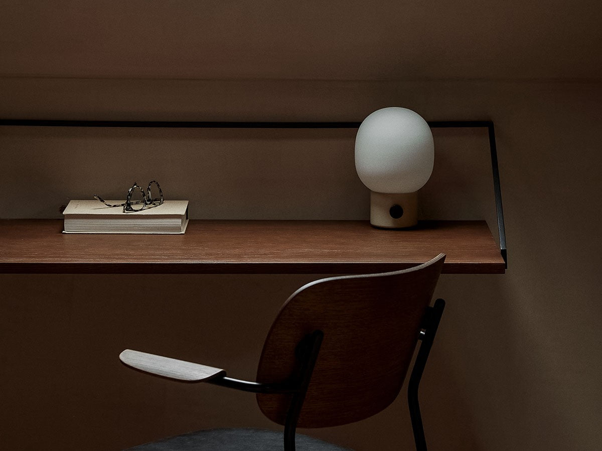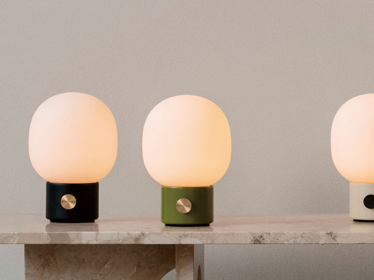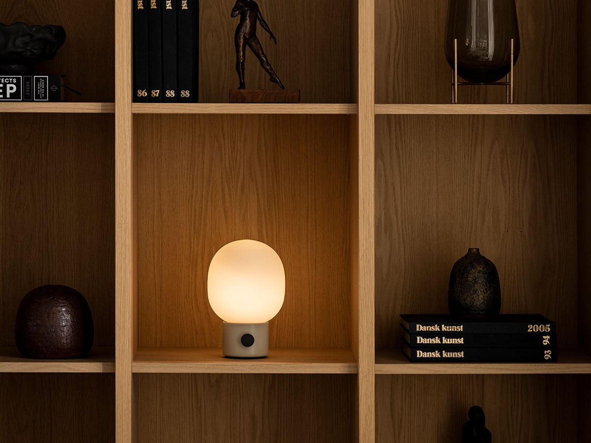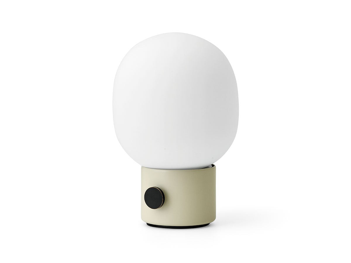 繊細で丸みを帯びた吹きガラスのシェードと頑丈なスチール製ベースのコントラストが、バランスの取れた魅力的なシルエットを生み出す彫刻のようなテーブルライト。スウェーデンの建築家兼デザイナーのJonas Wagell(ヨナス・ワーゲル)が、伝統的なオイルランプに着想を得てデザインしました。本商品は「JWDA テーブルランプ」の充電式ポータブルライトタイプです。持ち運び可能で、お好きな場所でお使いいただけます。ベース中央に配置された真鍮製のダイヤルで調光が可能です。充電用ジャックはマグネット式で、本体底の目立たない部分に備えられており、外観を損なわないように配慮されています。