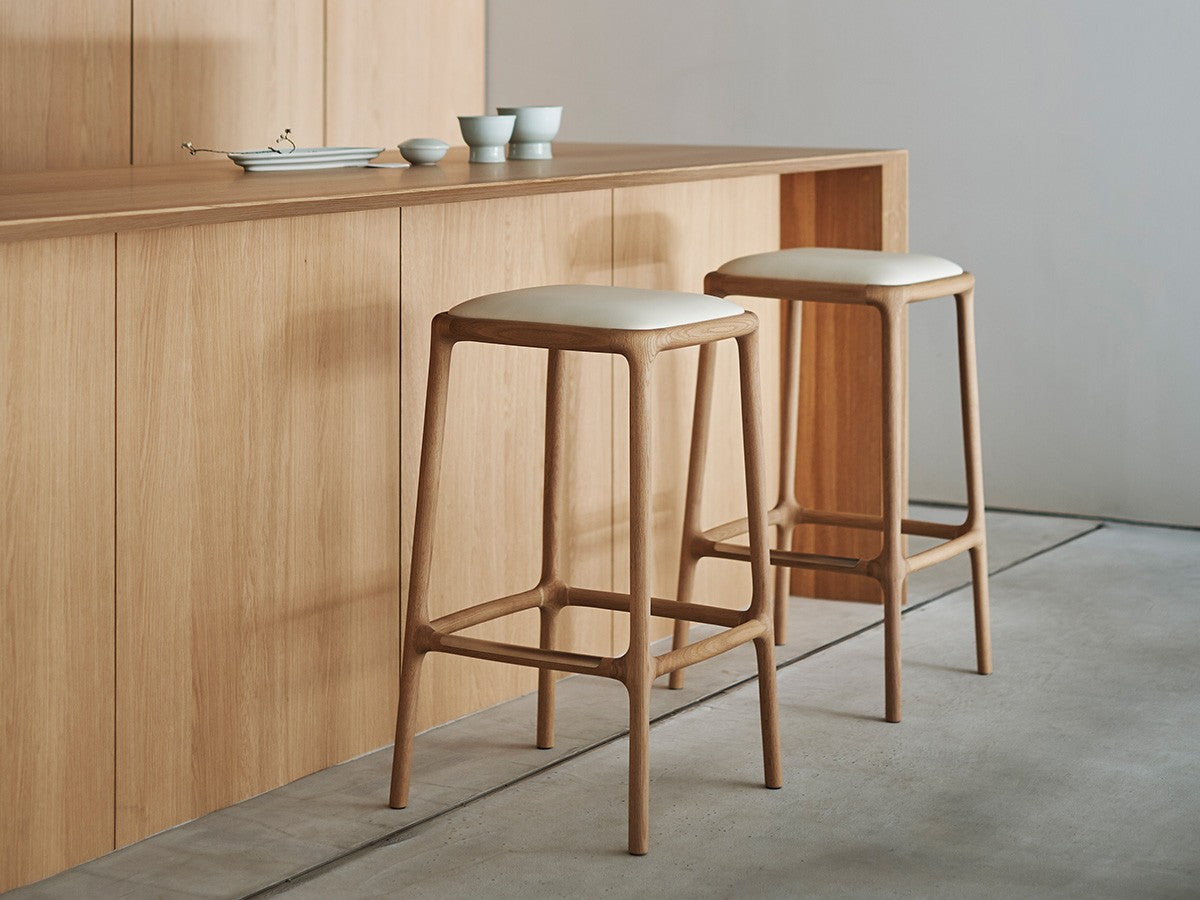 デザイナーに英国を代表する建築家、Norman Foster(ノーマン・フォスター)を迎えた「NFコレクション」。Norman Foster Foundation(ノーマン・フォスターファンデーション)のプロジェクトチームが設計した「Foster Retreat(フォスター・リトリート)」に備え付けられることを想定しデザインされました。カリモクの最新鋭の木工機械で製作され、職人の手作業により丁寧に仕上げられた、滑らかで有機的なデザインが特徴です。NF-BS01は、シンプルな構成とプロポーションのバランスがとれ、時間を超えた魅力を感じるカウンタースツール。NFコレクションの特徴でもある柔らかさを感じさせる切り替えが、木材の一体化したジョイント部にあらわれています。フォスター・リトリートは、米国マサチューセッツ州ケープコッドの南にあるマーサズ・ヴィンヤード島の草原地帯にあるフォスターの私邸です。友人をはじめ、ライターや研究者、建築家、エンジニア、そして都市や環境にまつわる問題に感心を持つ人々を招き、滞在を共に楽しむために建てられました。フォスター・リトリートの家具は、空間を統合し、調和させると同時に、住空間に柔軟性を与える重要な役割を担っています。木材の使用は、サステナビリティの観点からだけでなく、この島を特徴づける伝統的な建築物、景観への配慮を考慮すると、当然の選択となりました。