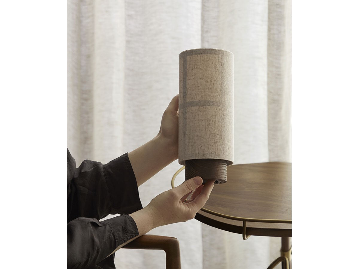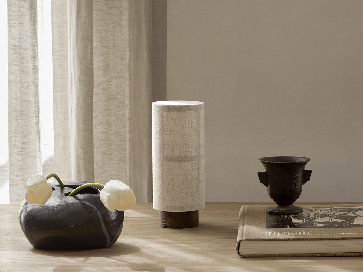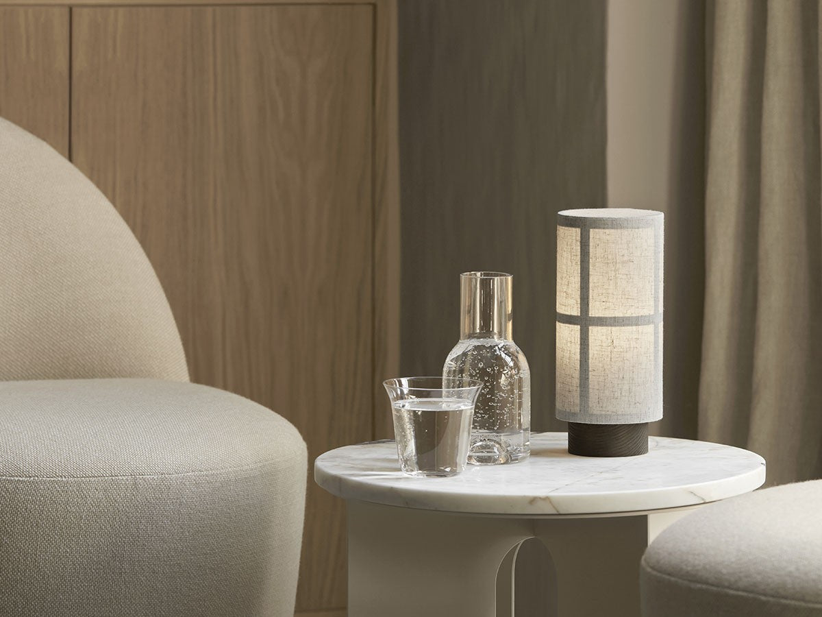 日本でも幅広く活躍するNorm Architects(ノームアーキテクツ)が、menu(メニュー)のためにデザインした「Hashira」コレクションは、日本の提灯から着想を得た照明。こちらのポータブルライトは、リネンから放たれるほのかな灯と、光によって浮かび上がるフレームのシルエットが美しく印象的です。小ぶりなサイズでありながらも存在感を放ち、どこにでも自由に移動できる利便性を備えています。充電用ジャックはマグネット式。本体底の目立たない箇所に備えることで、プロダクトの外観を損なわないように配慮されています。3段階の調光が可能で、シーンや用途に合わせて調整できます。