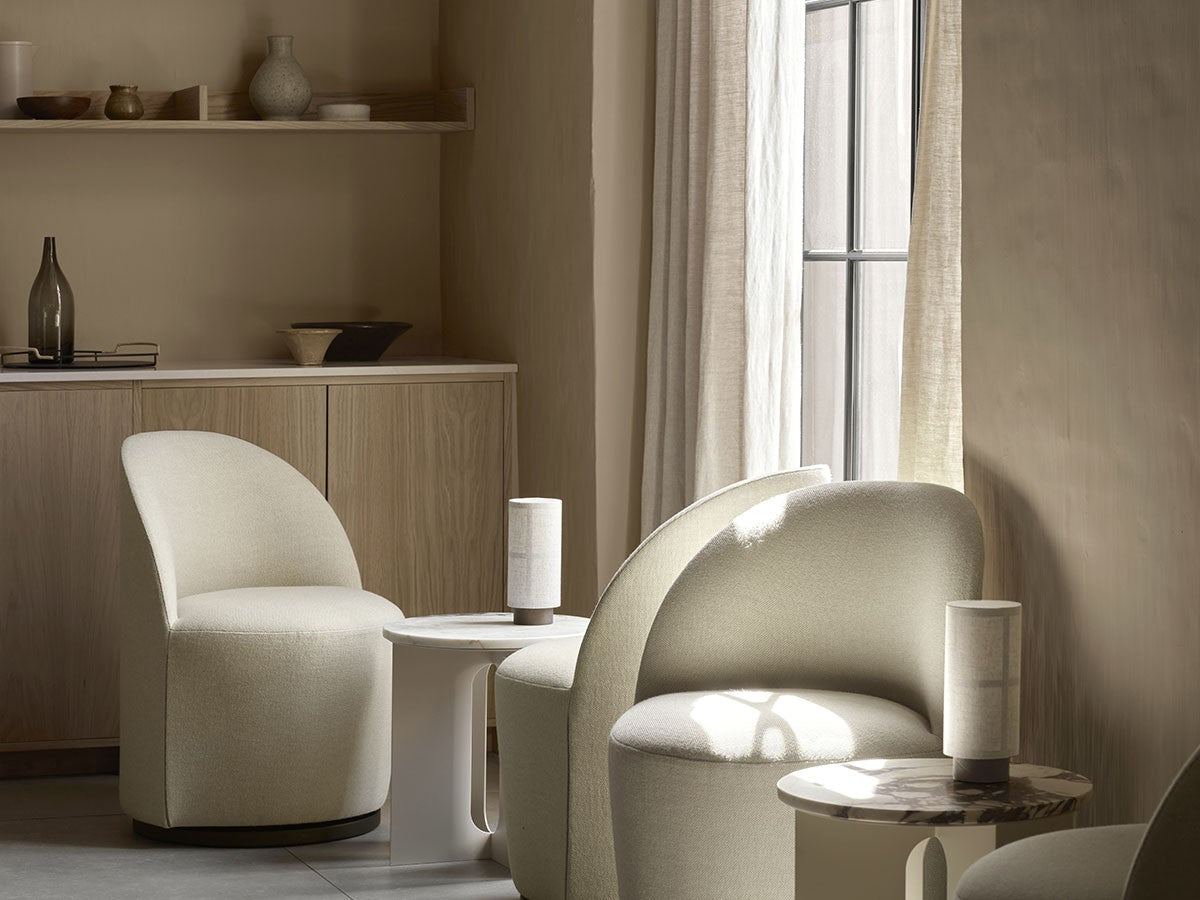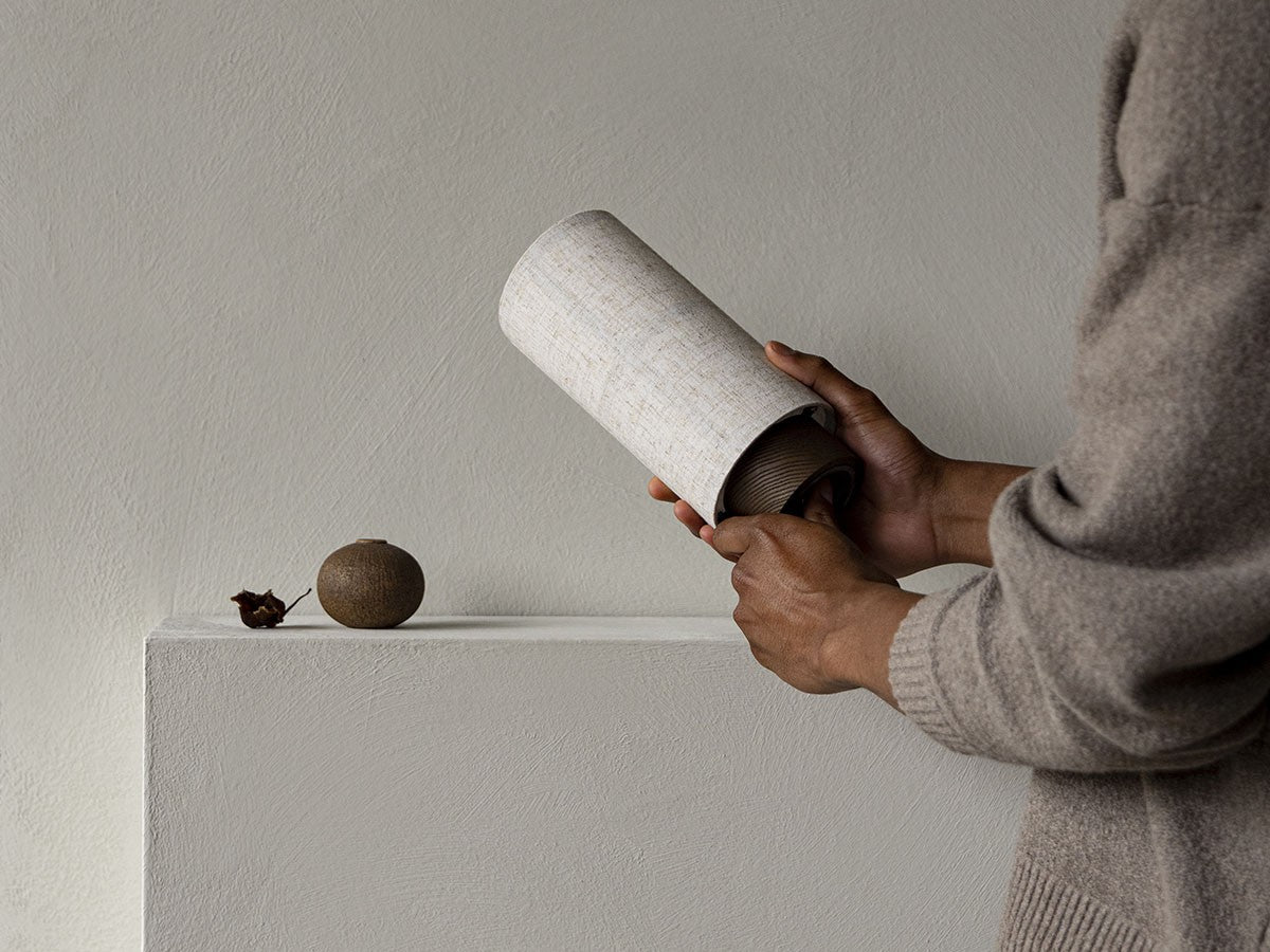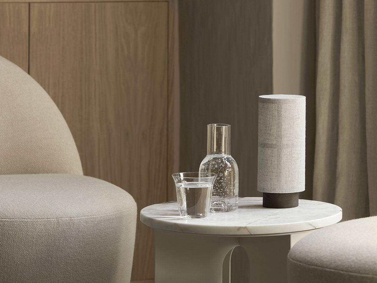 日本でも幅広く活躍するNorm Architects(ノームアーキテクツ)が、menu(メニュー)のためにデザインした「Hashira」コレクションは、日本の提灯から着想を得た照明。こちらのポータブルライトは、リネンから放たれるほのかな灯と、光によって浮かび上がるフレームのシルエットが美しく印象的です。小ぶりなサイズでありながらも存在感を放ち、どこにでも自由に移動できる利便性を備えています。充電用ジャックはマグネット式。本体底の目立たない箇所に備えることで、プロダクトの外観を損なわないように配慮されています。3段階の調光が可能で、シーンや用途に合わせて調整できます。