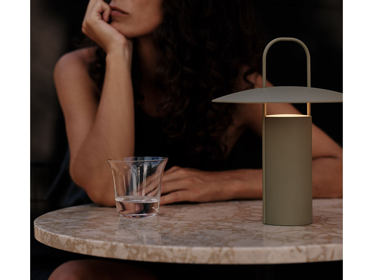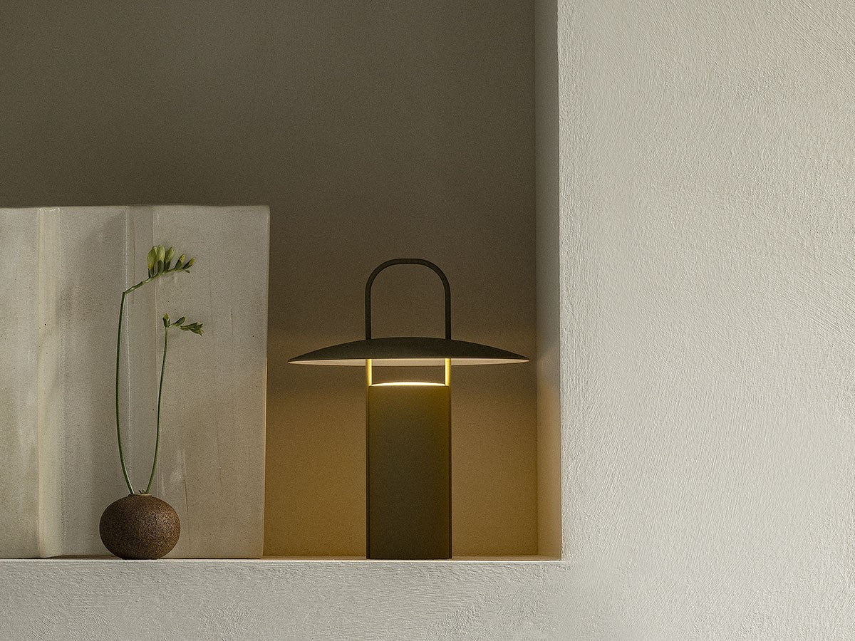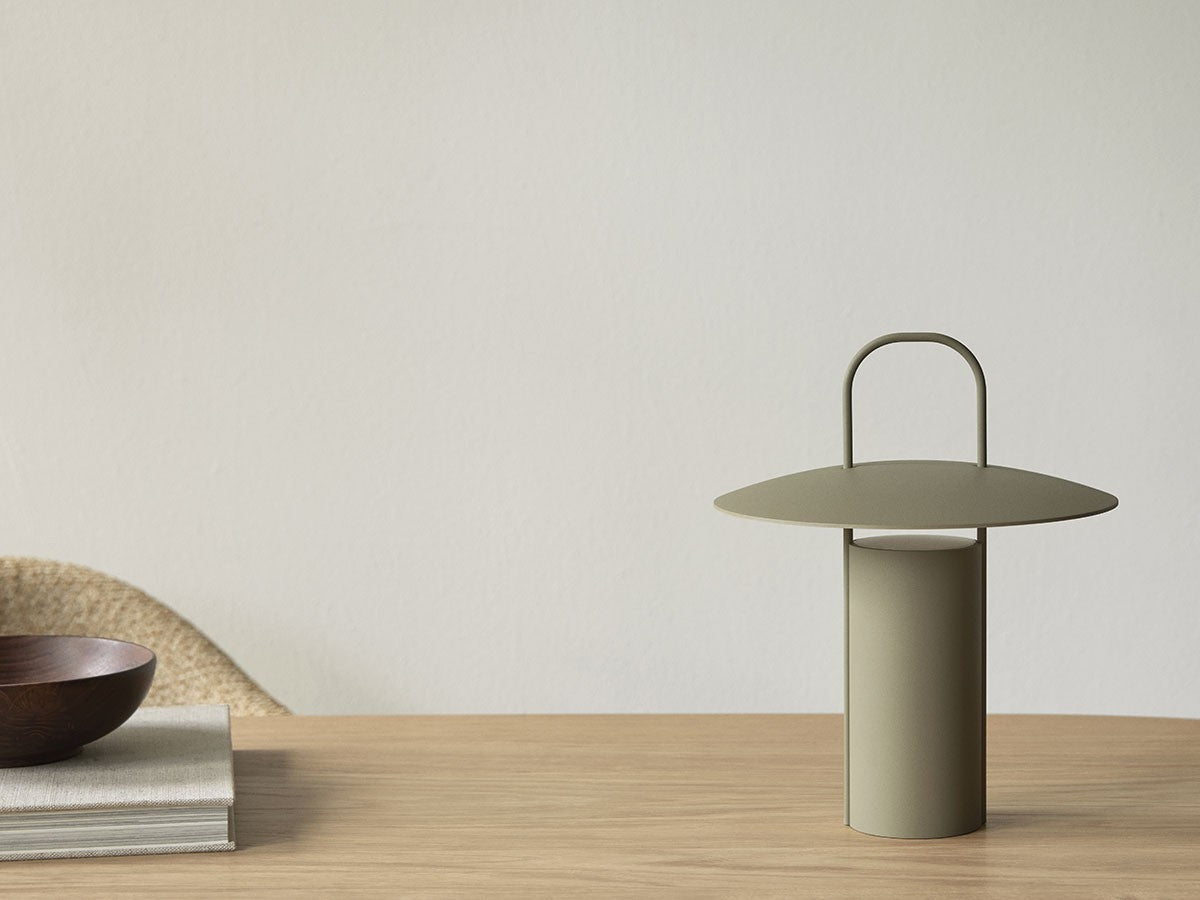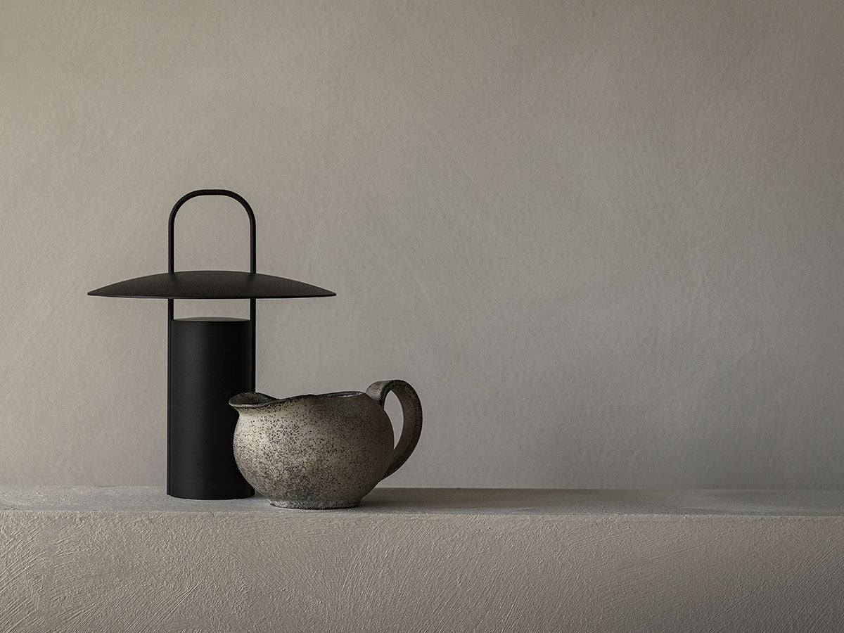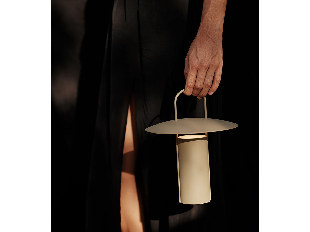 昔の鉱山で使用されていたランプにインスパイアされた独特なシルエットが魅力のポータブルライト。グラフィック、建築、デザインを学んだイギリス人デザイナー、Daniel Schofield(ダニエル・スコーフィルド)ならではのデザインです。古い工業製品をシンプルでグラフィカルなデザインに再構築し、コンテンポラリーな雰囲気に仕上げています。パウダーコーティングされたスチールのシンプルなデザインで、リビングルームの棚やダイニングテーブル、ベッドサイドのキャビネットなど、明かりが必要な場所に簡単に持ち運べる実用的なトップハンドルが付いています。円柱型の本体内に設置されたLED電球の上向きの光源が、シェードによって反射し、下方に柔らかく落ち着いた光を放ちます。3段階に調光が可能。どんなインテリアにもマッチする美しい2色展開です。