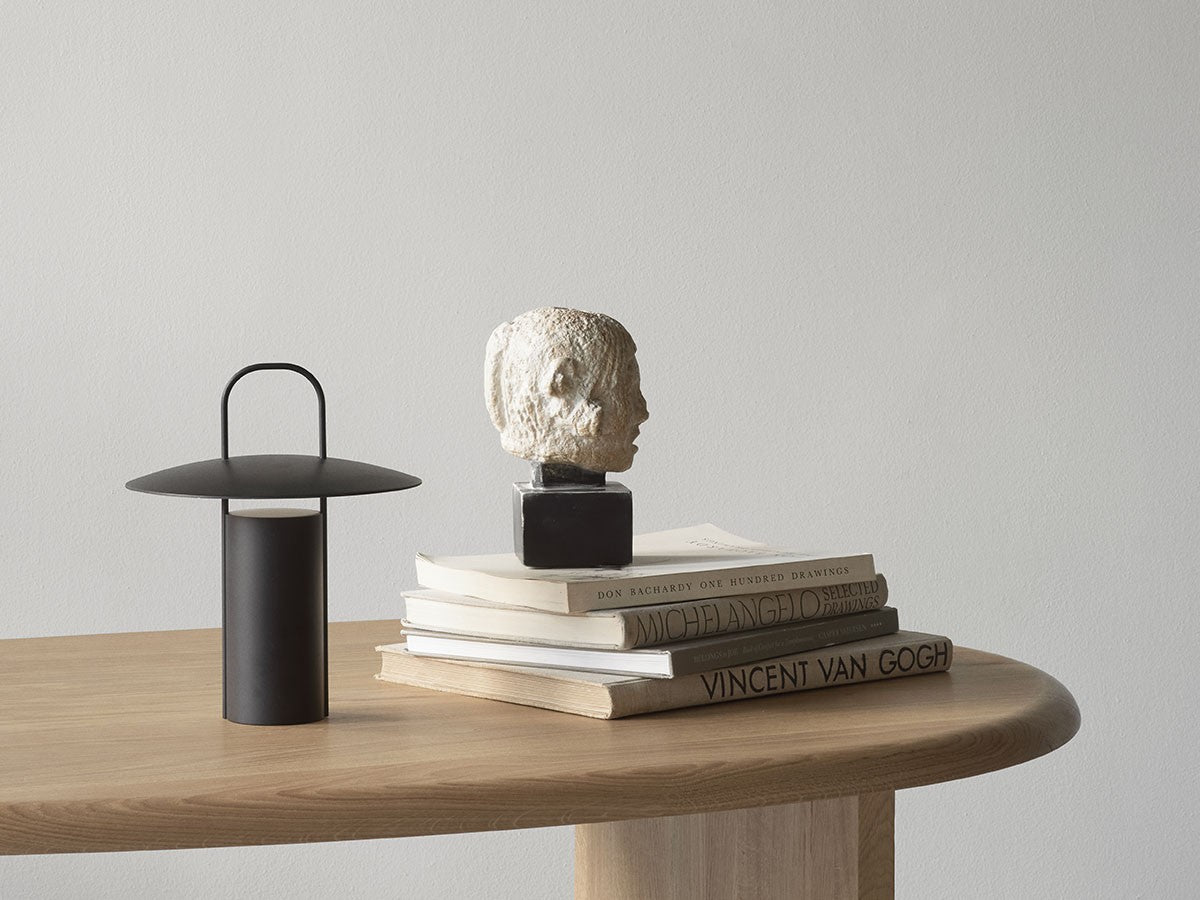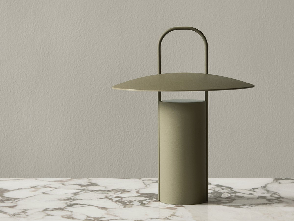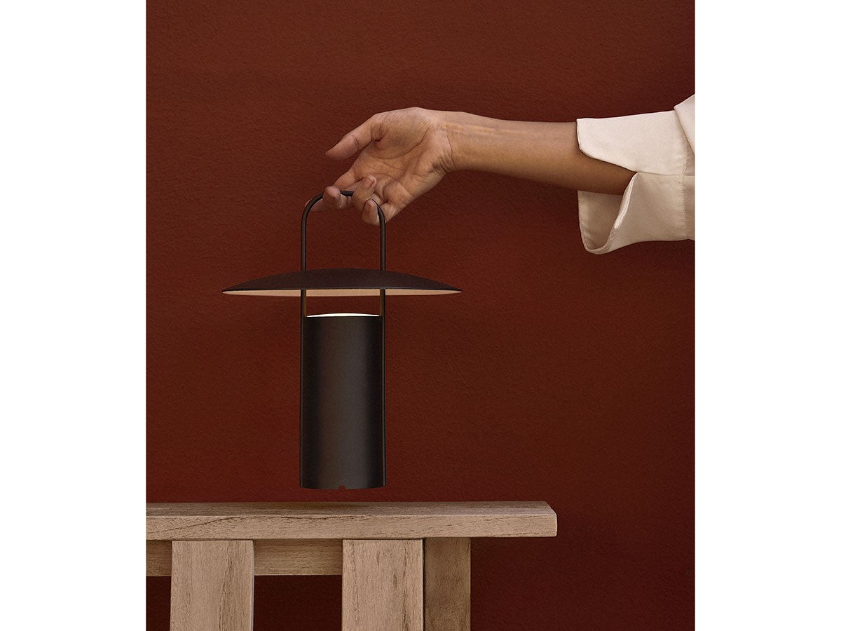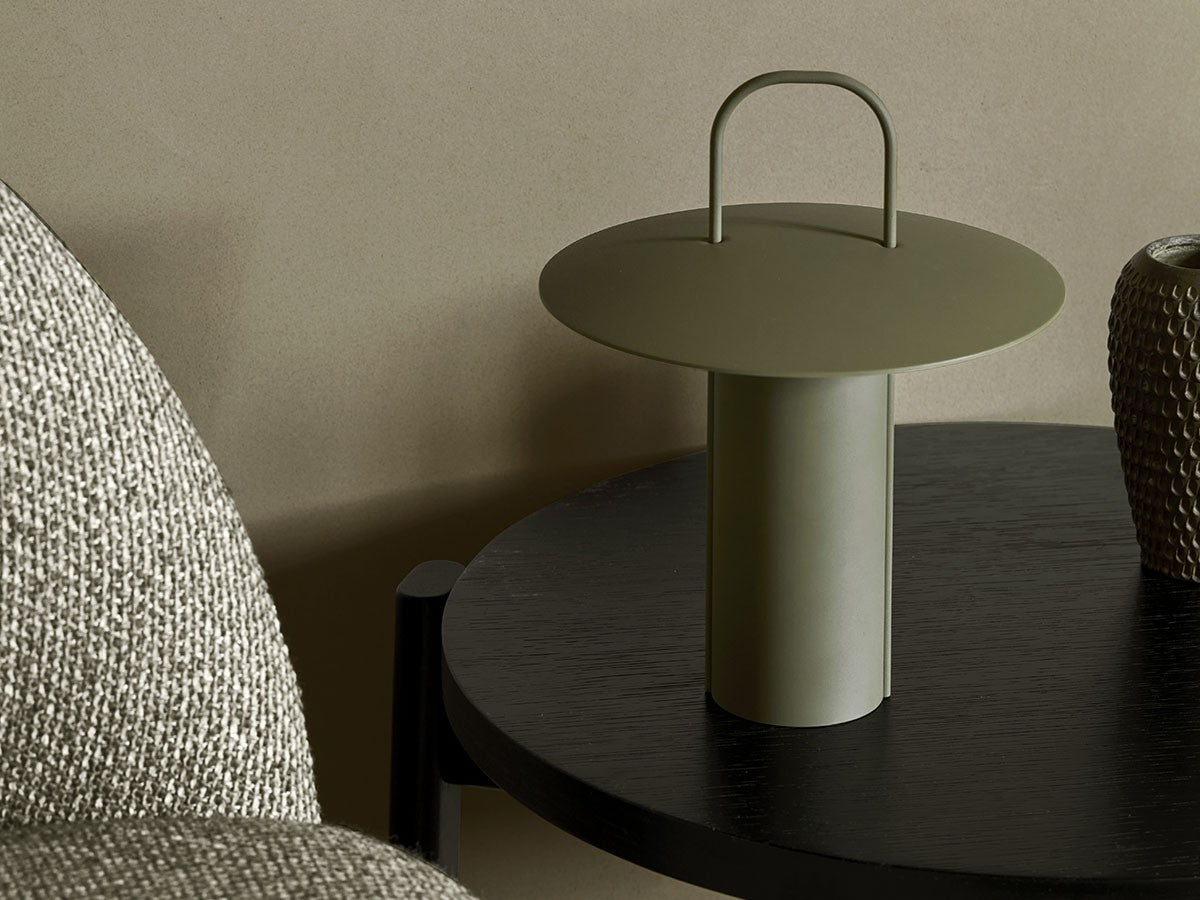 昔の鉱山で使用されていたランプにインスパイアされた独特なシルエットが魅力のポータブルライト。グラフィック、建築、デザインを学んだイギリス人デザイナー、Daniel Schofield(ダニエル・スコーフィルド)ならではのデザインです。古い工業製品をシンプルでグラフィカルなデザインに再構築し、コンテンポラリーな雰囲気に仕上げています。パウダーコーティングされたスチールのシンプルなデザインで、リビングルームの棚やダイニングテーブル、ベッドサイドのキャビネットなど、明かりが必要な場所に簡単に持ち運べる実用的なトップハンドルが付いています。円柱型の本体内に設置されたLED電球の上向きの光源が、シェードによって反射し、下方に柔らかく落ち着いた光を放ちます。3段階に調光が可能。どんなインテリアにもマッチする美しい2色展開です。