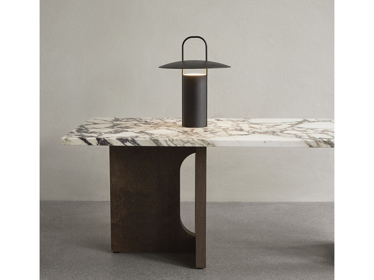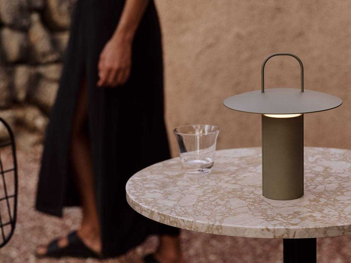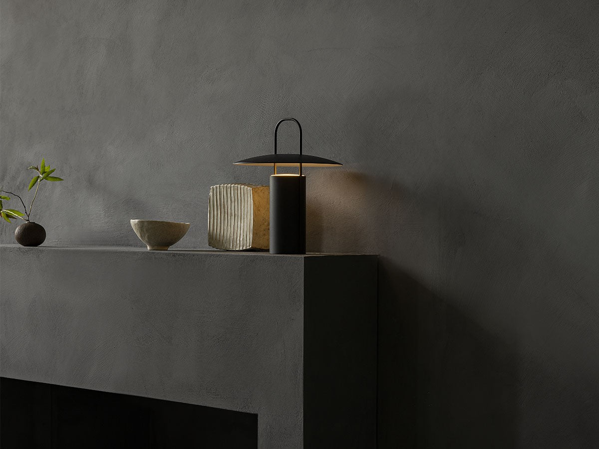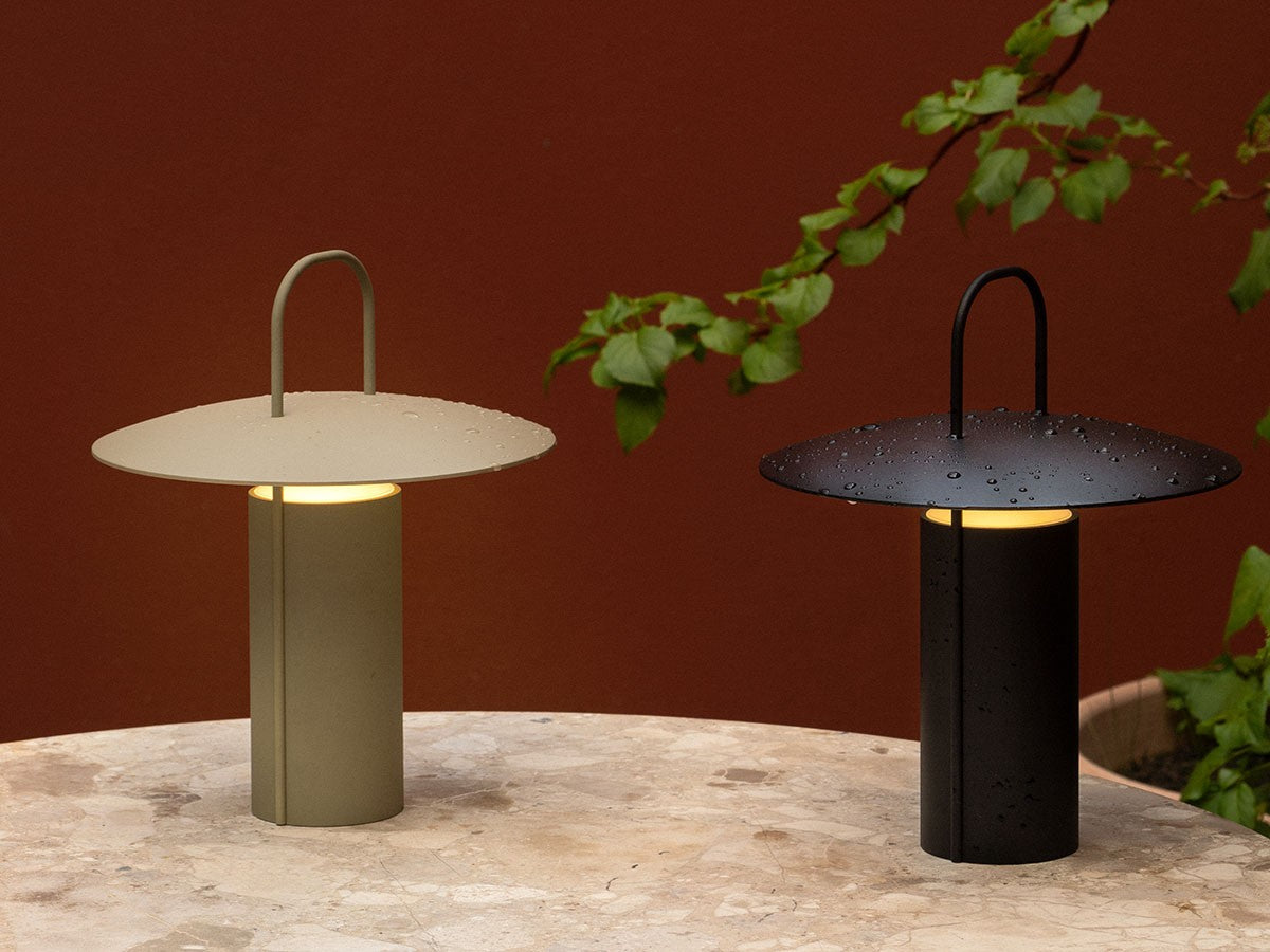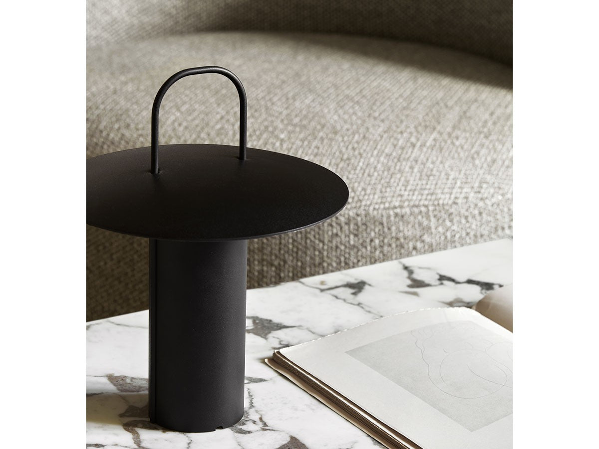 昔の鉱山で使用されていたランプにインスパイアされた独特なシルエットが魅力のポータブルライト。グラフィック、建築、デザインを学んだイギリス人デザイナー、Daniel Schofield(ダニエル・スコーフィルド)ならではのデザインです。古い工業製品をシンプルでグラフィカルなデザインに再構築し、コンテンポラリーな雰囲気に仕上げています。パウダーコーティングされたスチールのシンプルなデザインで、リビングルームの棚やダイニングテーブル、ベッドサイドのキャビネットなど、明かりが必要な場所に簡単に持ち運べる実用的なトップハンドルが付いています。円柱型の本体内に設置されたLED電球の上向きの光源が、シェードによって反射し、下方に柔らかく落ち着いた光を放ちます。3段階に調光が可能。どんなインテリアにもマッチする美しい2色展開です。