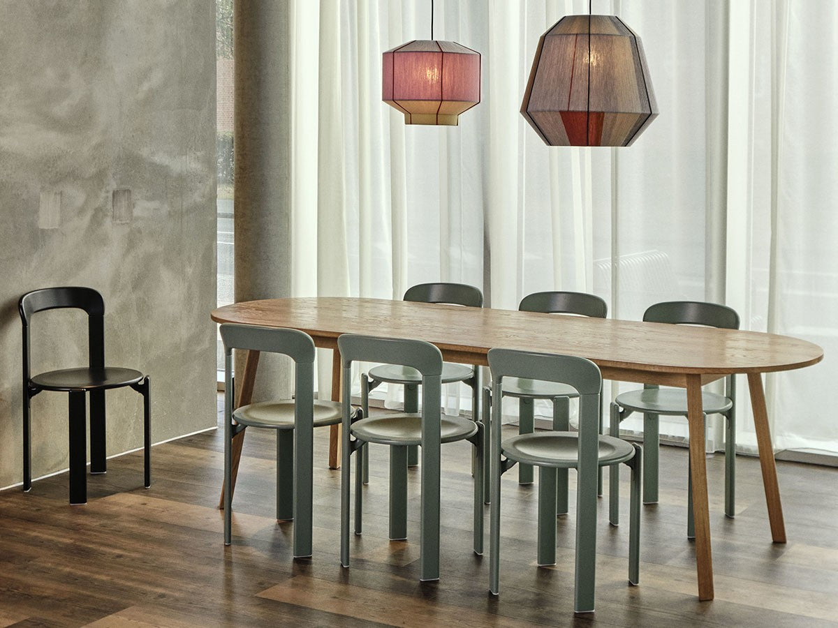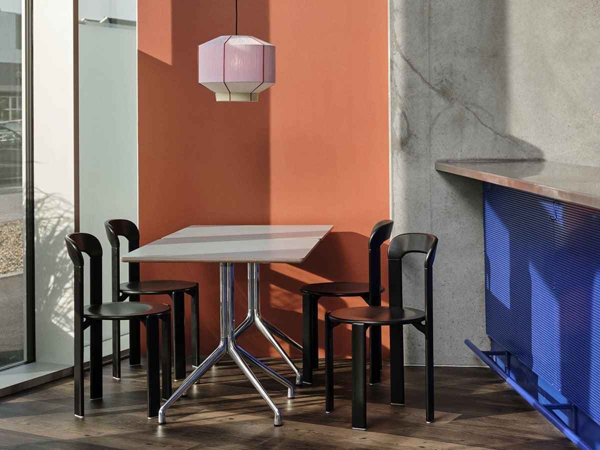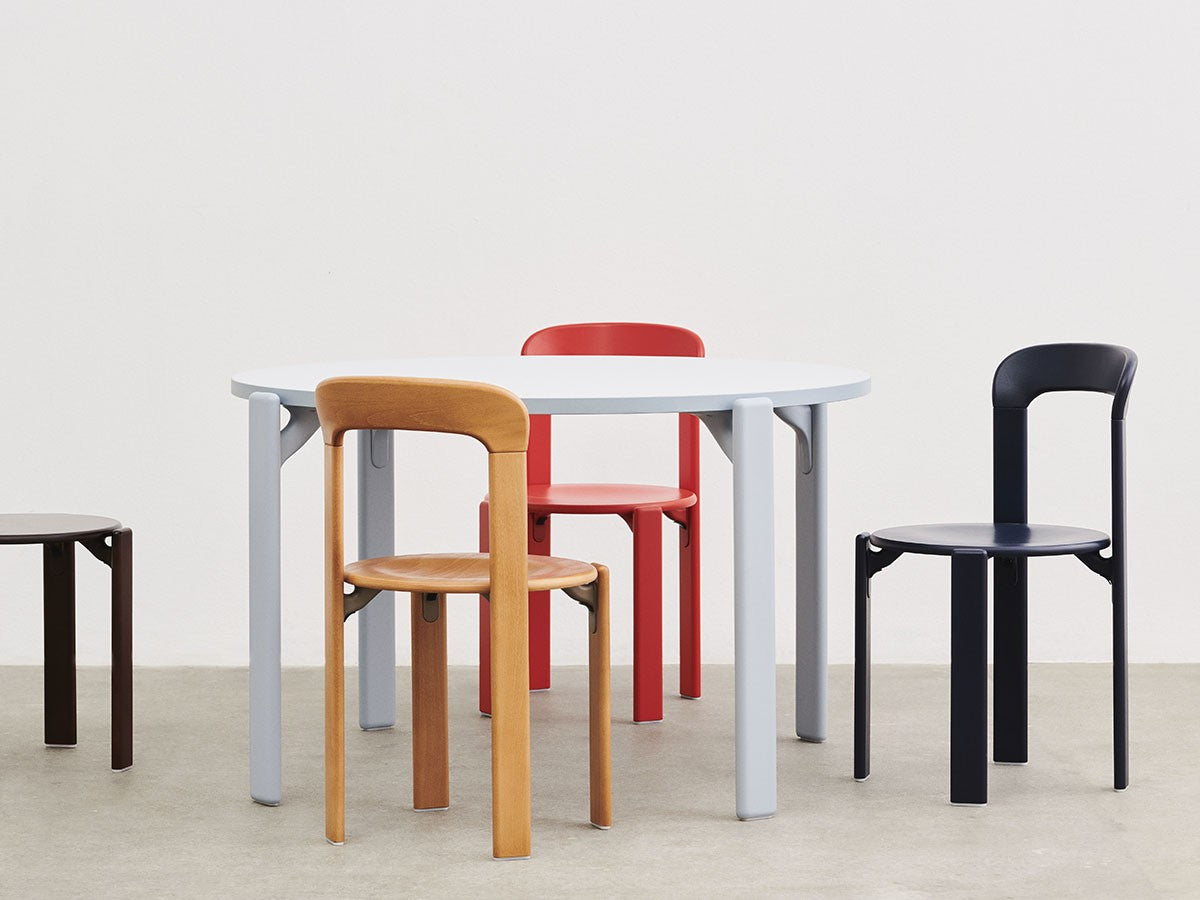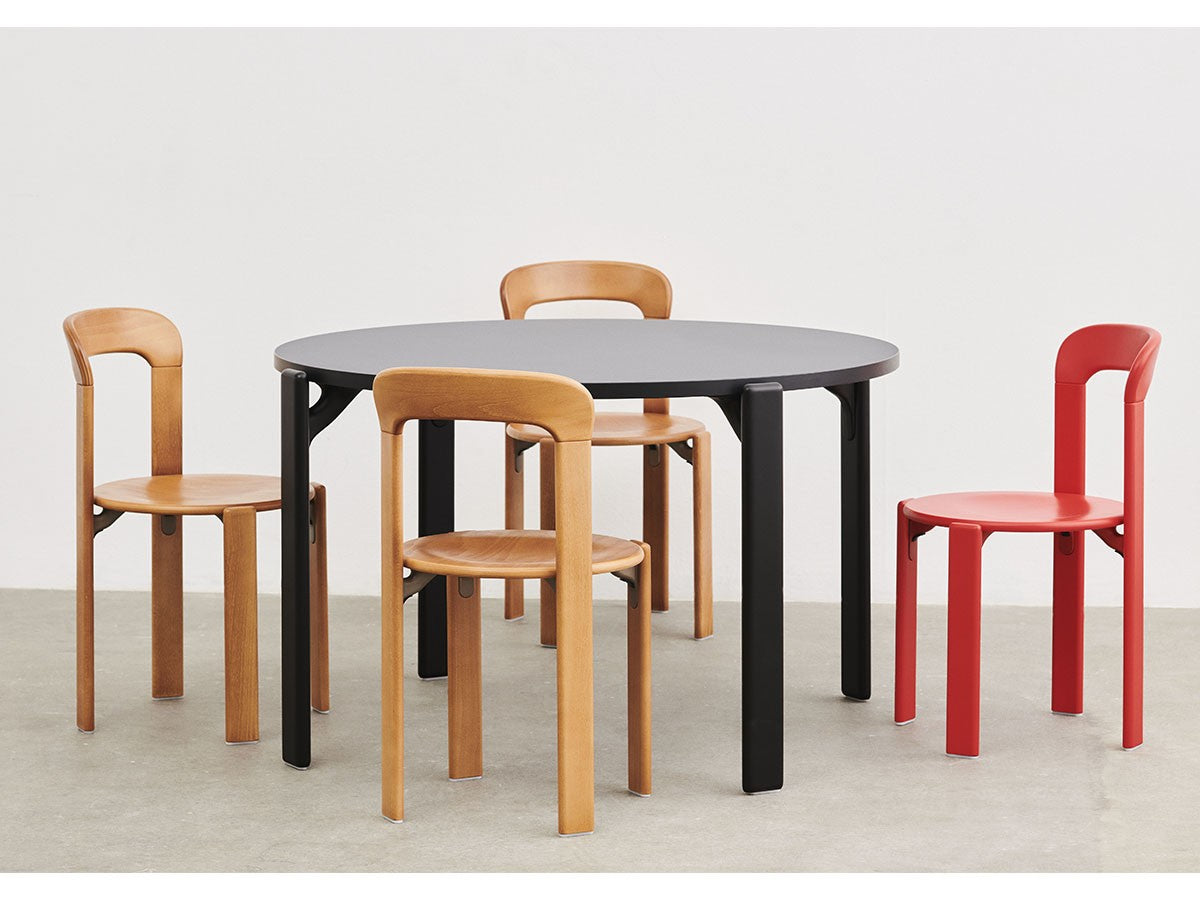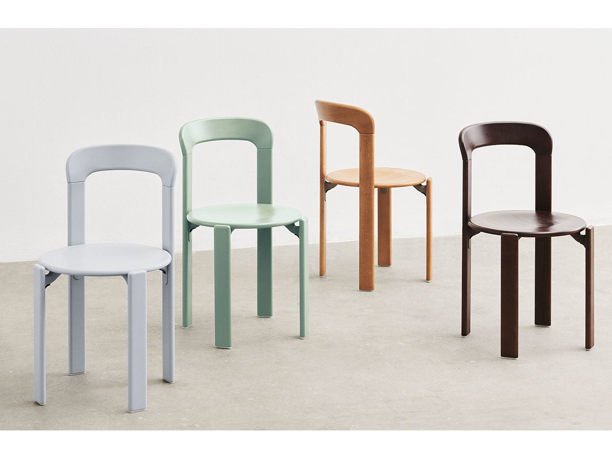 ミッドセンチュリー期のスイスデザイン界を牽引したデザイナー、Bruno Rey(ブルーノ・レイ)が、1971年にデザインした「REY」コレクションをベースとしたダイニングチェア。当初生産していたスイスの家具メーカー、Dietiker社とHAYの共同により、現代のライフスタイルに合わせ、新たなサイズと素材の組み合わせで復刻されました。オリジナルカラーだけでなく、新たなカラーも追加されています。丸みを帯びたエッジと背もたれのカーブが特徴的なこのダイニングチェアは、ネジを使わずに木材と金属を接続するDietiker社独自の技術で、チェアとして初めて特許を取得し、スイスで最も成功した椅子となりました。頑丈なつくり、強度、スタッキング可能なデザインにより、時代を超えたクオリティを実現し、ご家庭からレストラン、カフェ、オフィス、公共施設まで、幅広いシーンでお使いいただけます。