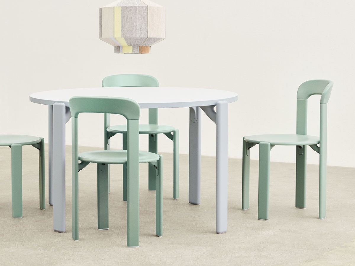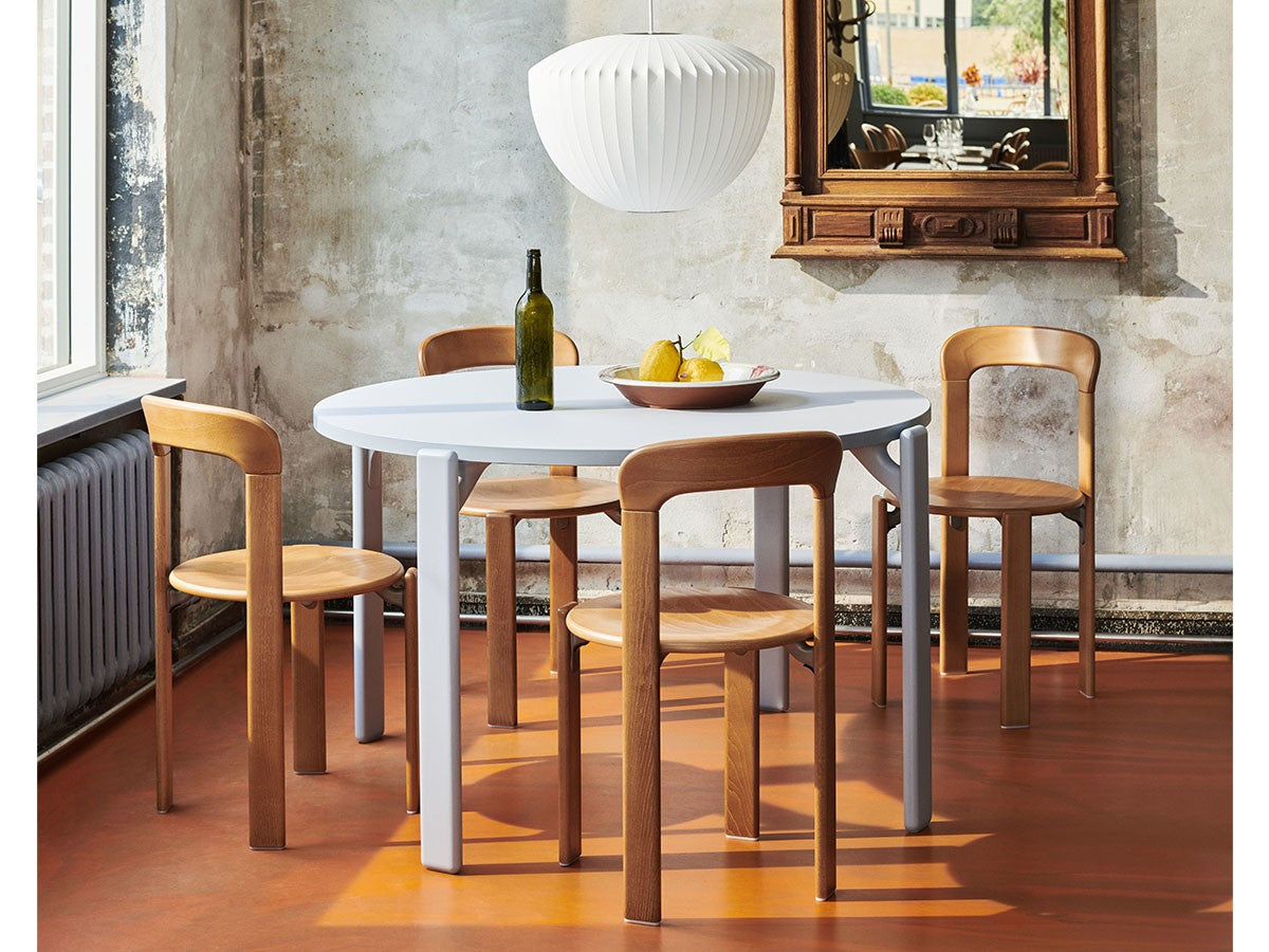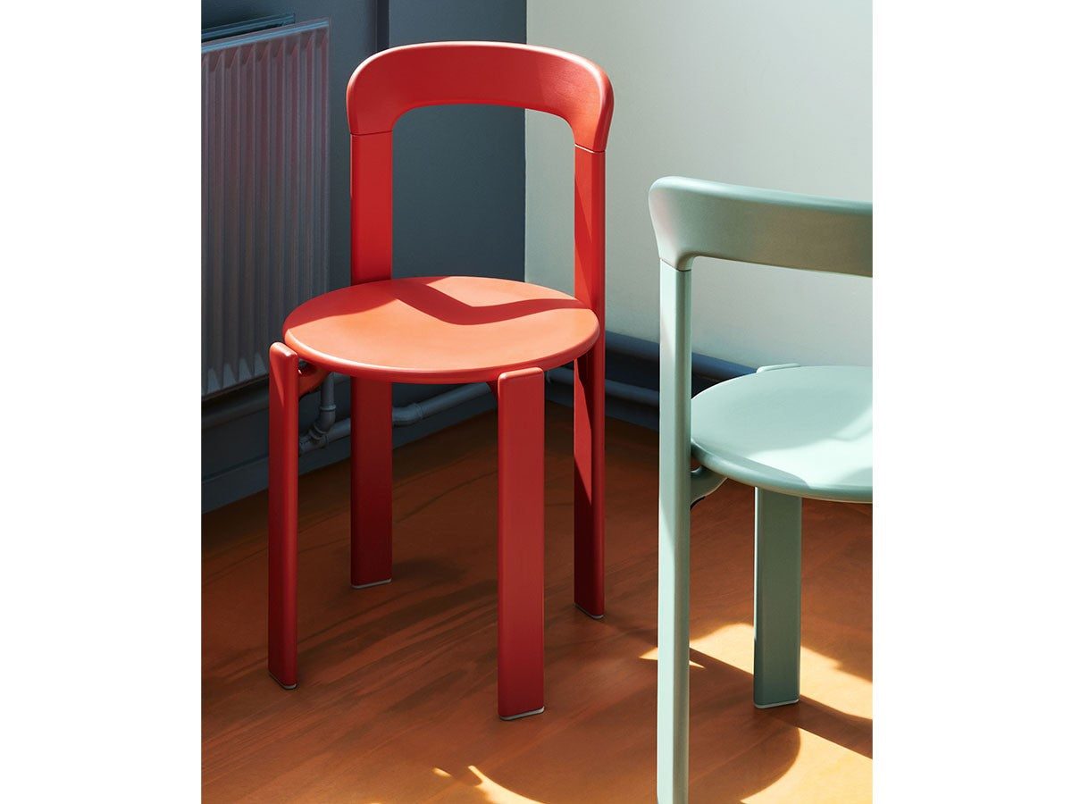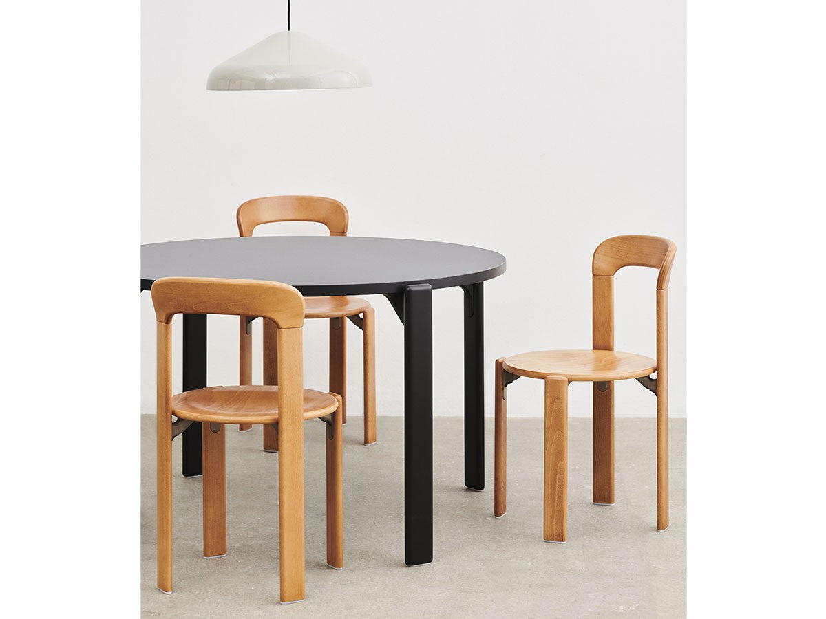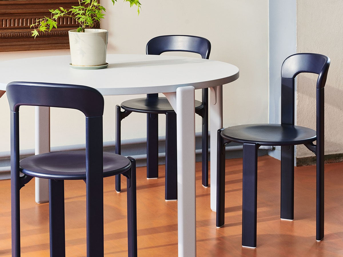 ミッドセンチュリー期のスイスデザイン界を牽引したデザイナー、Bruno Rey(ブルーノ・レイ)が、1971年にデザインした「REY」コレクションをベースとしたダイニングチェア。当初生産していたスイスの家具メーカー、Dietiker社とHAYの共同により、現代のライフスタイルに合わせ、新たなサイズと素材の組み合わせで復刻されました。オリジナルカラーだけでなく、新たなカラーも追加されています。丸みを帯びたエッジと背もたれのカーブが特徴的なこのダイニングチェアは、ネジを使わずに木材と金属を接続するDietiker社独自の技術で、チェアとして初めて特許を取得し、スイスで最も成功した椅子となりました。頑丈なつくり、強度、スタッキング可能なデザインにより、時代を超えたクオリティを実現し、ご家庭からレストラン、カフェ、オフィス、公共施設まで、幅広いシーンでお使いいただけます。