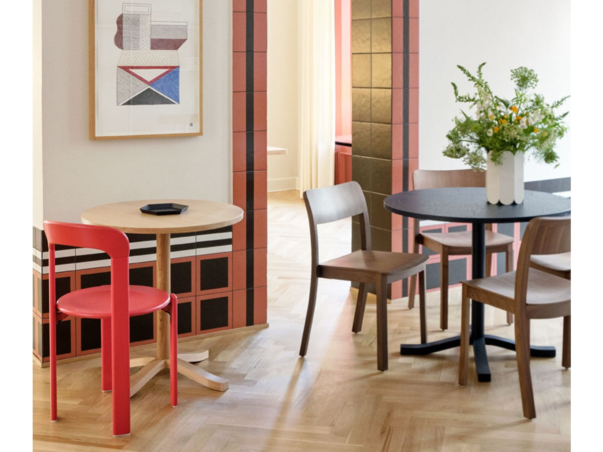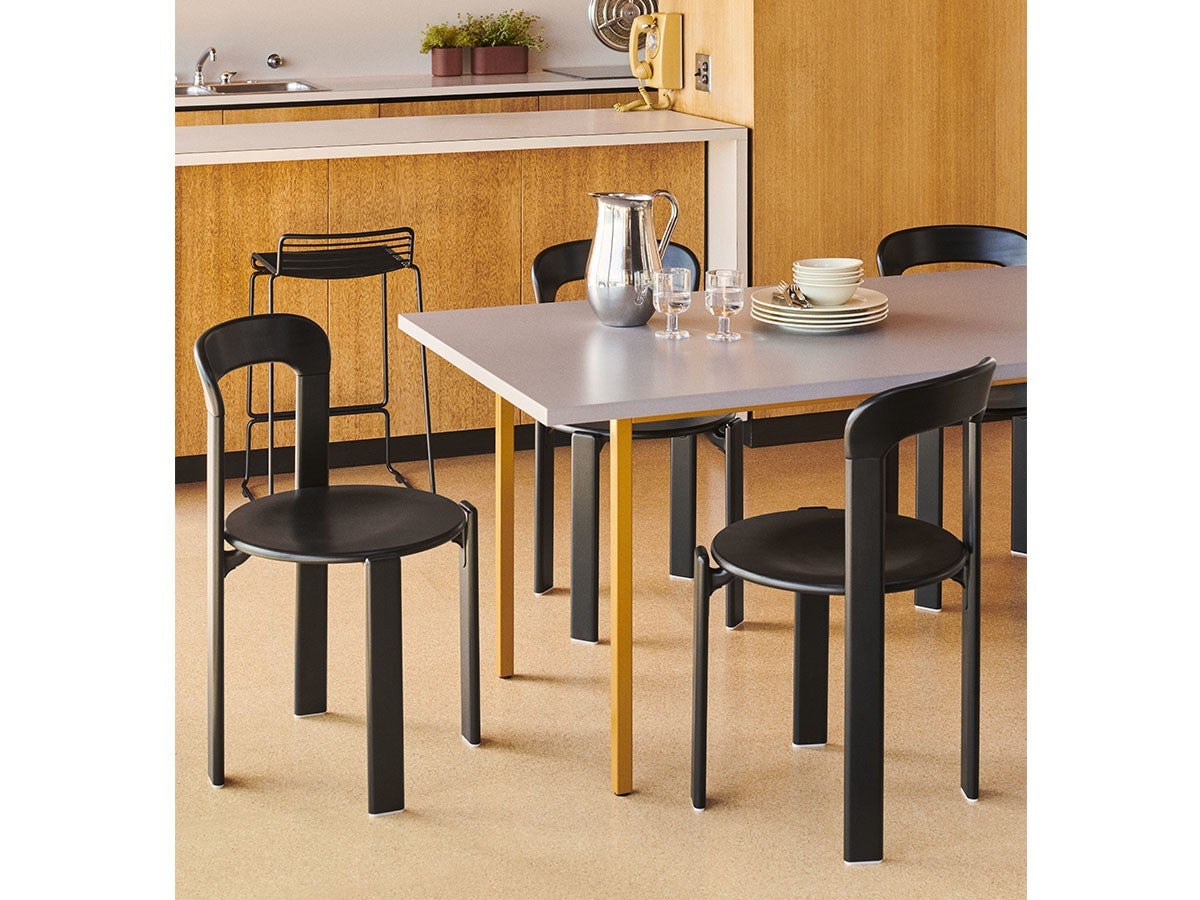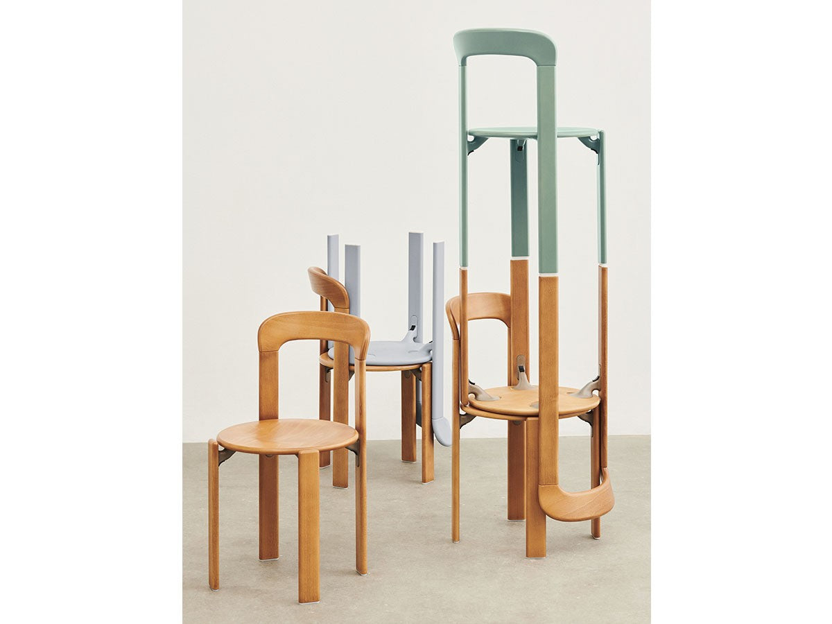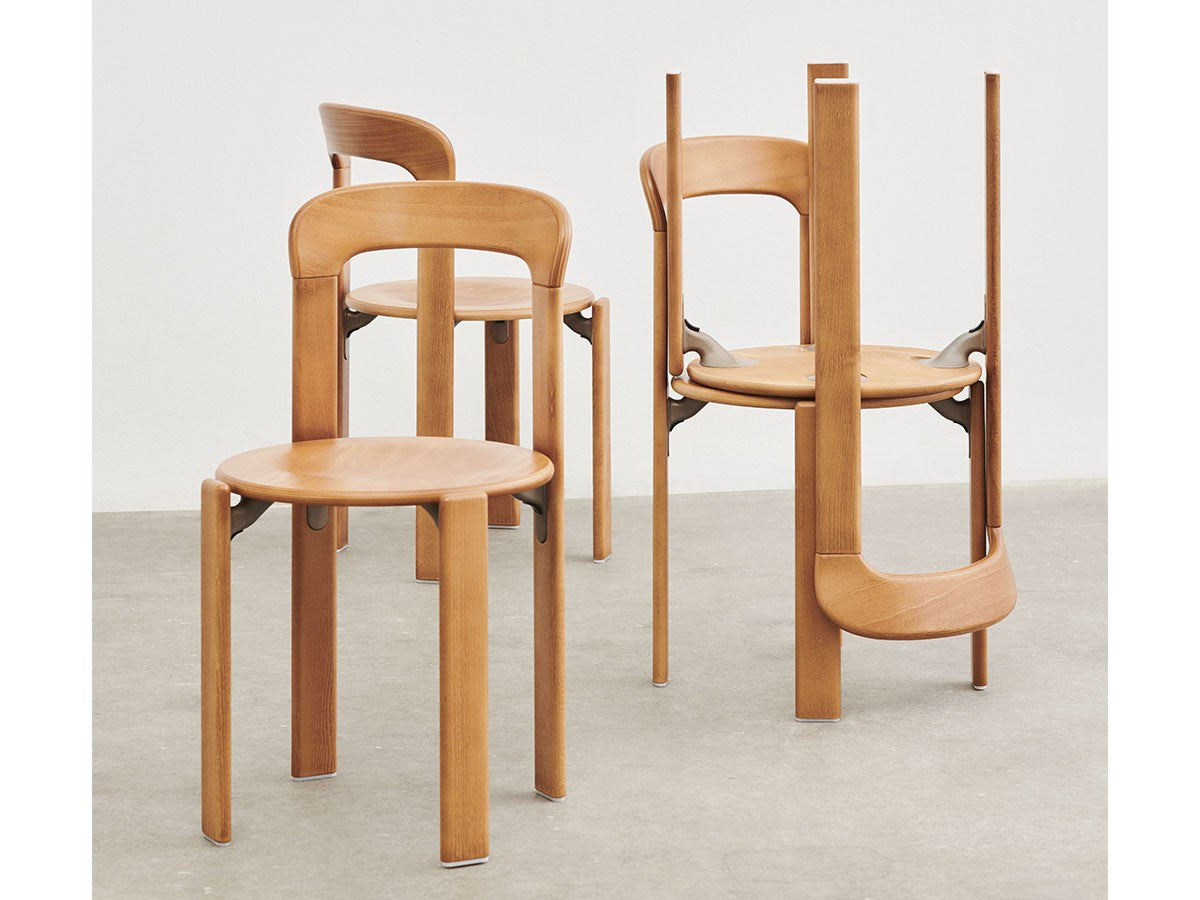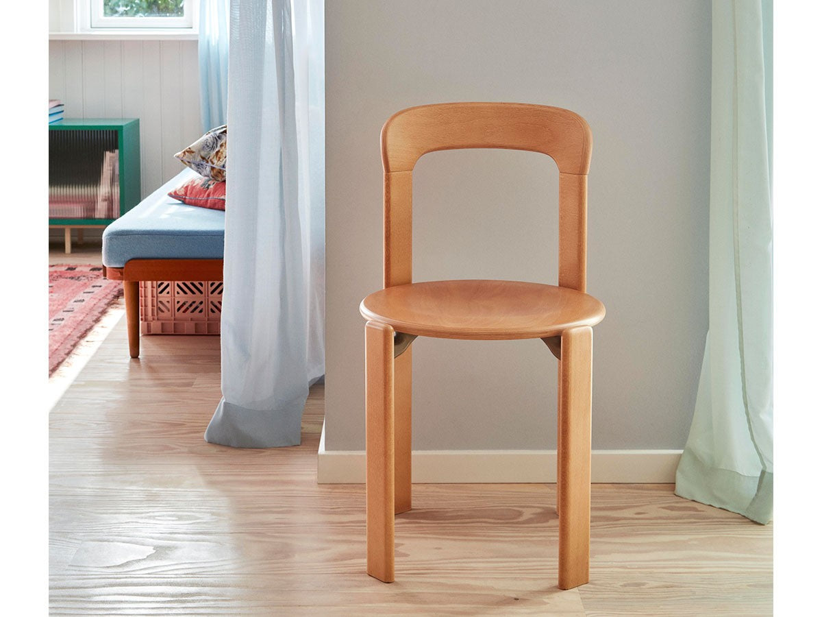 ミッドセンチュリー期のスイスデザイン界を牽引したデザイナー、Bruno Rey(ブルーノ・レイ)が、1971年にデザインした「REY」コレクションをベースとしたダイニングチェア。当初生産していたスイスの家具メーカー、Dietiker社とHAYの共同により、現代のライフスタイルに合わせ、新たなサイズと素材の組み合わせで復刻されました。オリジナルカラーだけでなく、新たなカラーも追加されています。丸みを帯びたエッジと背もたれのカーブが特徴的なこのダイニングチェアは、ネジを使わずに木材と金属を接続するDietiker社独自の技術で、チェアとして初めて特許を取得し、スイスで最も成功した椅子となりました。頑丈なつくり、強度、スタッキング可能なデザインにより、時代を超えたクオリティを実現し、ご家庭からレストラン、カフェ、オフィス、公共施設まで、幅広いシーンでお使いいただけます。