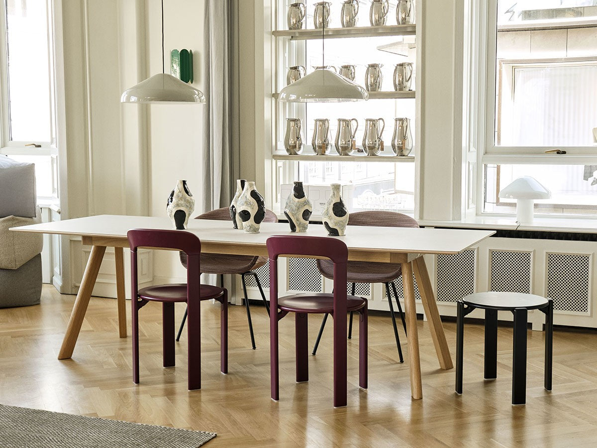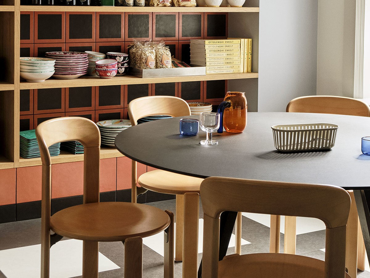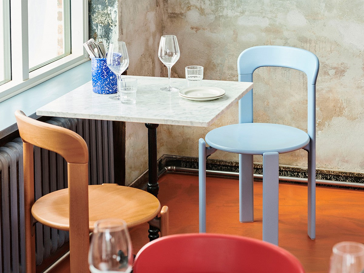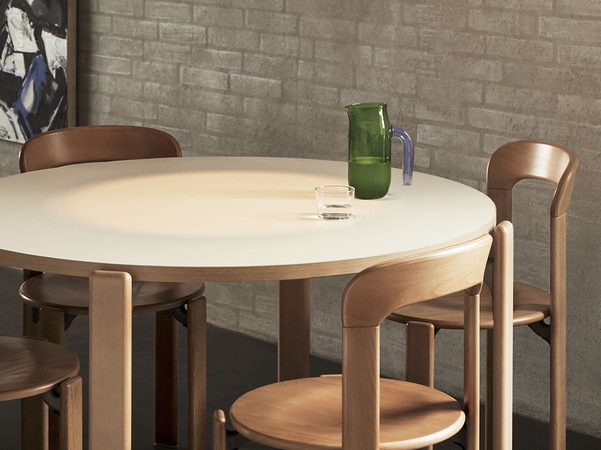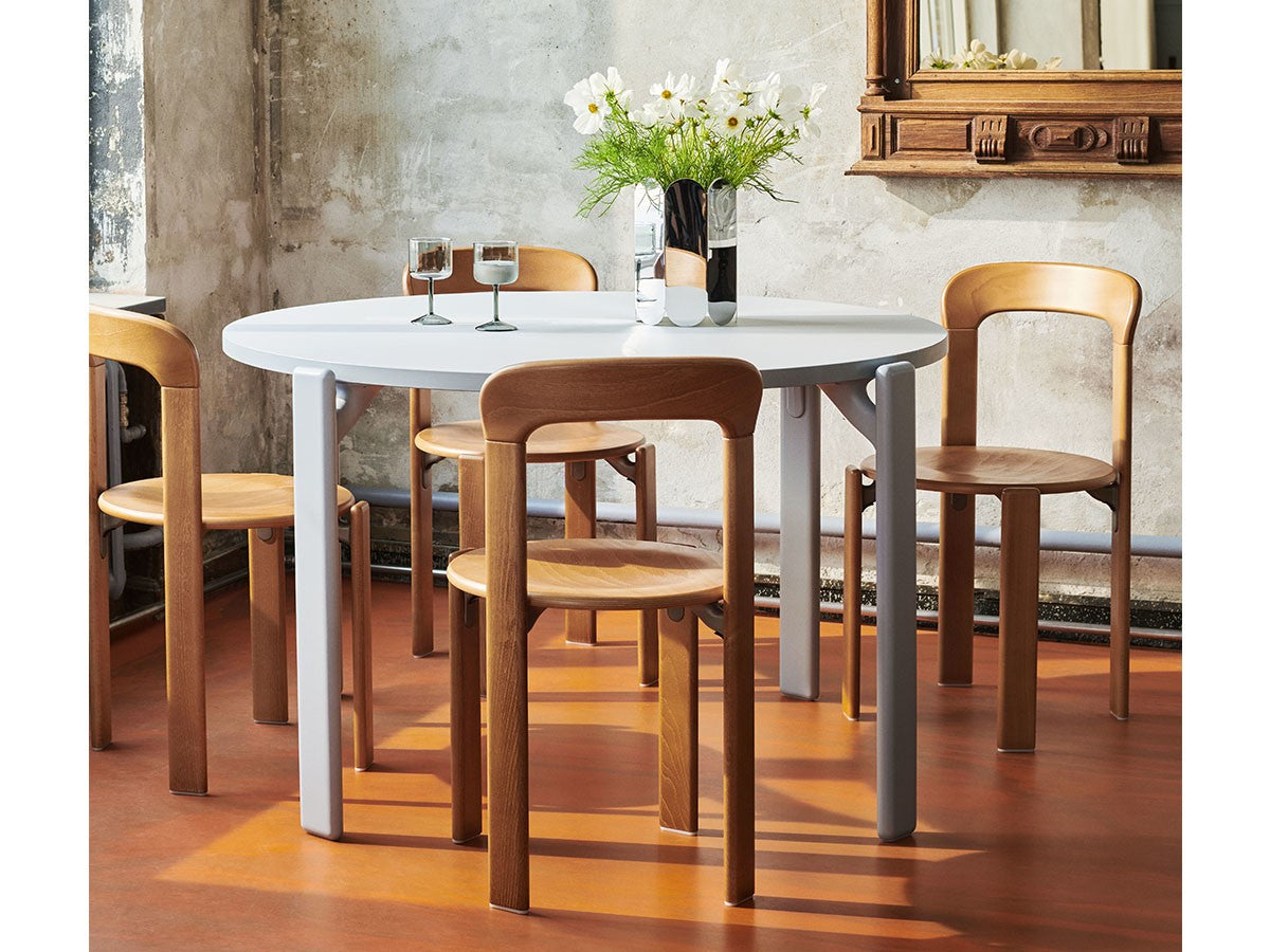 ミッドセンチュリー期のスイスデザイン界を牽引したデザイナー、Bruno Rey(ブルーノ・レイ)が、1971年にデザインした「REY」コレクションをベースとしたダイニングチェア。当初生産していたスイスの家具メーカー、Dietiker社とHAYの共同により、現代のライフスタイルに合わせ、新たなサイズと素材の組み合わせで復刻されました。オリジナルカラーだけでなく、新たなカラーも追加されています。丸みを帯びたエッジと背もたれのカーブが特徴的なこのダイニングチェアは、ネジを使わずに木材と金属を接続するDietiker社独自の技術で、チェアとして初めて特許を取得し、スイスで最も成功した椅子となりました。頑丈なつくり、強度、スタッキング可能なデザインにより、時代を超えたクオリティを実現し、ご家庭からレストラン、カフェ、オフィス、公共施設まで、幅広いシーンでお使いいただけます。