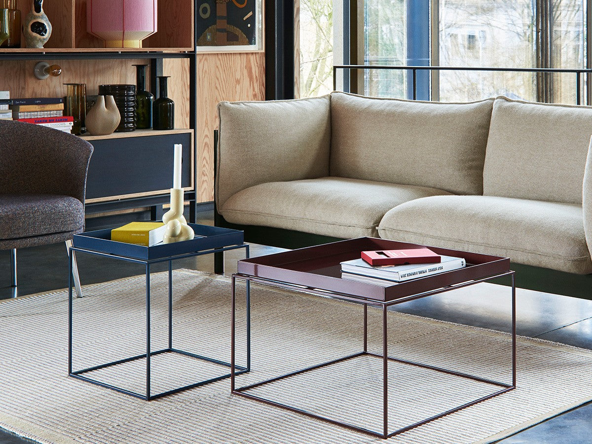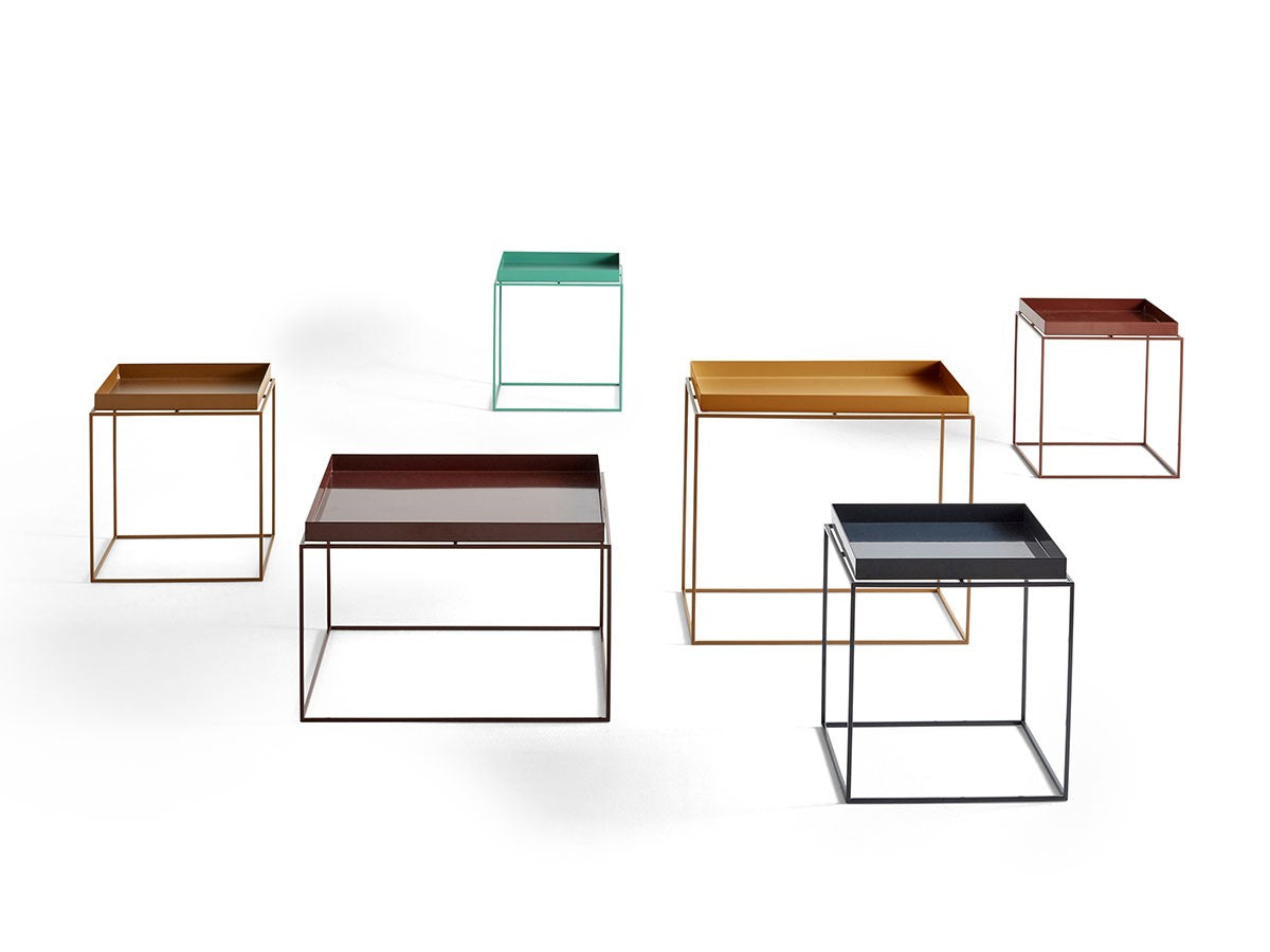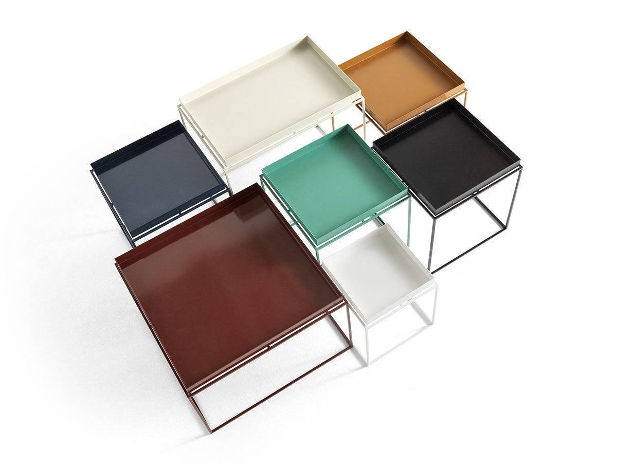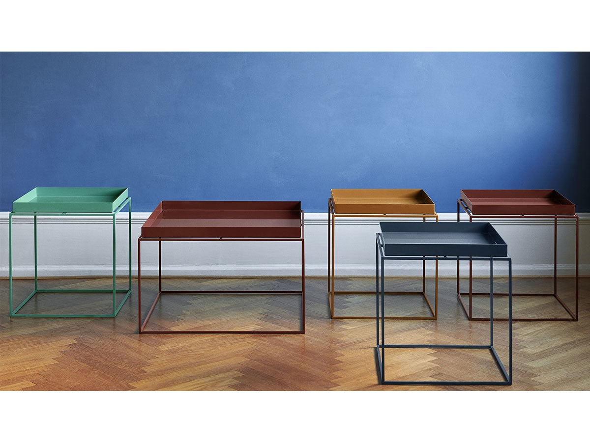 2つの用途を備えたコーヒーテーブル。天板を取り付けるとサイドテーブルやコーヒーテーブルとして、天板を取り外すと物を運ぶトレイとしてお使いいただけます。天板には縁を持たせているため、置いた物の落下を防止します。直線だけで構成されたスリムなスチール製フレームと天板は、シンプルでグラフィカルなデザインです。ご家庭だけでなく、オフィスや商業施設にもおすすめです。4つのサイズとカラーバリエーションがあるので、複数を組み合わせて、コーディネートをお楽しみいただけます。