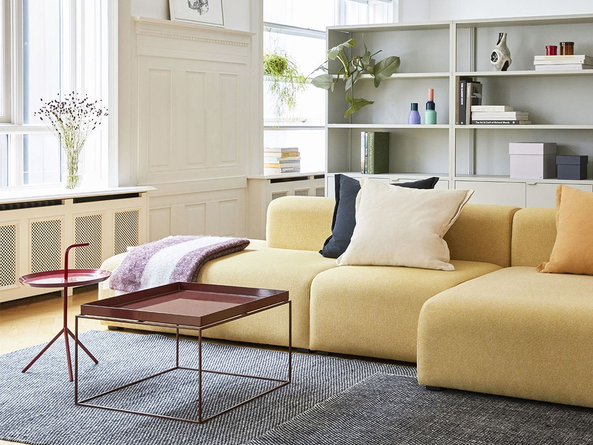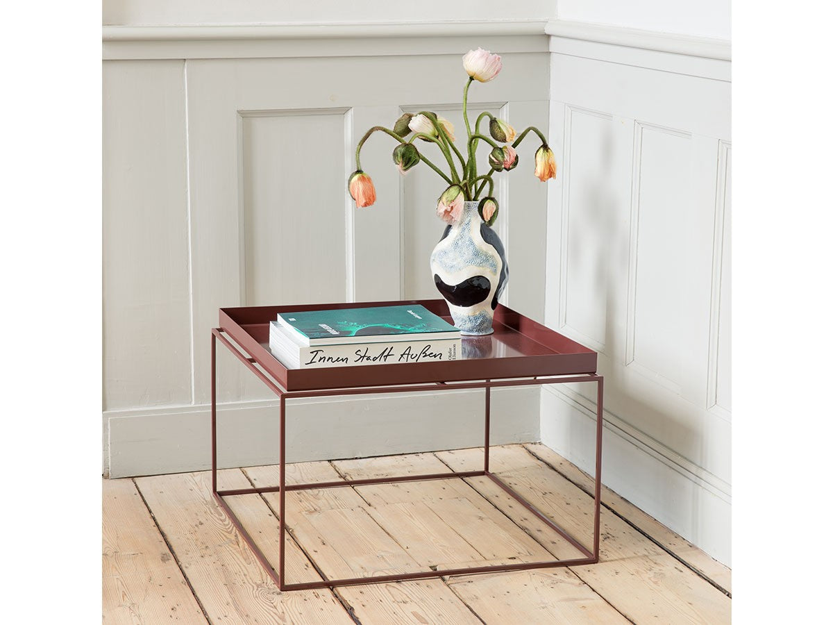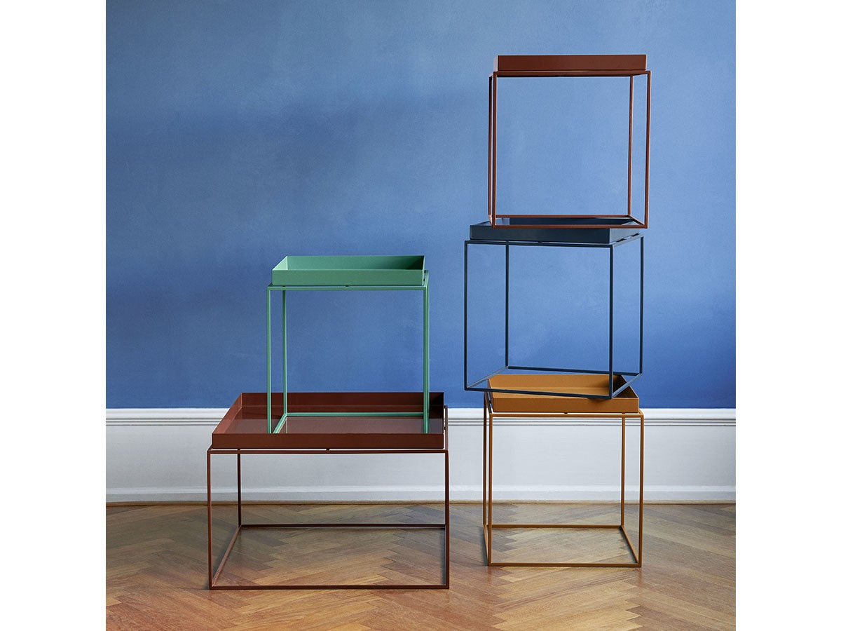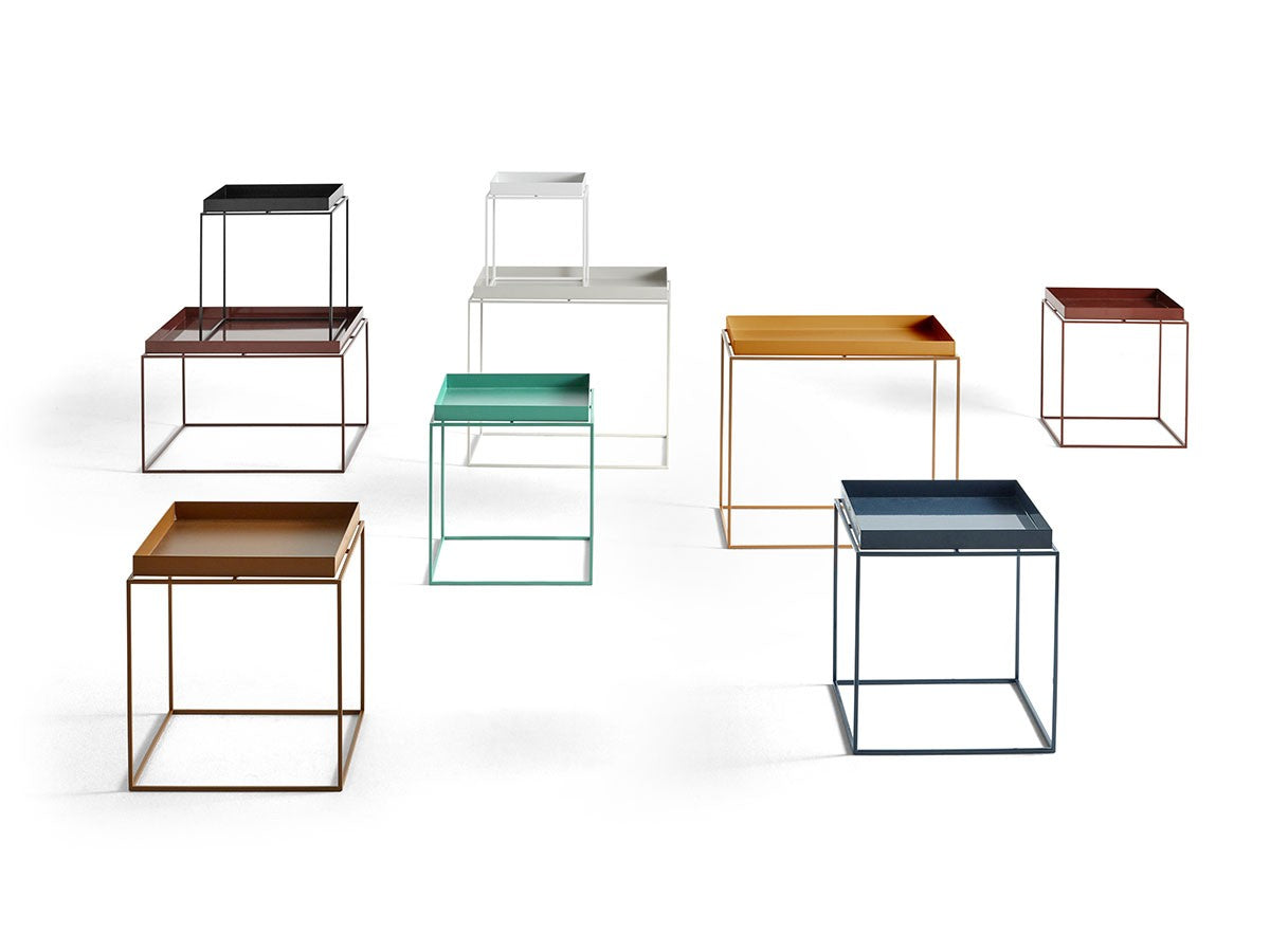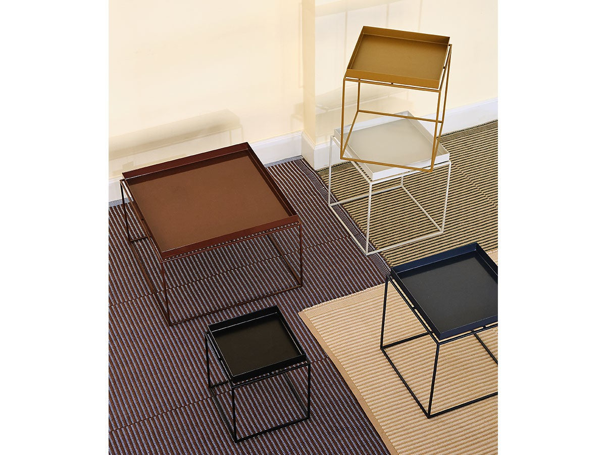 2つの用途を備えたコーヒーテーブル。天板を取り付けるとサイドテーブルやコーヒーテーブルとして、天板を取り外すと物を運ぶトレイとしてお使いいただけます。天板には縁を持たせているため、置いた物の落下を防止します。直線だけで構成されたスリムなスチール製フレームと天板は、シンプルでグラフィカルなデザインです。ご家庭だけでなく、オフィスや商業施設にもおすすめです。4つのサイズとカラーバリエーションがあるので、複数を組み合わせて、コーディネートをお楽しみいただけます。