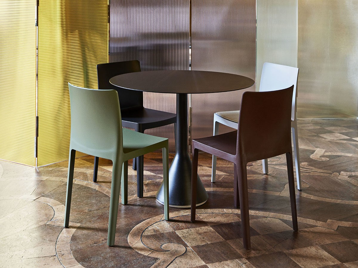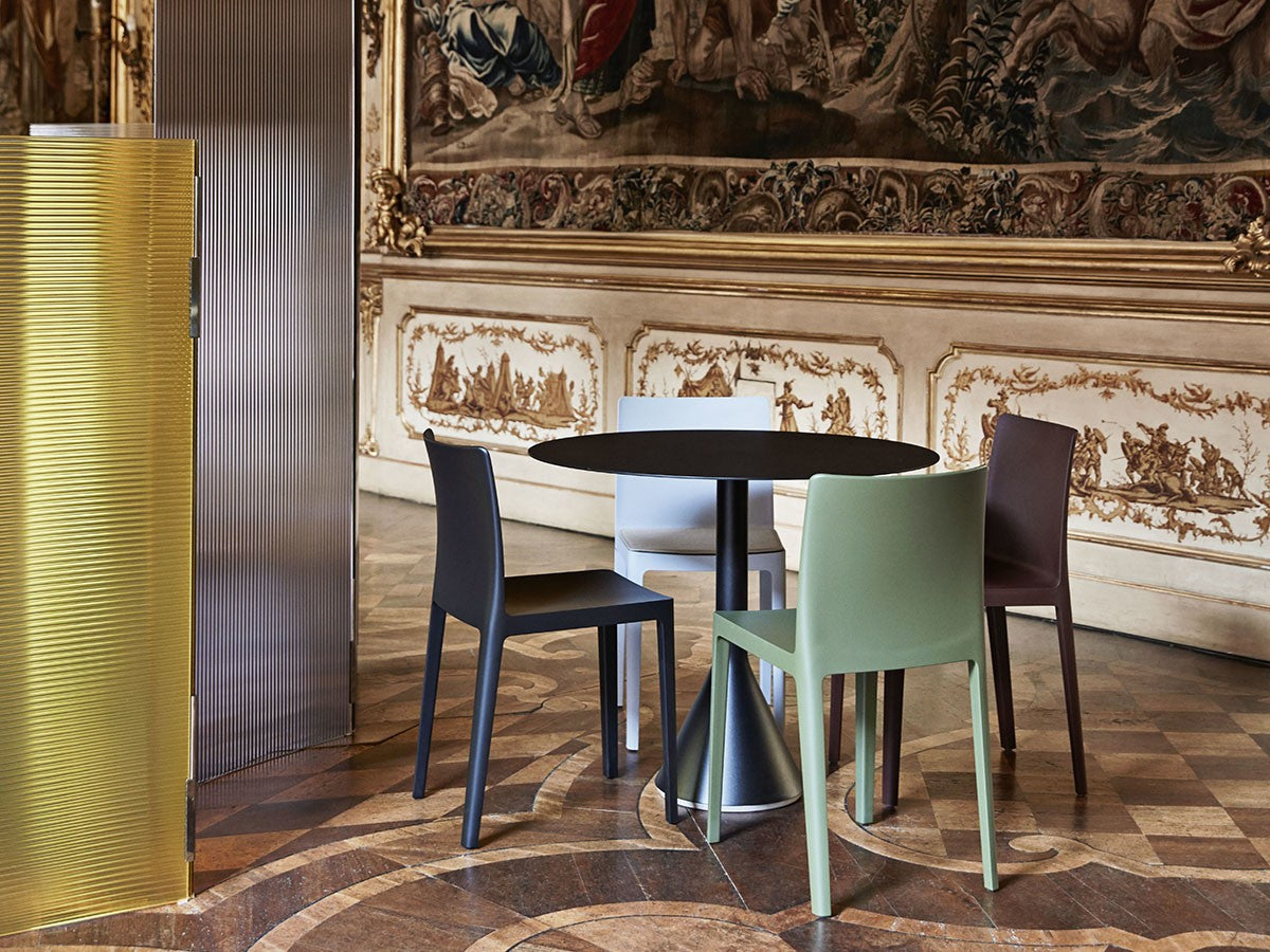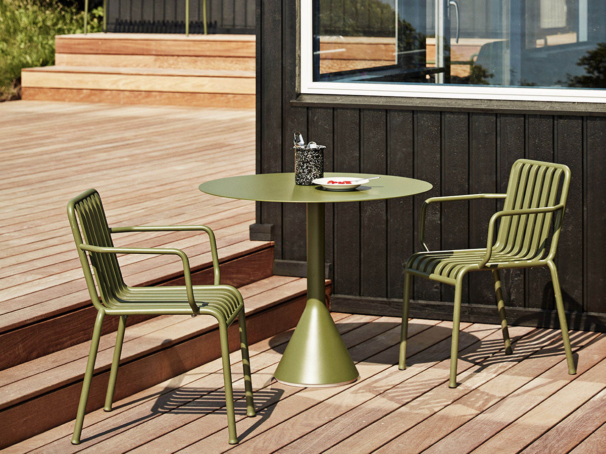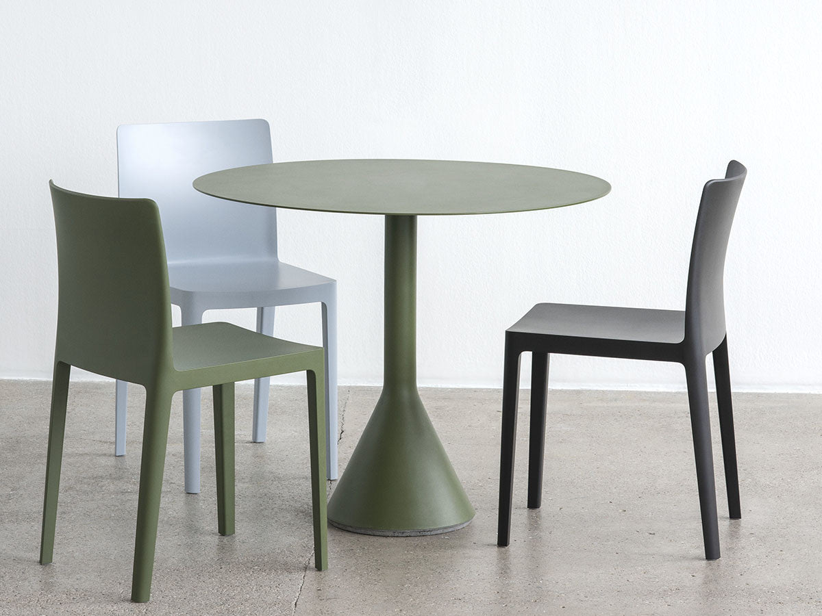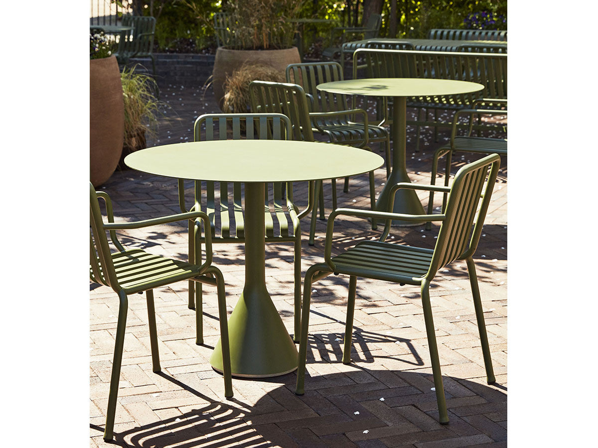 フランス出身の世界的デザインデュオ、Ronan & Erwan Bouroullec(ブルレック兄弟)による、アウトドアファニチャーコレクション「PALISSADE」のカフェテーブル。頑丈なベースと薄型の天板のグラフィカルなデザインは、コレクションの特徴でもあるエレガントな印象を保ちながらも、高い強度、コンパクトさ、安定感を兼ね備えています。屋外使用向けに、耐久性と弾力性に優れた粉体塗装スチールを特別に設計。さらに、劣化を防ぐために屋外用の塗装で仕上げています。コンクリートの土台が備わっているため、天候の影響を受けやすい屋外でも安定感を損ないません。ご家庭のテラスやバルコニーはもちろんのこと、カフェやレストラン、公共施設など、あらゆる空間に溶け込むデザインとなっています。