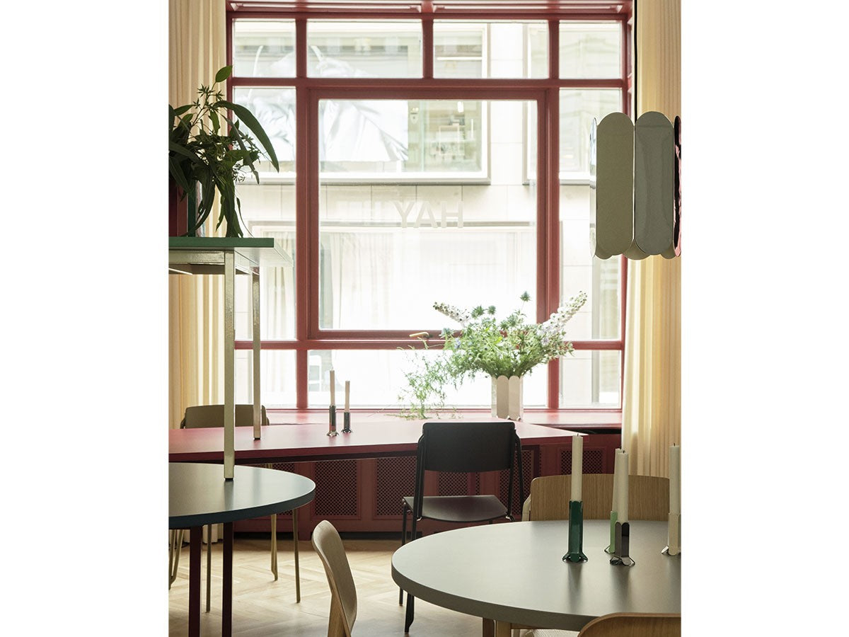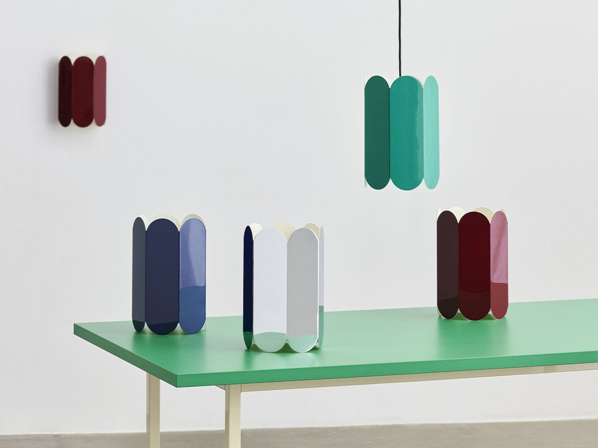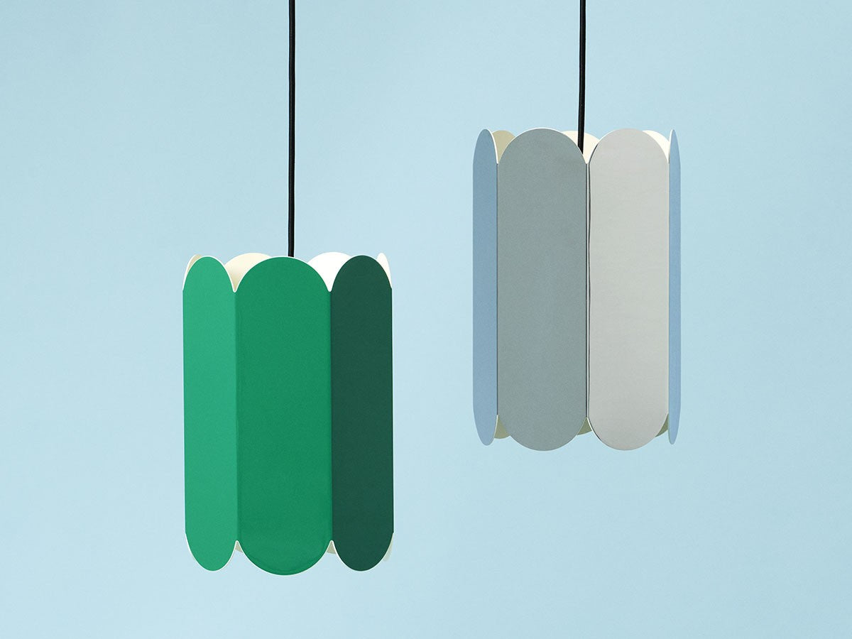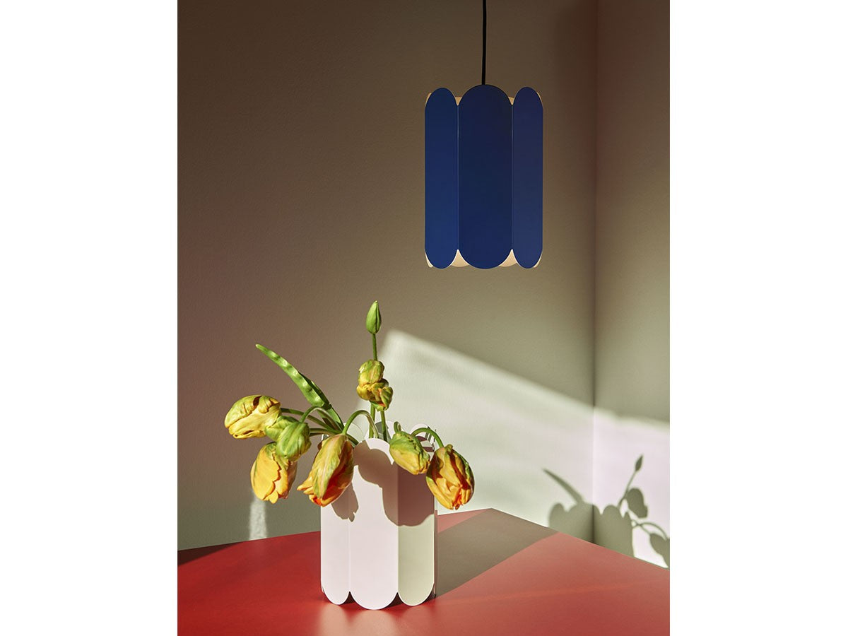 ベルギー出身のアーティストデュオ、Muller van Severen(ミュラー・ヴァン・セヴェレン)によるランプシェード。アーチ状の曲線が連続的に連なるスカラップシルエットは、シェードの両端から柔らかく溢れ出る光と形が相互に作用するように設計されており、ムードある表現と光のパターンを生みだします。削ぎ落されたシンプルなフォルム、このシェードの特徴でもある色の強さは、素材の魅力を最大限に引き出したデザイン。素材の自然な美しさを表現するために新しい方法を常に探求し、独自の存在感を与えることを目指す、ミュラー・ヴァン・セヴェレンならではのデザインです。ペンダントライト用のコードがセットになっています。あらゆるインテリアに溶け込むよう、鮮やかなカラーバリエーション、または自然光を反射する鏡面仕上げがあります。