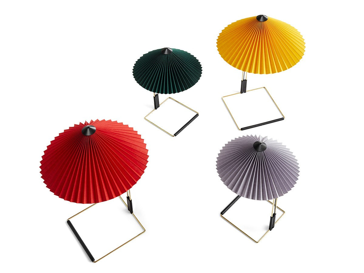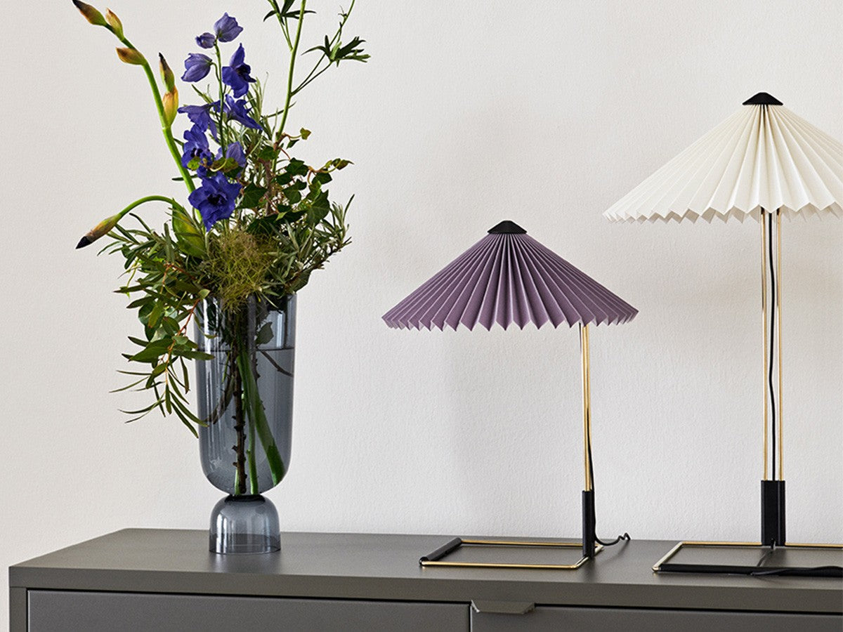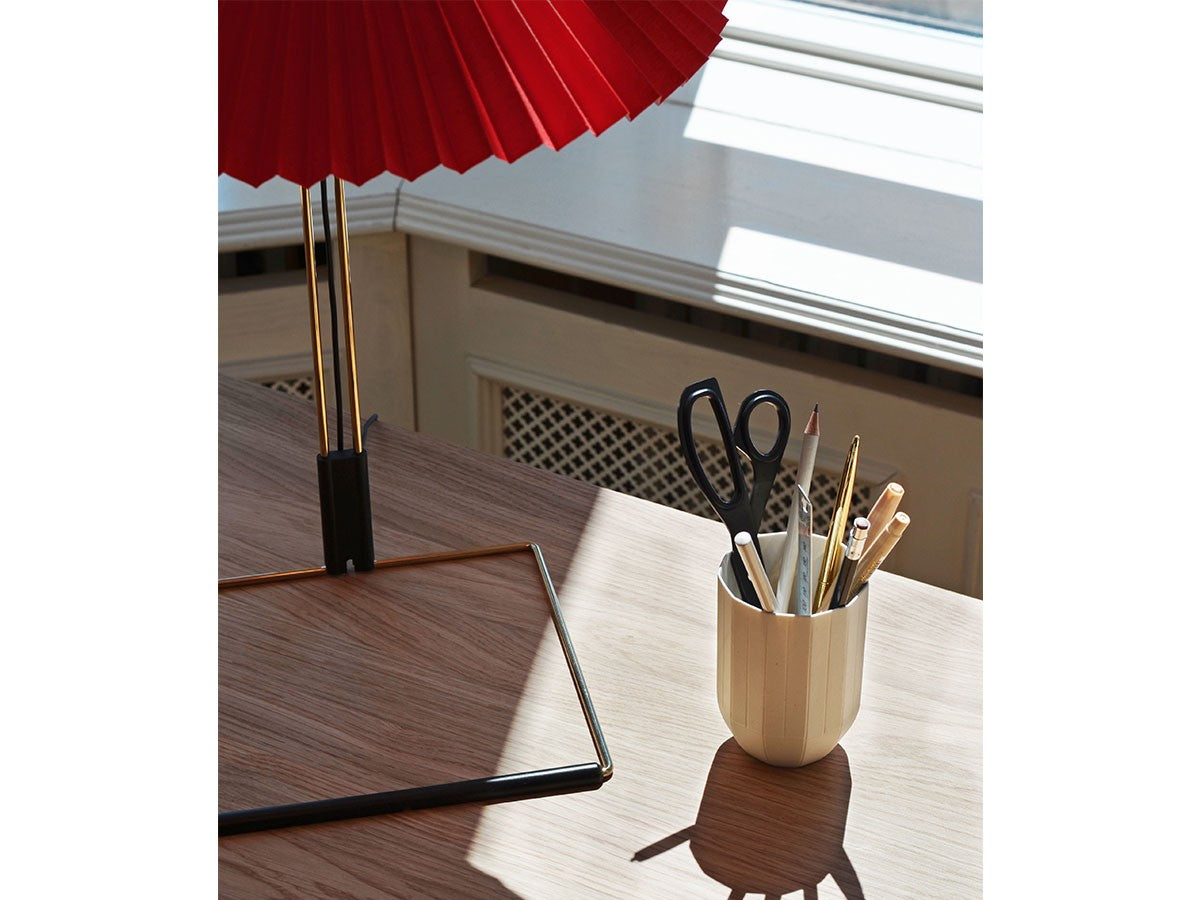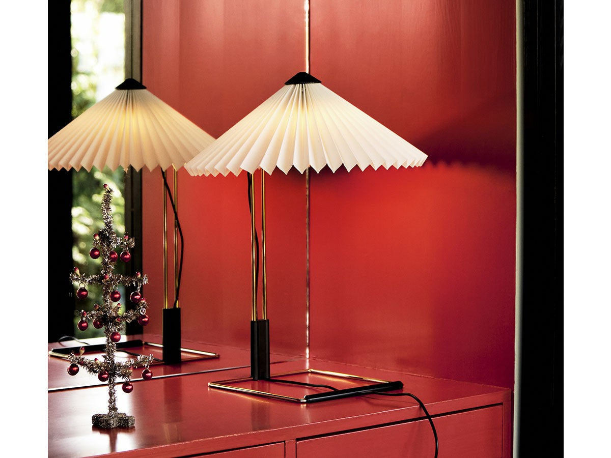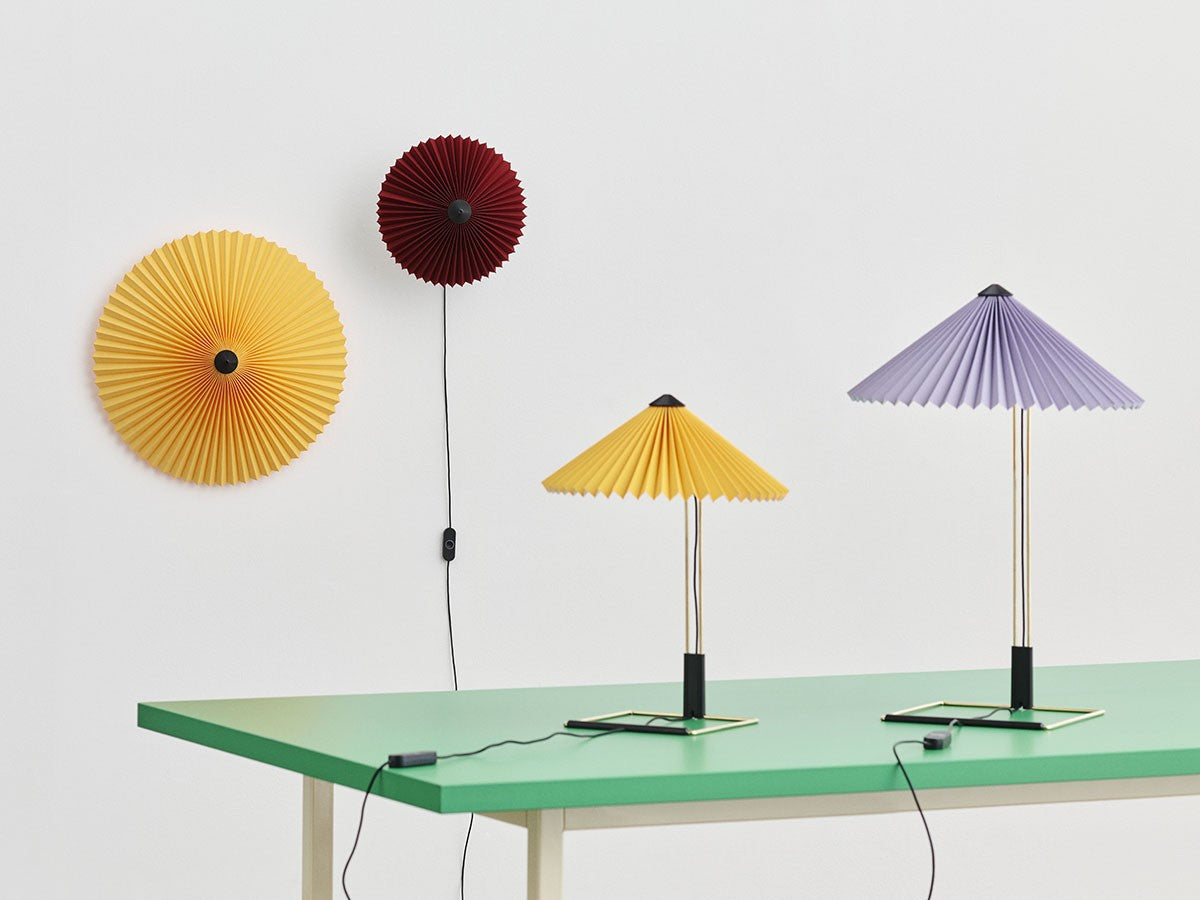 コンテンポラリーでありながらロマンチックなデザインのテーブルライト。繊細な印象ですが、堅牢さも兼ね備えた構造になっています。艶やかなブラス仕上げのスチールワイヤーを曲げたフレームとマットブラックの金具、鮮やかな色のプリーツコットンシェードを組み合わせ、魅力的なデザインとなっています。LEDを内蔵し、調光機能がついているため、必要に合わせて明るさを調整していただけます。スイッチを1回押すと最大輝度に、2回押すと中間の輝度に、3回押すと最低輝度に切り替わり、4回押すと消灯します。書斎やベッドルームの読書灯として、リビングルームの間接照明として、様々なシーンでお使いいただけます。スモールサイズとラージサイズの2サイズ展開です。