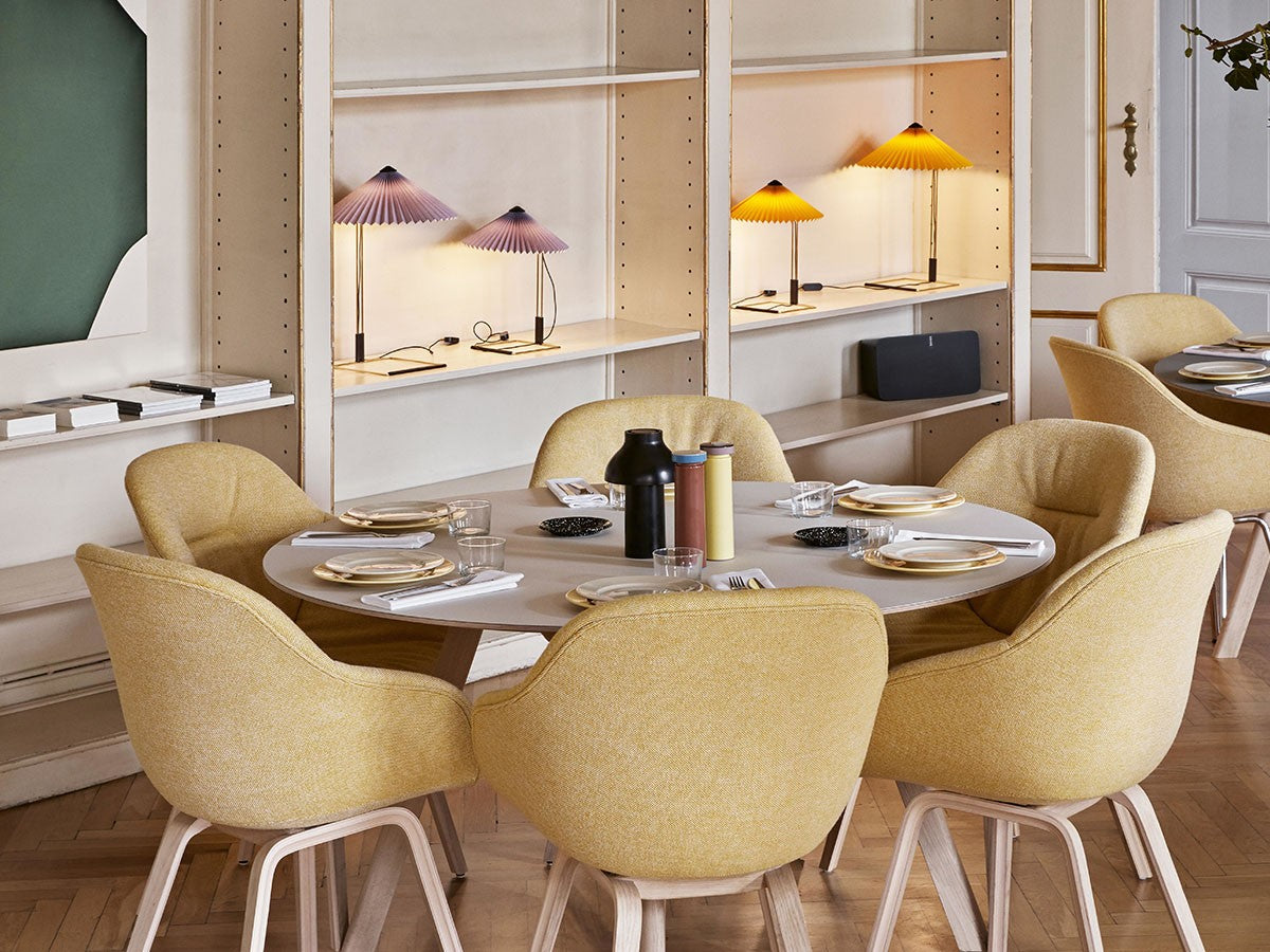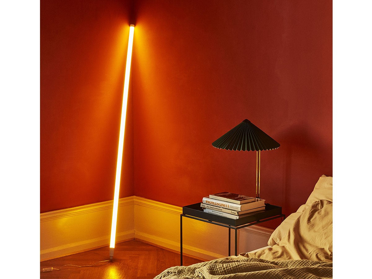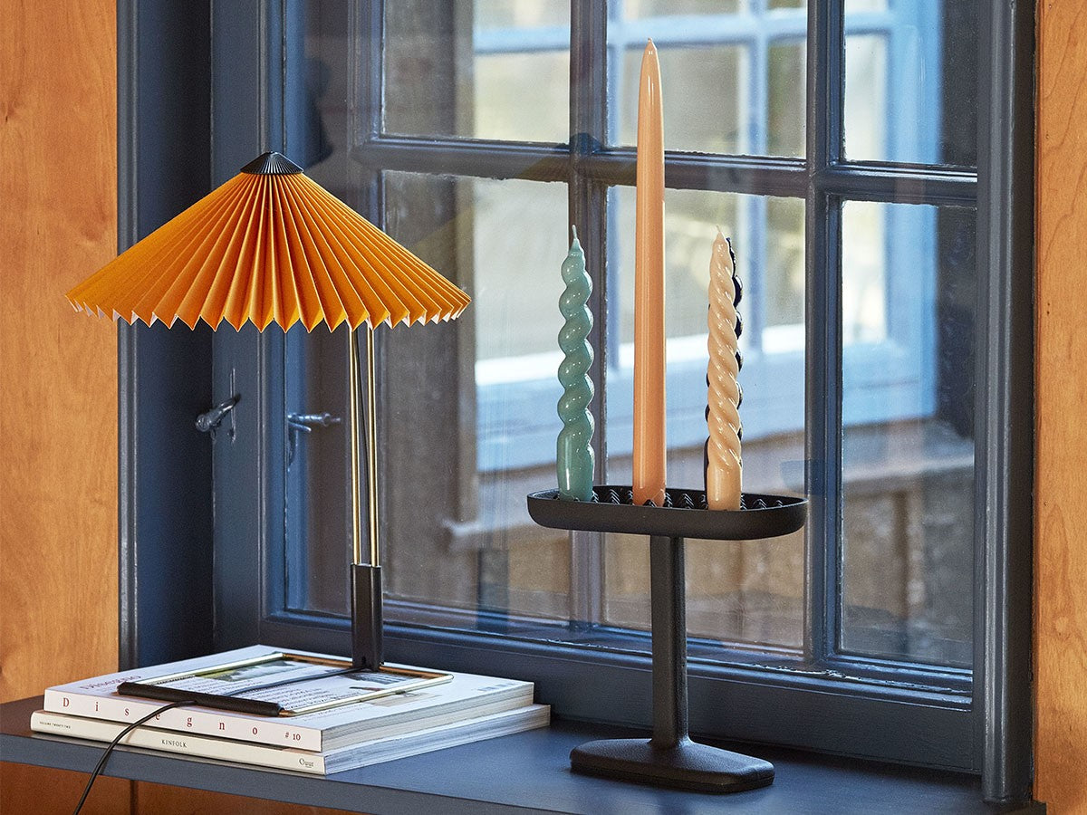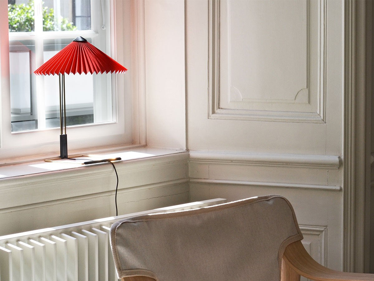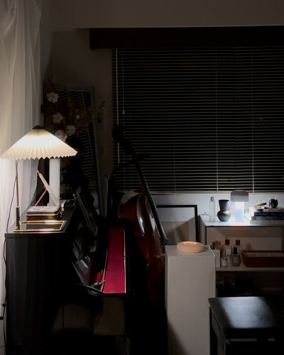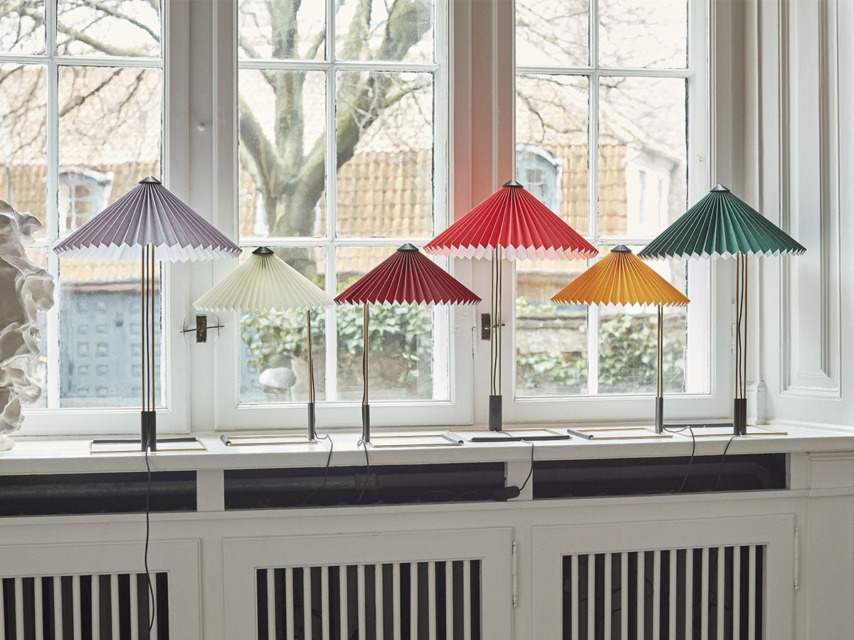 コンテンポラリーでありながらロマンチックなデザインのテーブルライト。繊細な印象ですが、堅牢さも兼ね備えた構造になっています。艶やかなブラス仕上げのスチールワイヤーを曲げたフレームとマットブラックの金具、鮮やかな色のプリーツコットンシェードを組み合わせ、魅力的なデザインとなっています。LEDを内蔵し、調光機能がついているため、必要に合わせて明るさを調整していただけます。スイッチを1回押すと最大輝度に、2回押すと中間の輝度に、3回押すと最低輝度に切り替わり、4回押すと消灯します。書斎やベッドルームの読書灯として、リビングルームの間接照明として、様々なシーンでお使いいただけます。スモールサイズとラージサイズの2サイズ展開です。