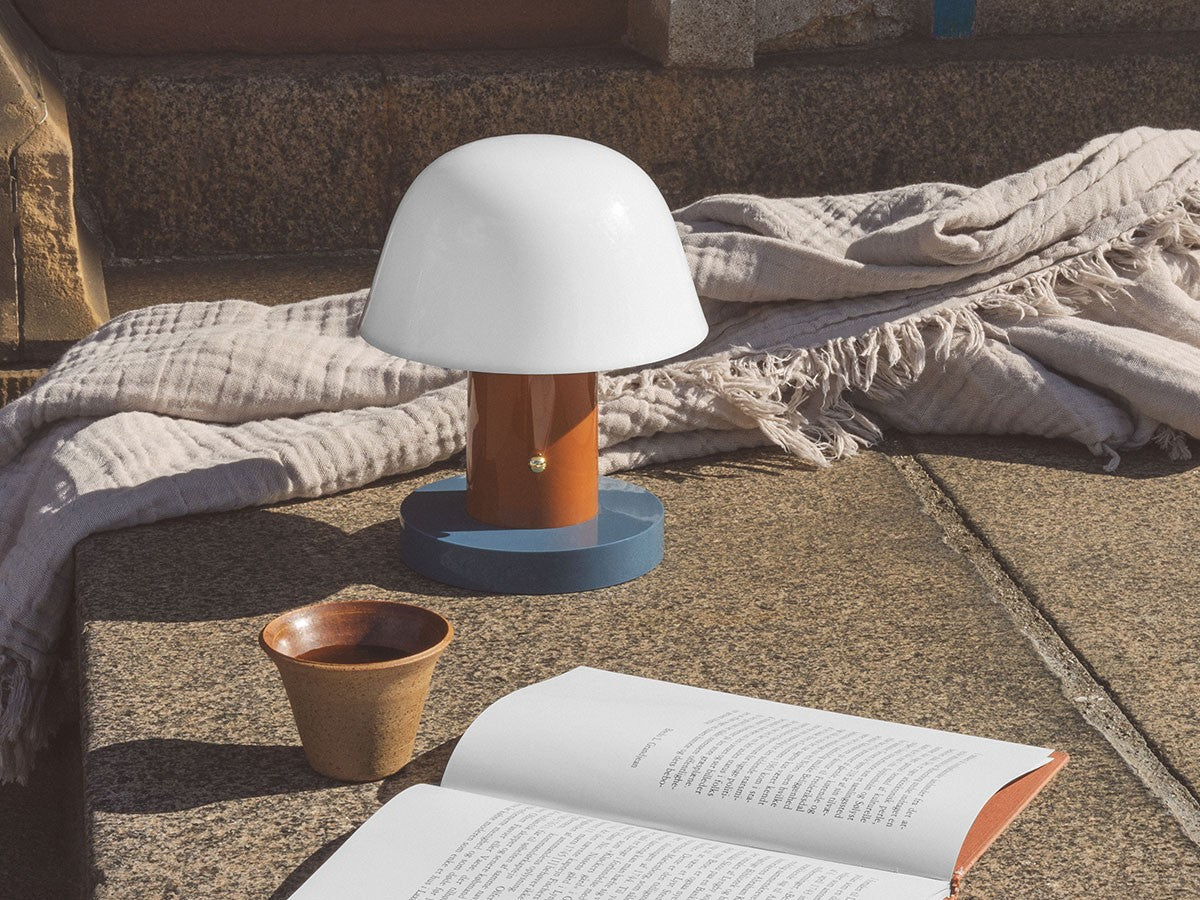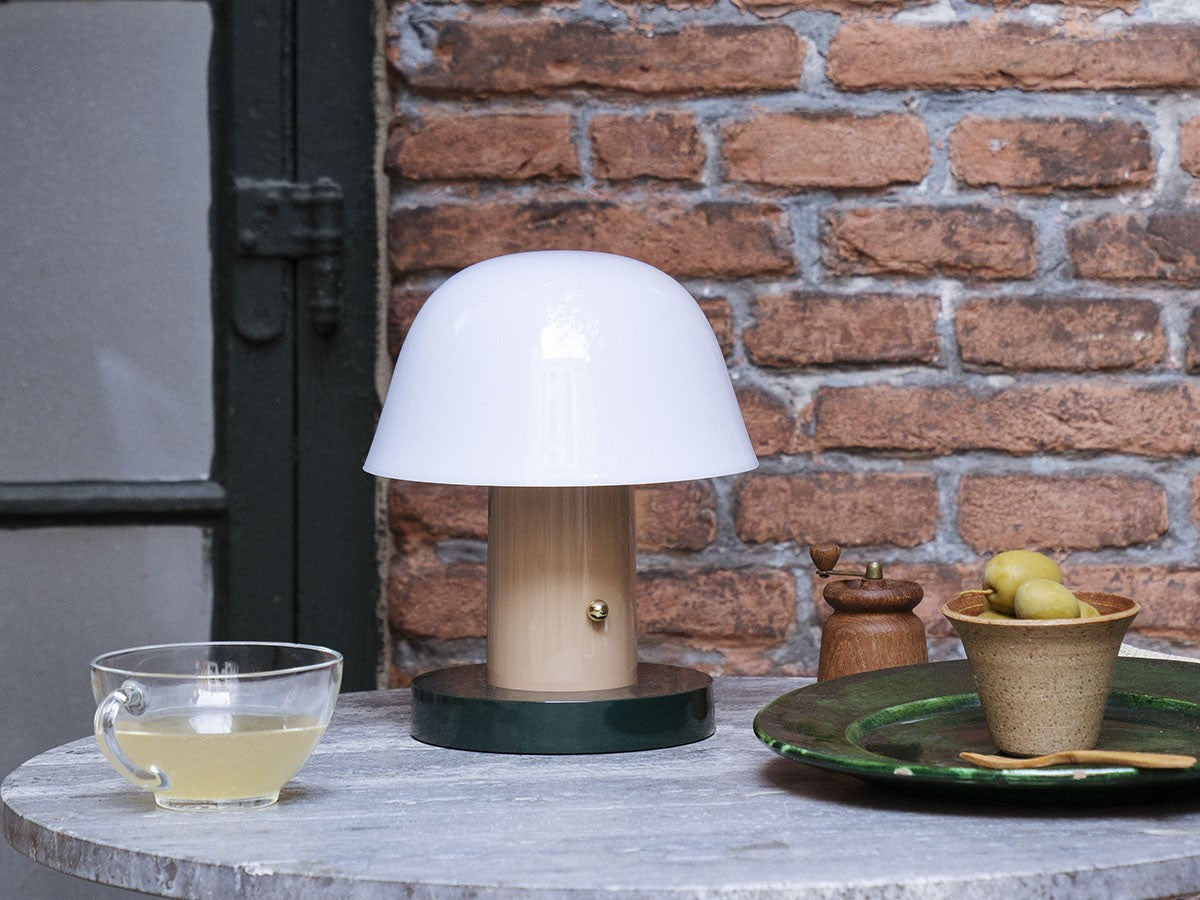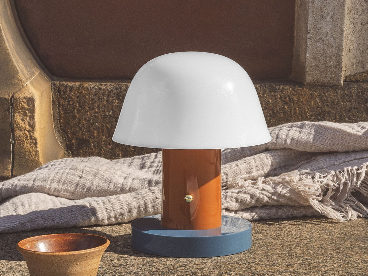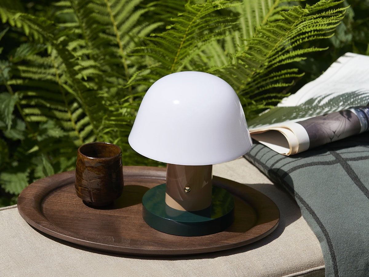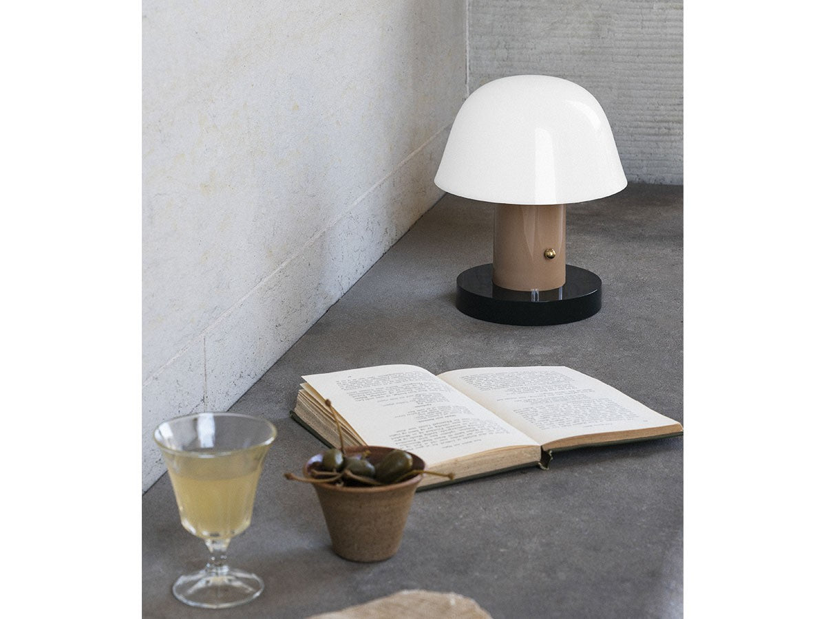 アート、デザイン、工芸など様々な分野において活躍するスペイン人デザイナー、Jaime Hayon(ハイメ・アジョン)による、風変わりなキノコのようなプロポーションをしたポータブルライト。「Seta」はスペイン語でキノコを意味し、「go」はどこにでも移動できる、この照明のコードレス構造を意味しています。シェードに施されたスタイリッシュな上向きのカーブや真鍮の調光スイッチが特徴的なデザインです。USB充電式のポータブルライトなので、ダイニングやリビング、寝室など、自由に持ち運んでお使いいただけます。シェルフの中などコードを通せない場所でのディスプレイも可能です。また、シーンに応じて3段階で調光できます。