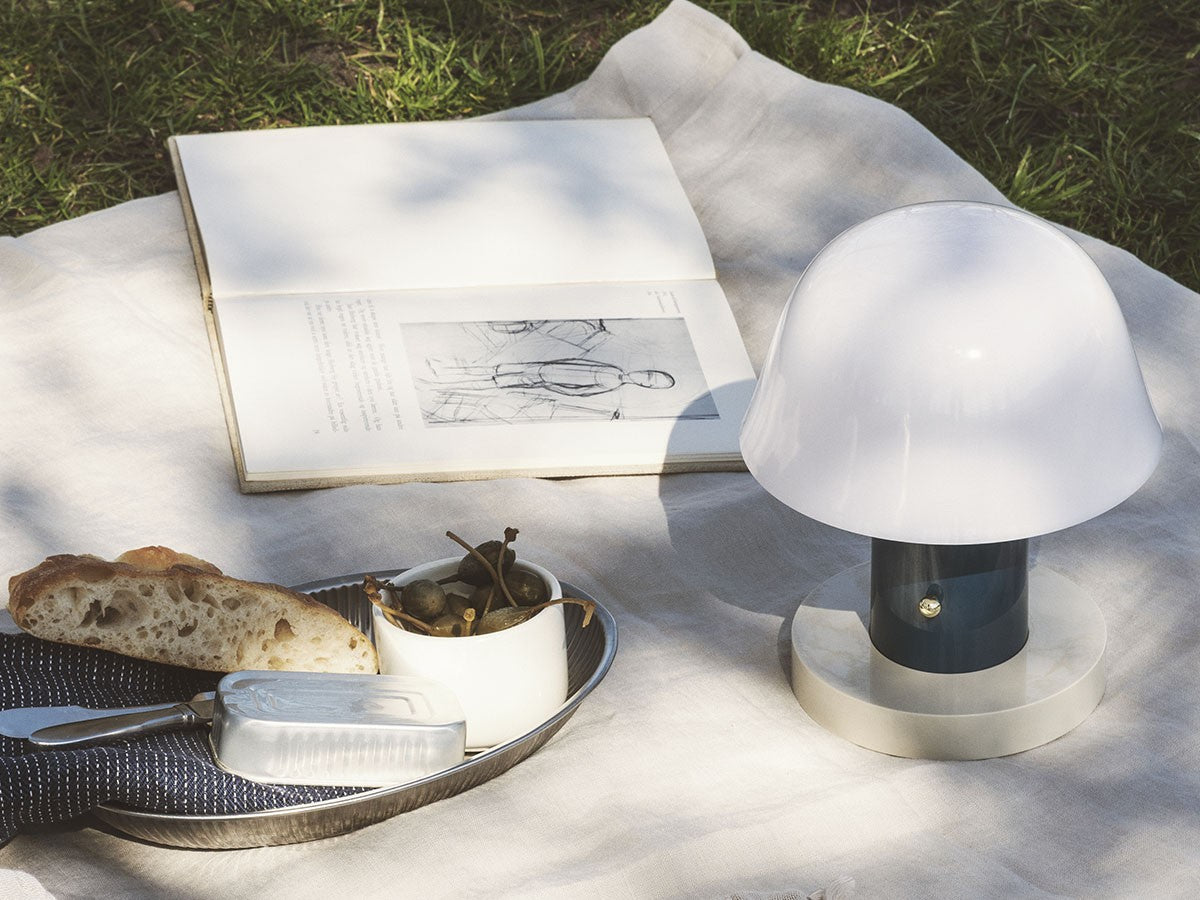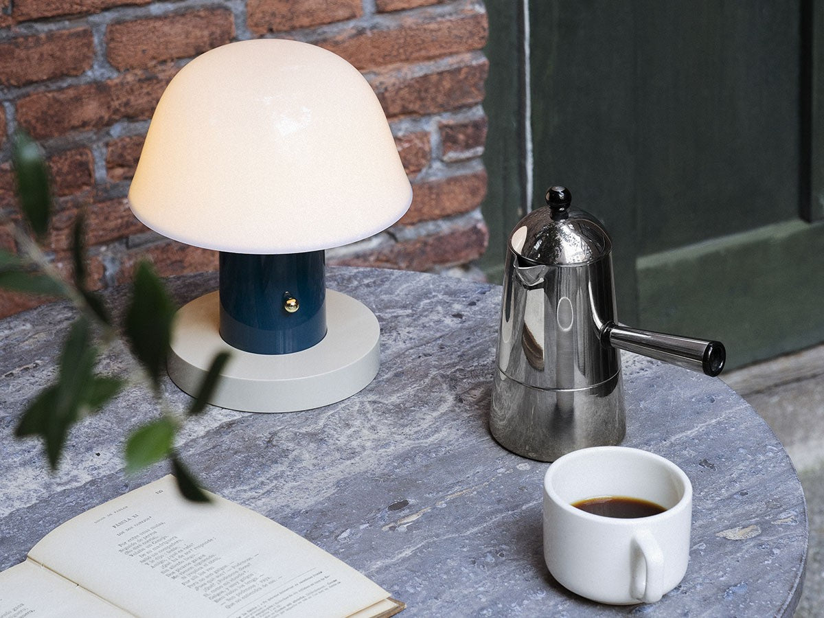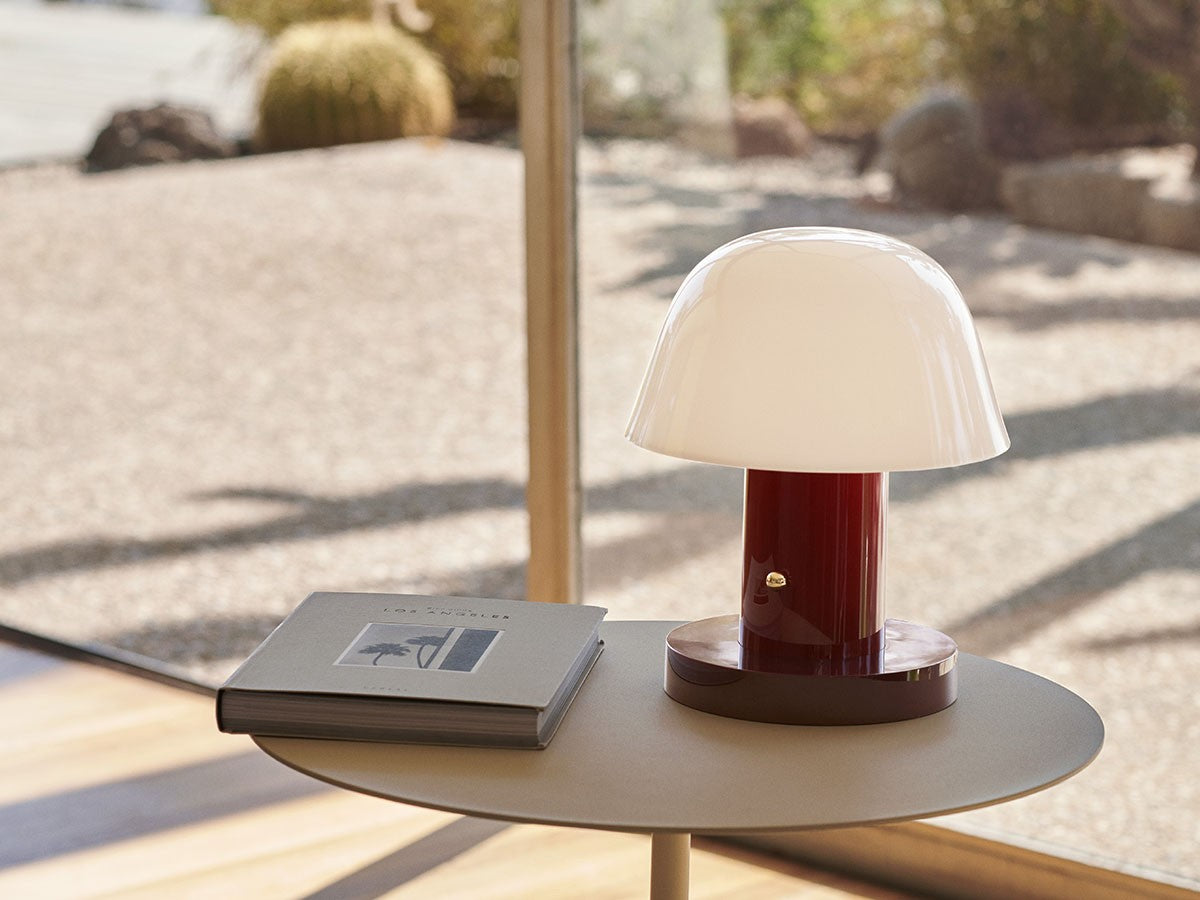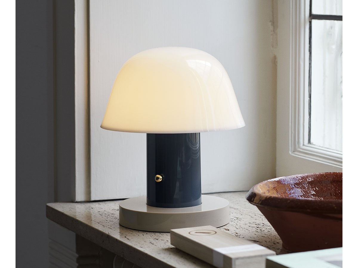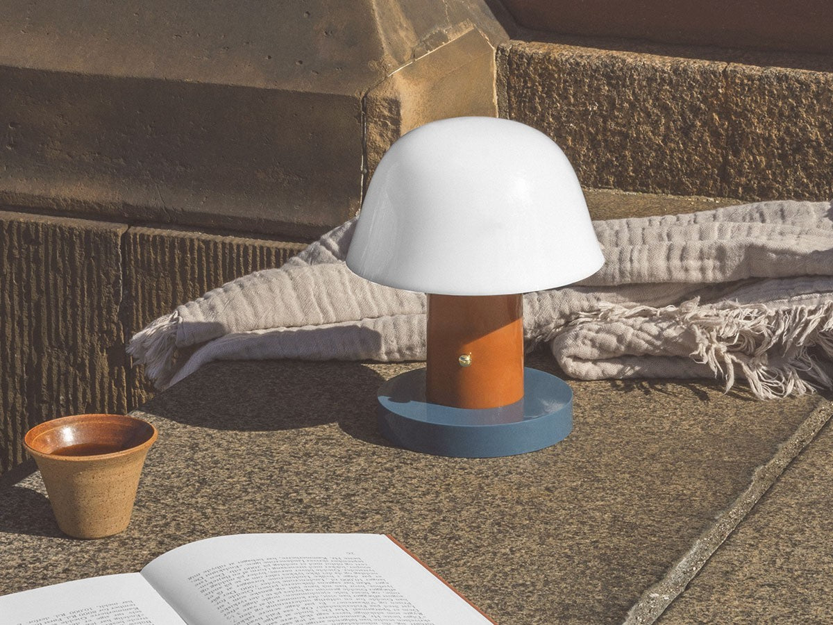 アート、デザイン、工芸など様々な分野において活躍するスペイン人デザイナー、Jaime Hayon(ハイメ・アジョン)による、風変わりなキノコのようなプロポーションをしたポータブルライト。「Seta」はスペイン語でキノコを意味し、「go」はどこにでも移動できる、この照明のコードレス構造を意味しています。シェードに施されたスタイリッシュな上向きのカーブや真鍮の調光スイッチが特徴的なデザインです。USB充電式のポータブルライトなので、ダイニングやリビング、寝室など、自由に持ち運んでお使いいただけます。シェルフの中などコードを通せない場所でのディスプレイも可能です。また、シーンに応じて3段階で調光できます。