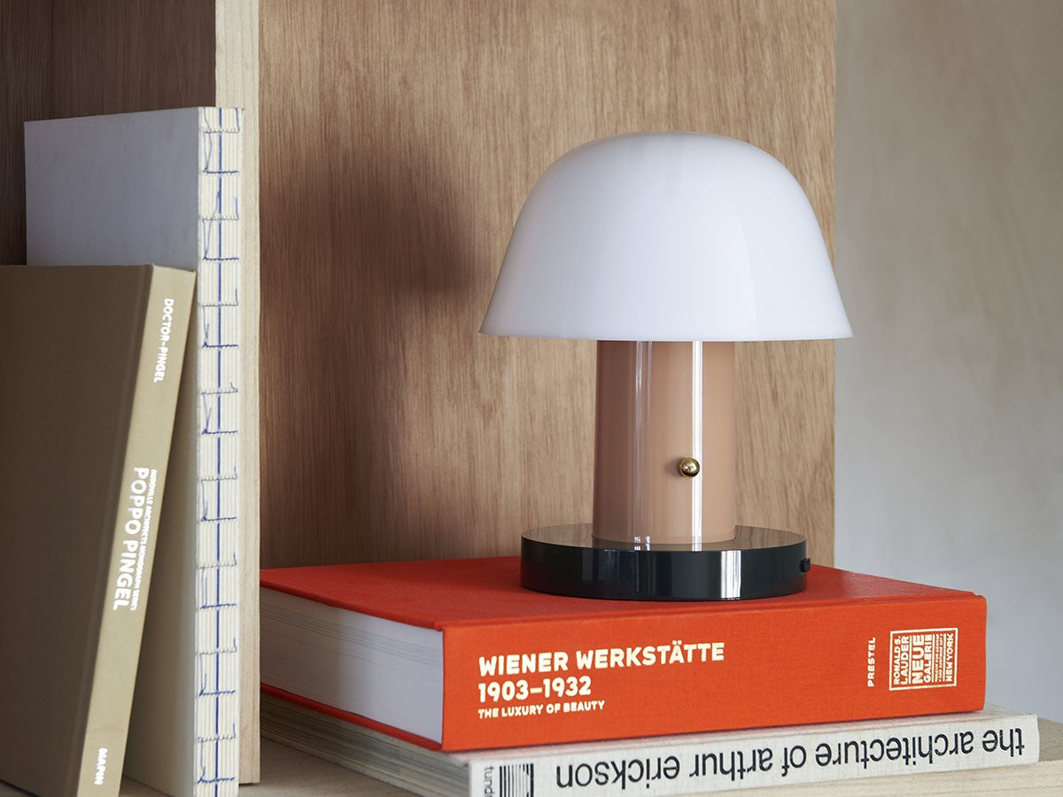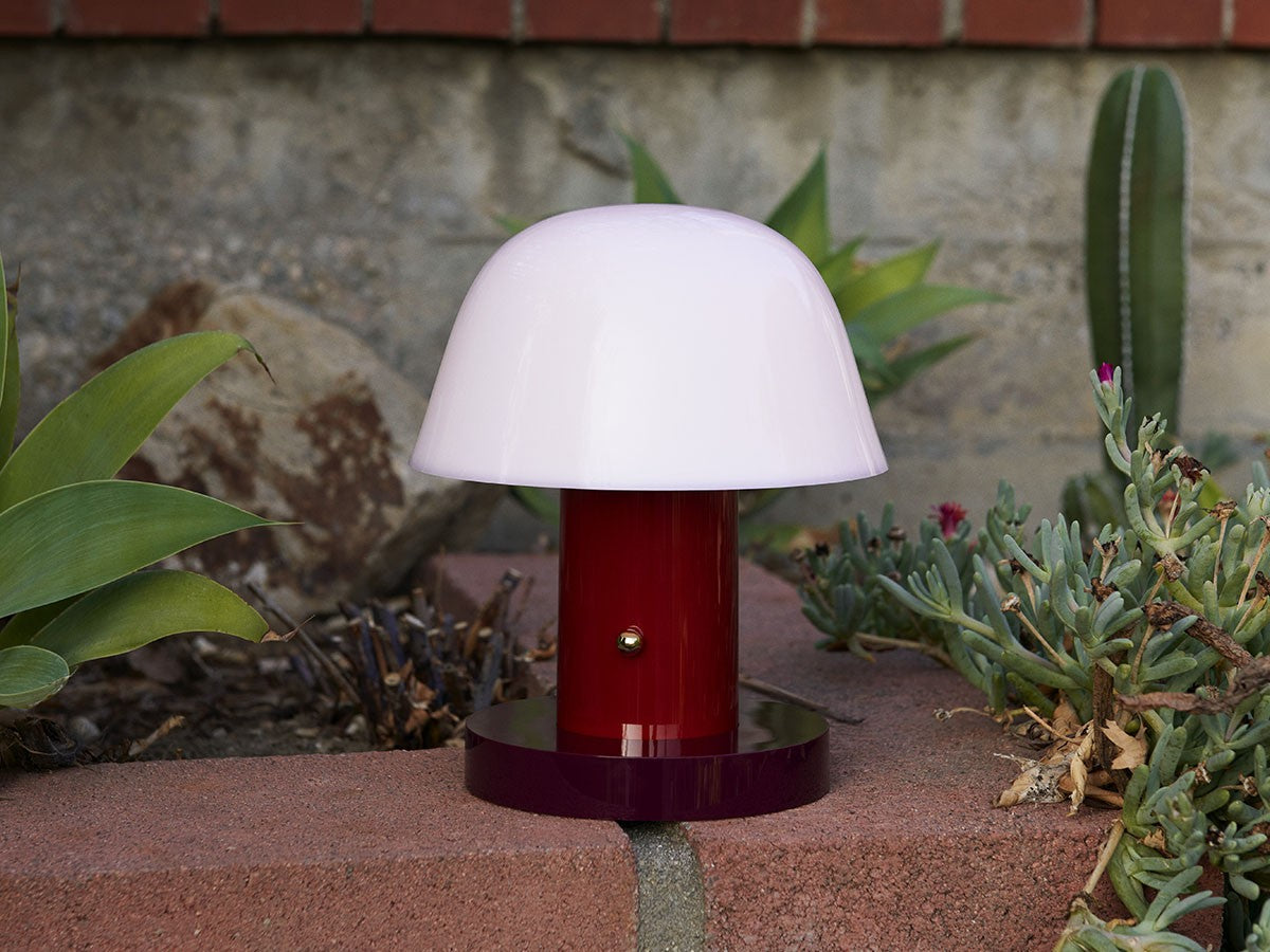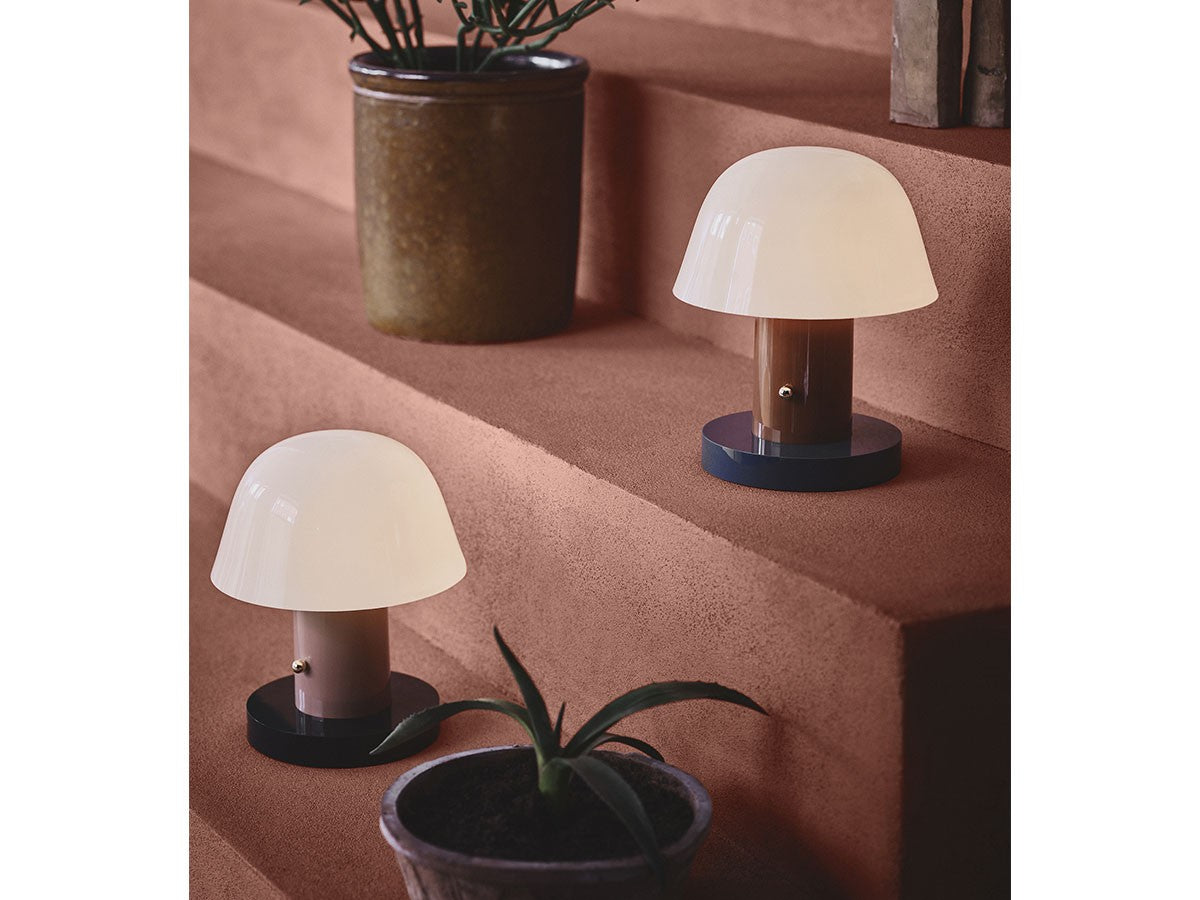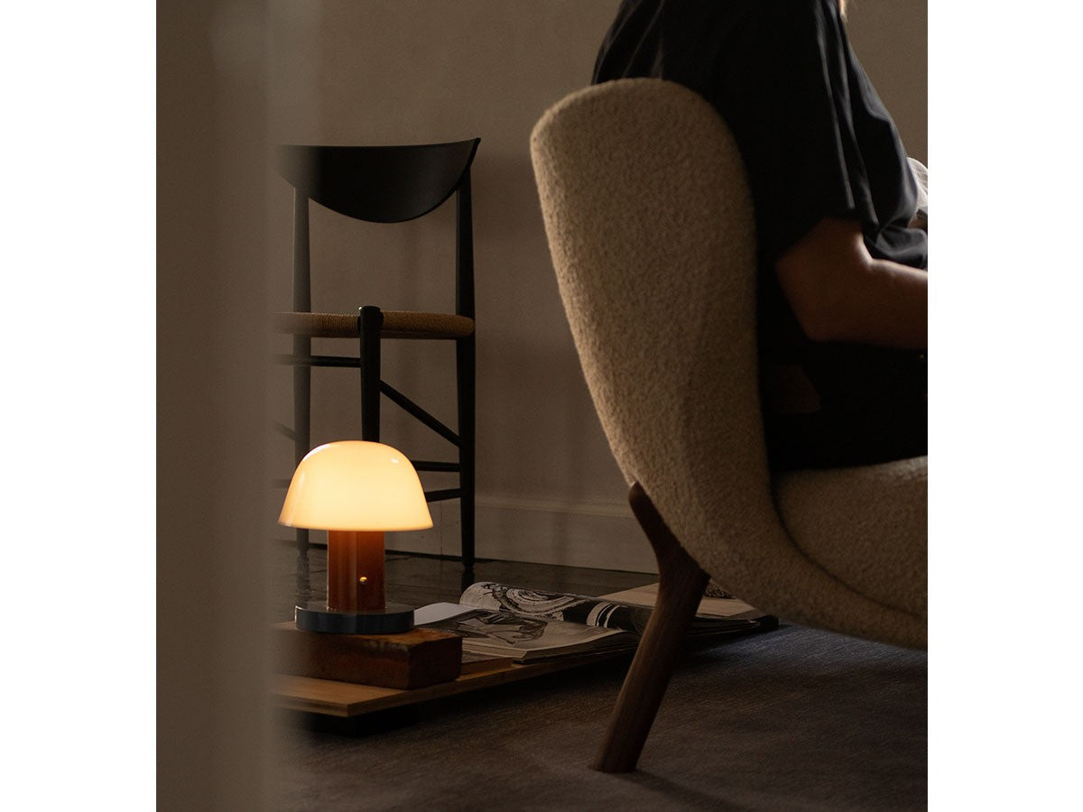 アート、デザイン、工芸など様々な分野において活躍するスペイン人デザイナー、Jaime Hayon(ハイメ・アジョン)による、風変わりなキノコのようなプロポーションをしたポータブルライト。「Seta」はスペイン語でキノコを意味し、「go」はどこにでも移動できる、この照明のコードレス構造を意味しています。シェードに施されたスタイリッシュな上向きのカーブや真鍮の調光スイッチが特徴的なデザインです。USB充電式のポータブルライトなので、ダイニングやリビング、寝室など、自由に持ち運んでお使いいただけます。シェルフの中などコードを通せない場所でのディスプレイも可能です。また、シーンに応じて3段階で調光できます。