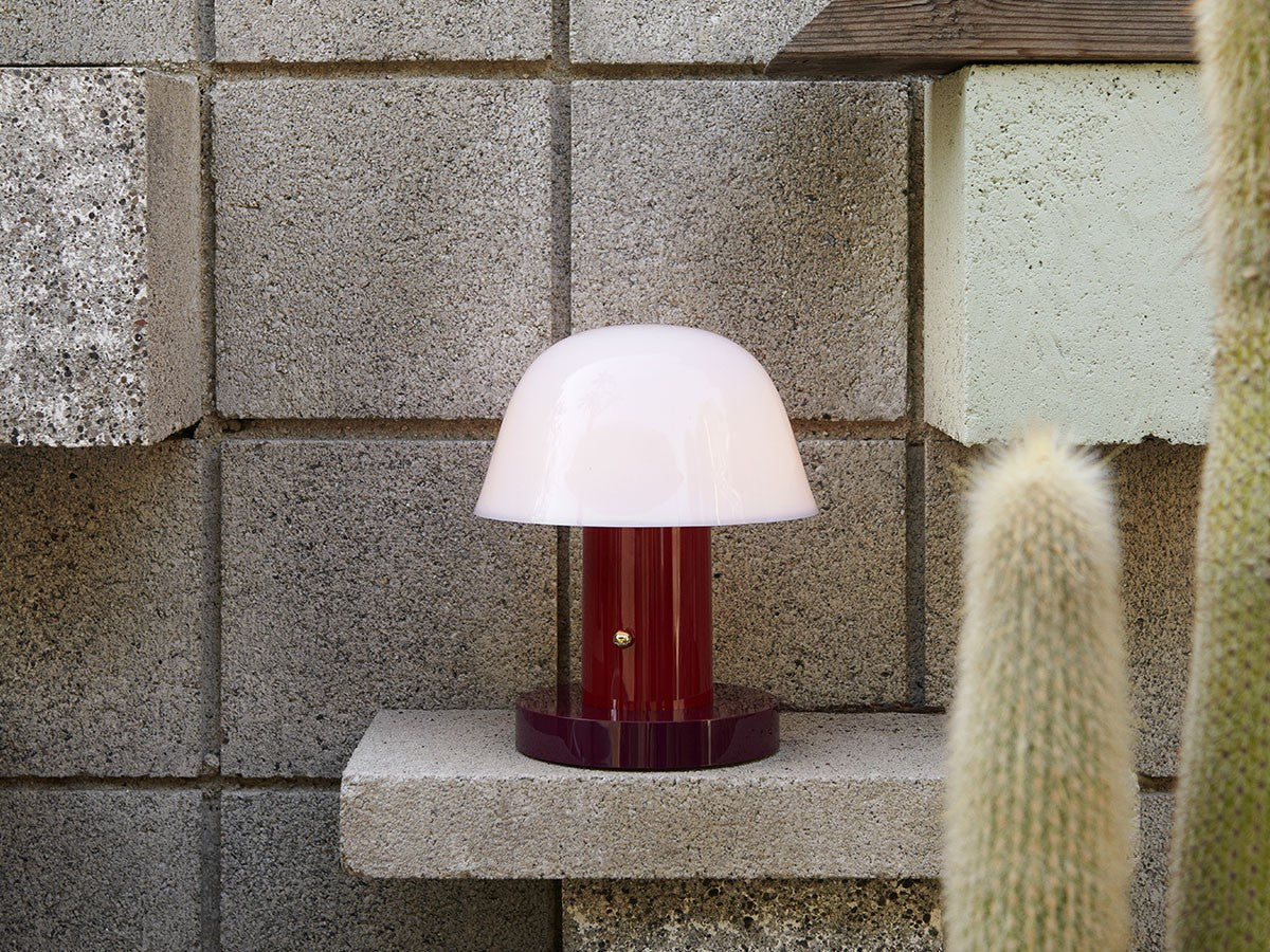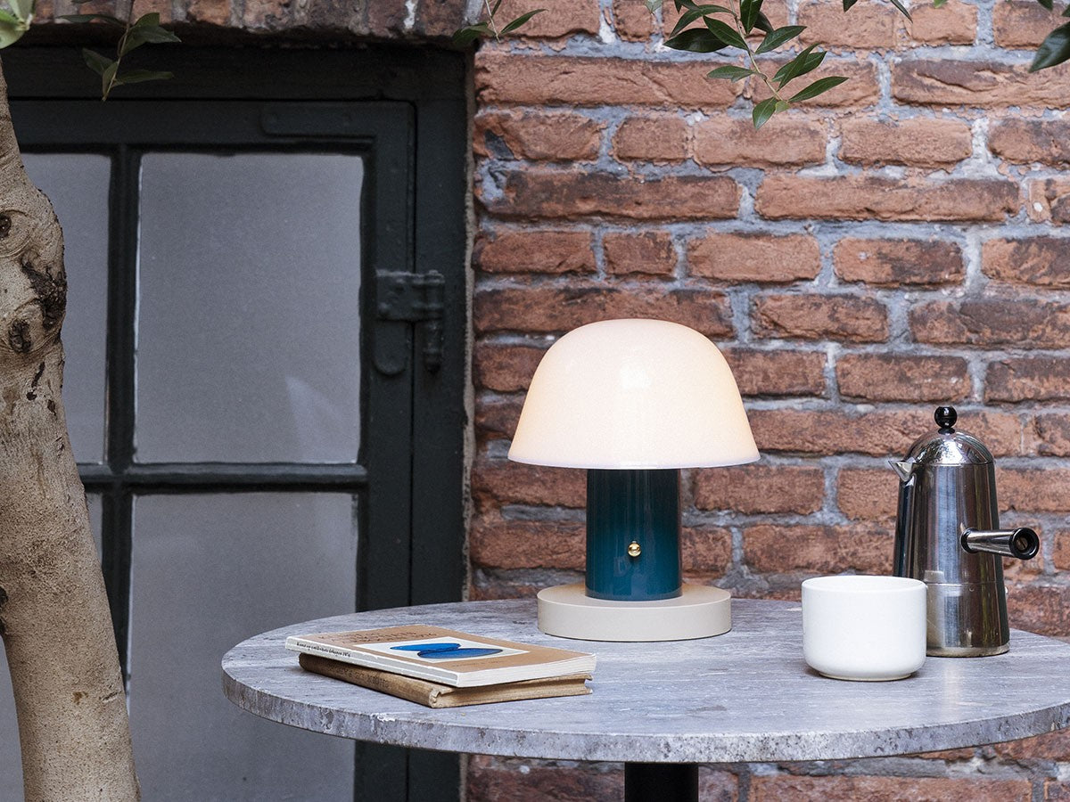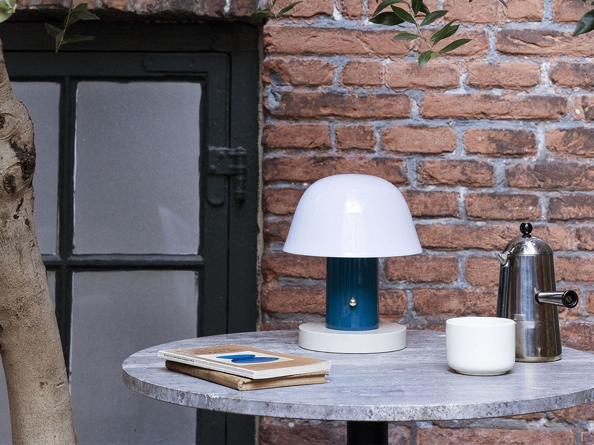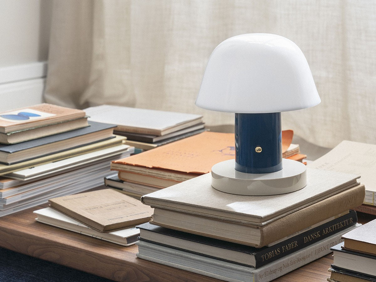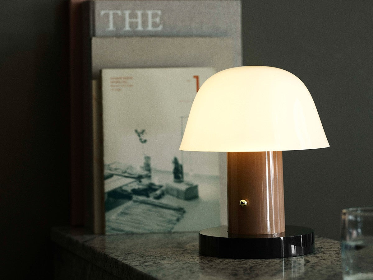 アート、デザイン、工芸など様々な分野において活躍するスペイン人デザイナー、Jaime Hayon(ハイメ・アジョン)による、風変わりなキノコのようなプロポーションをしたポータブルライト。「Seta」はスペイン語でキノコを意味し、「go」はどこにでも移動できる、この照明のコードレス構造を意味しています。シェードに施されたスタイリッシュな上向きのカーブや真鍮の調光スイッチが特徴的なデザインです。USB充電式のポータブルライトなので、ダイニングやリビング、寝室など、自由に持ち運んでお使いいただけます。シェルフの中などコードを通せない場所でのディスプレイも可能です。また、シーンに応じて3段階で調光できます。