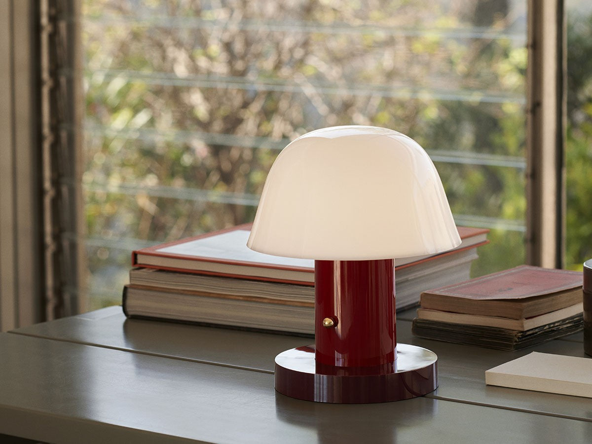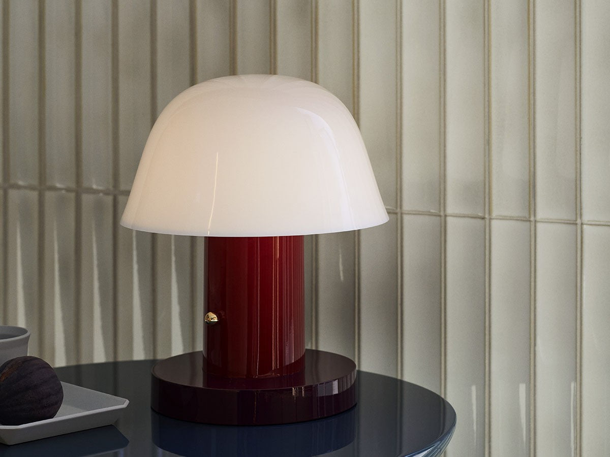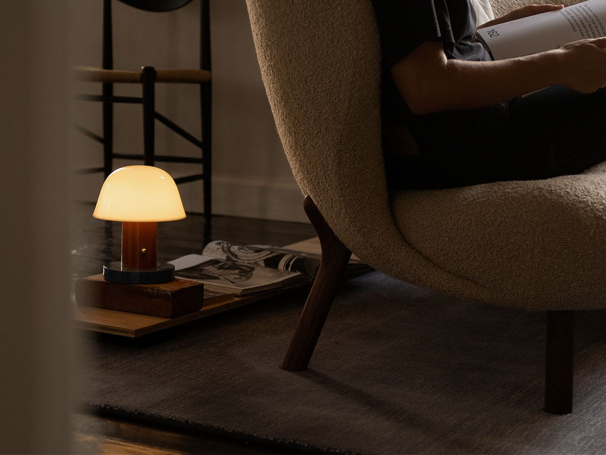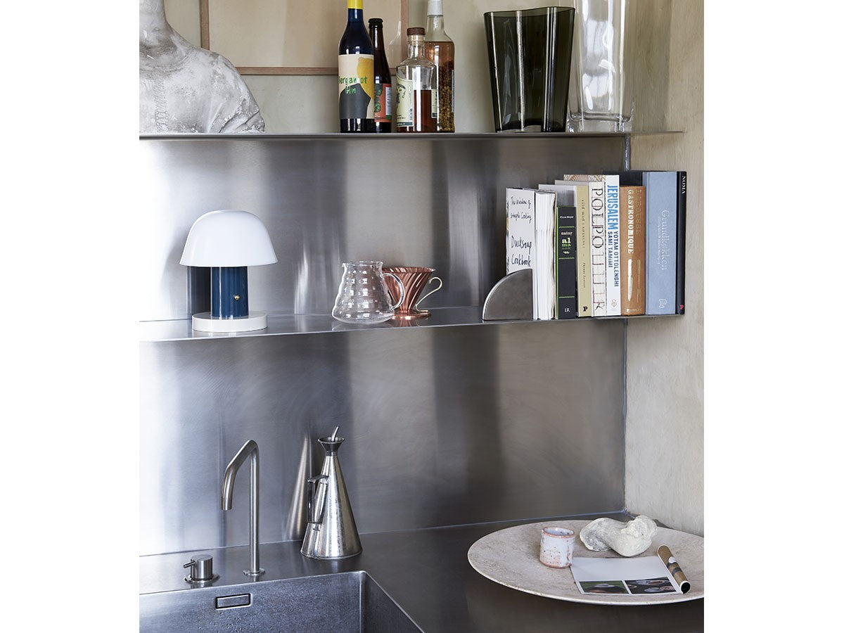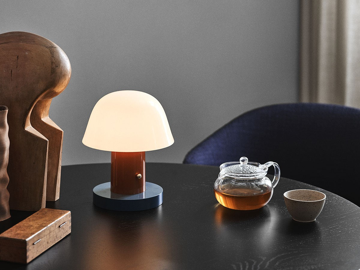 アート、デザイン、工芸など様々な分野において活躍するスペイン人デザイナー、Jaime Hayon(ハイメ・アジョン)による、風変わりなキノコのようなプロポーションをしたポータブルライト。「Seta」はスペイン語でキノコを意味し、「go」はどこにでも移動できる、この照明のコードレス構造を意味しています。シェードに施されたスタイリッシュな上向きのカーブや真鍮の調光スイッチが特徴的なデザインです。USB充電式のポータブルライトなので、ダイニングやリビング、寝室など、自由に持ち運んでお使いいただけます。シェルフの中などコードを通せない場所でのディスプレイも可能です。また、シーンに応じて3段階で調光できます。