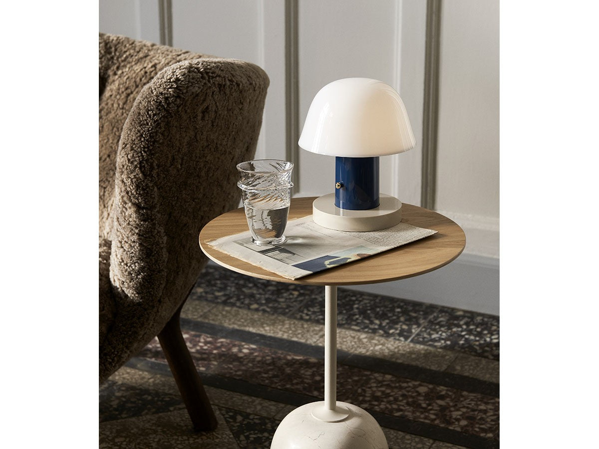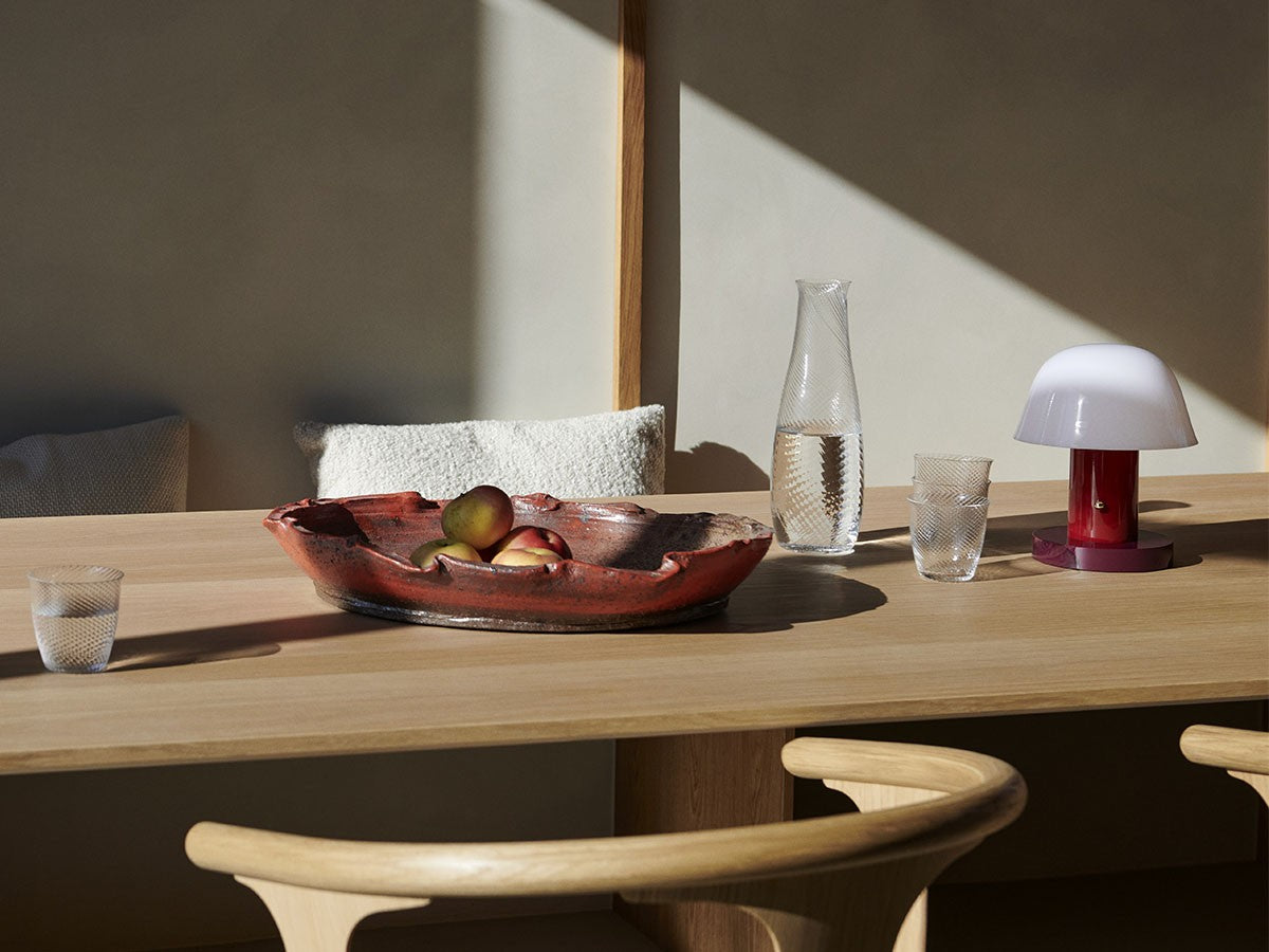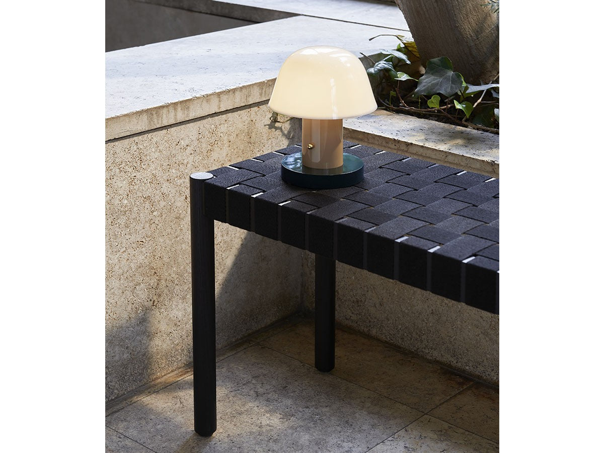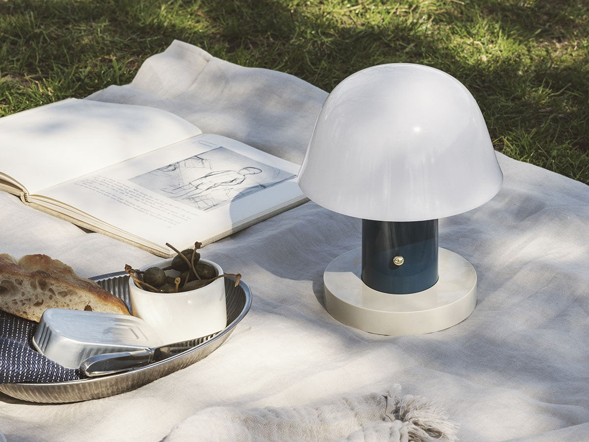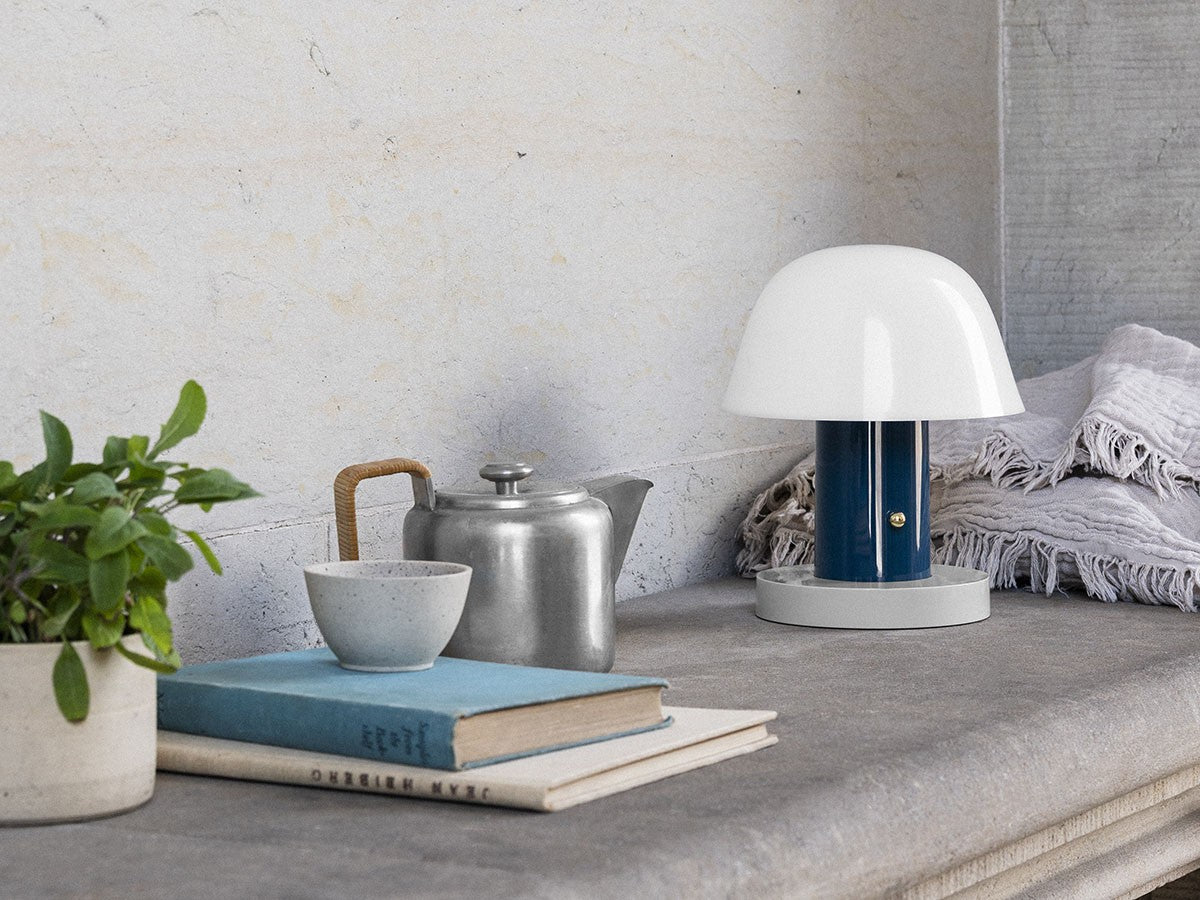 アート、デザイン、工芸など様々な分野において活躍するスペイン人デザイナー、Jaime Hayon(ハイメ・アジョン)による、風変わりなキノコのようなプロポーションをしたポータブルライト。「Seta」はスペイン語でキノコを意味し、「go」はどこにでも移動できる、この照明のコードレス構造を意味しています。シェードに施されたスタイリッシュな上向きのカーブや真鍮の調光スイッチが特徴的なデザインです。USB充電式のポータブルライトなので、ダイニングやリビング、寝室など、自由に持ち運んでお使いいただけます。シェルフの中などコードを通せない場所でのディスプレイも可能です。また、シーンに応じて3段階で調光できます。