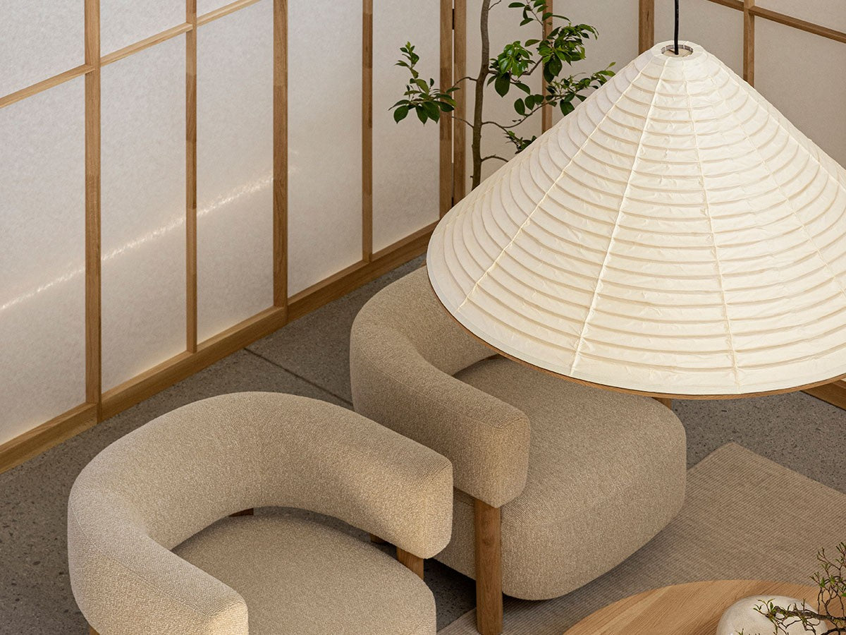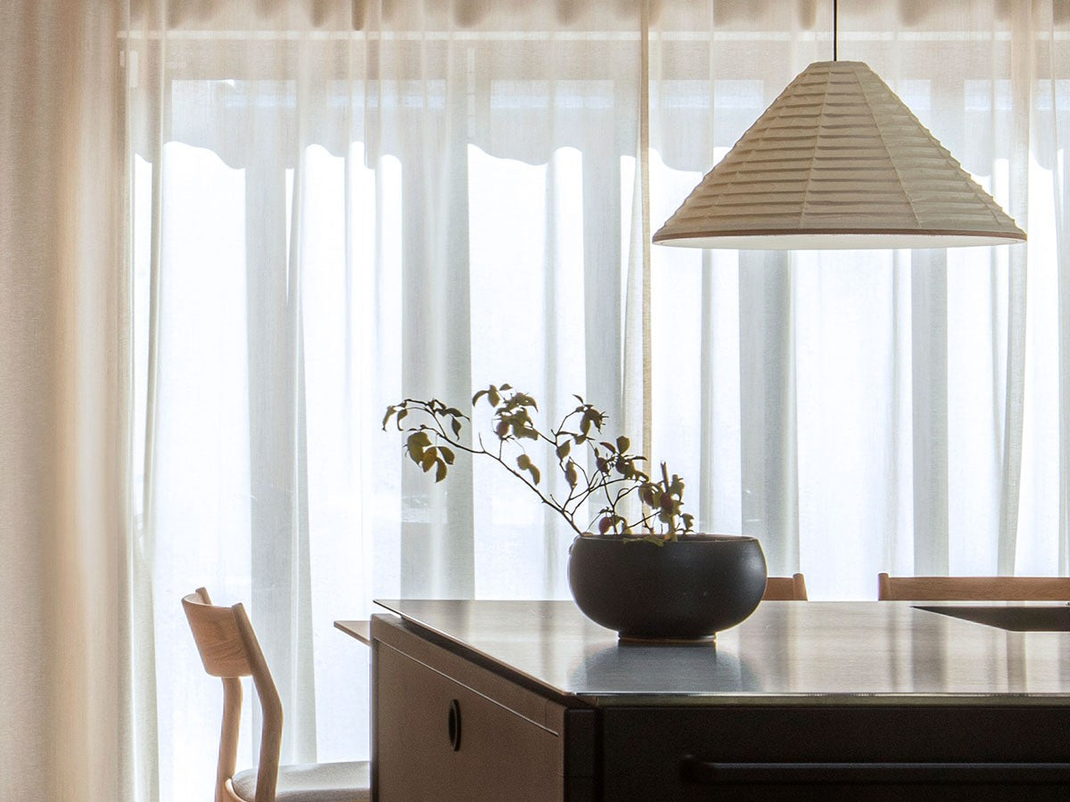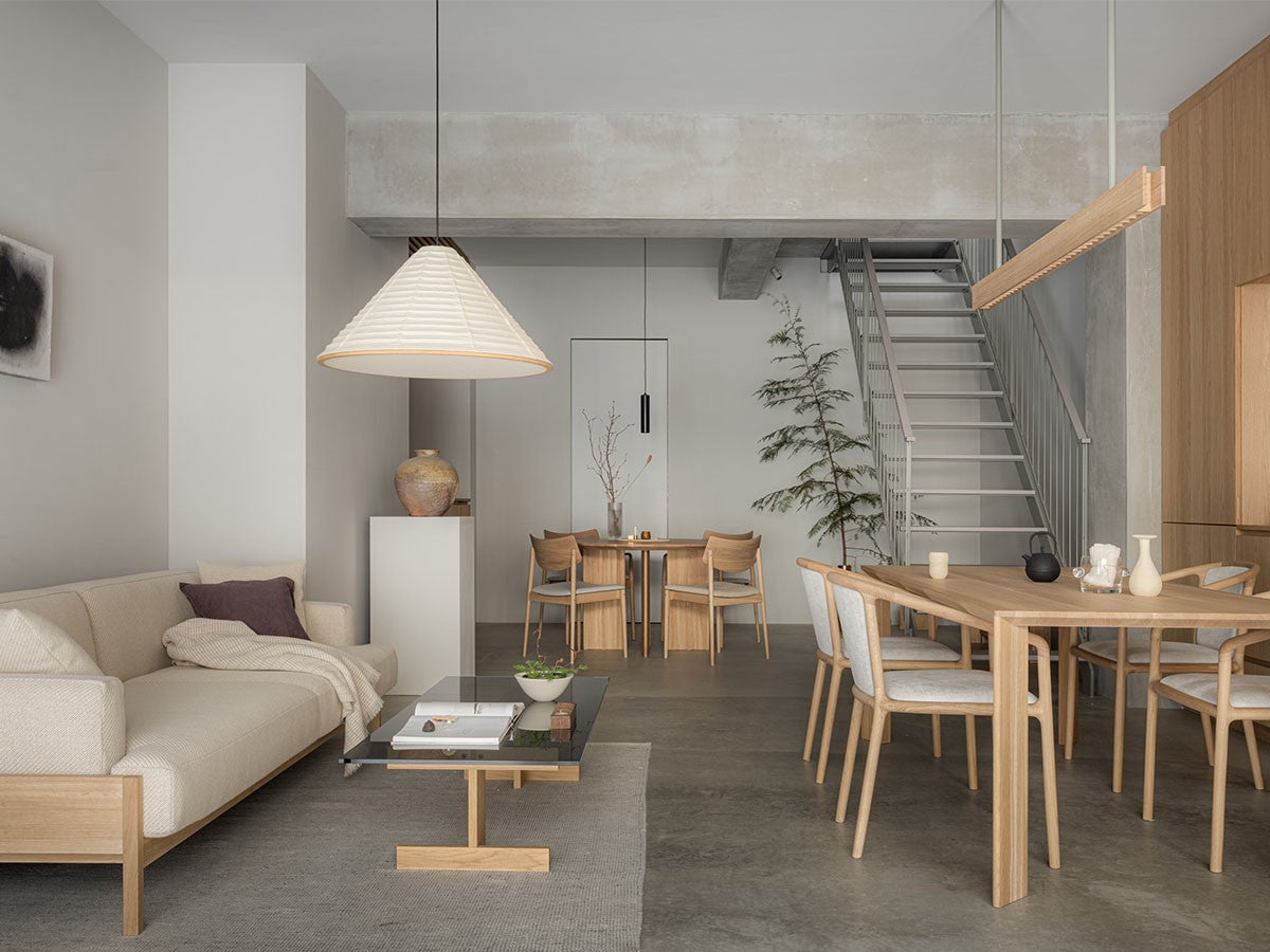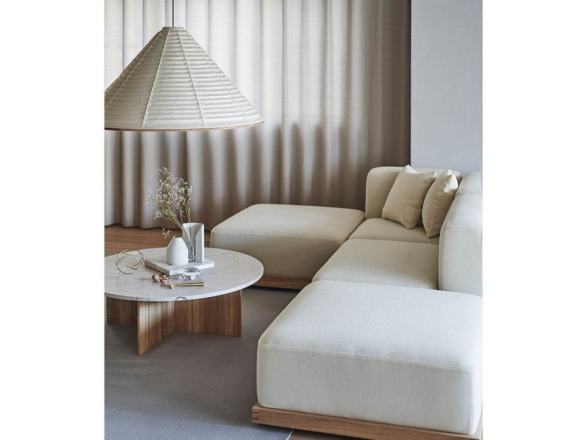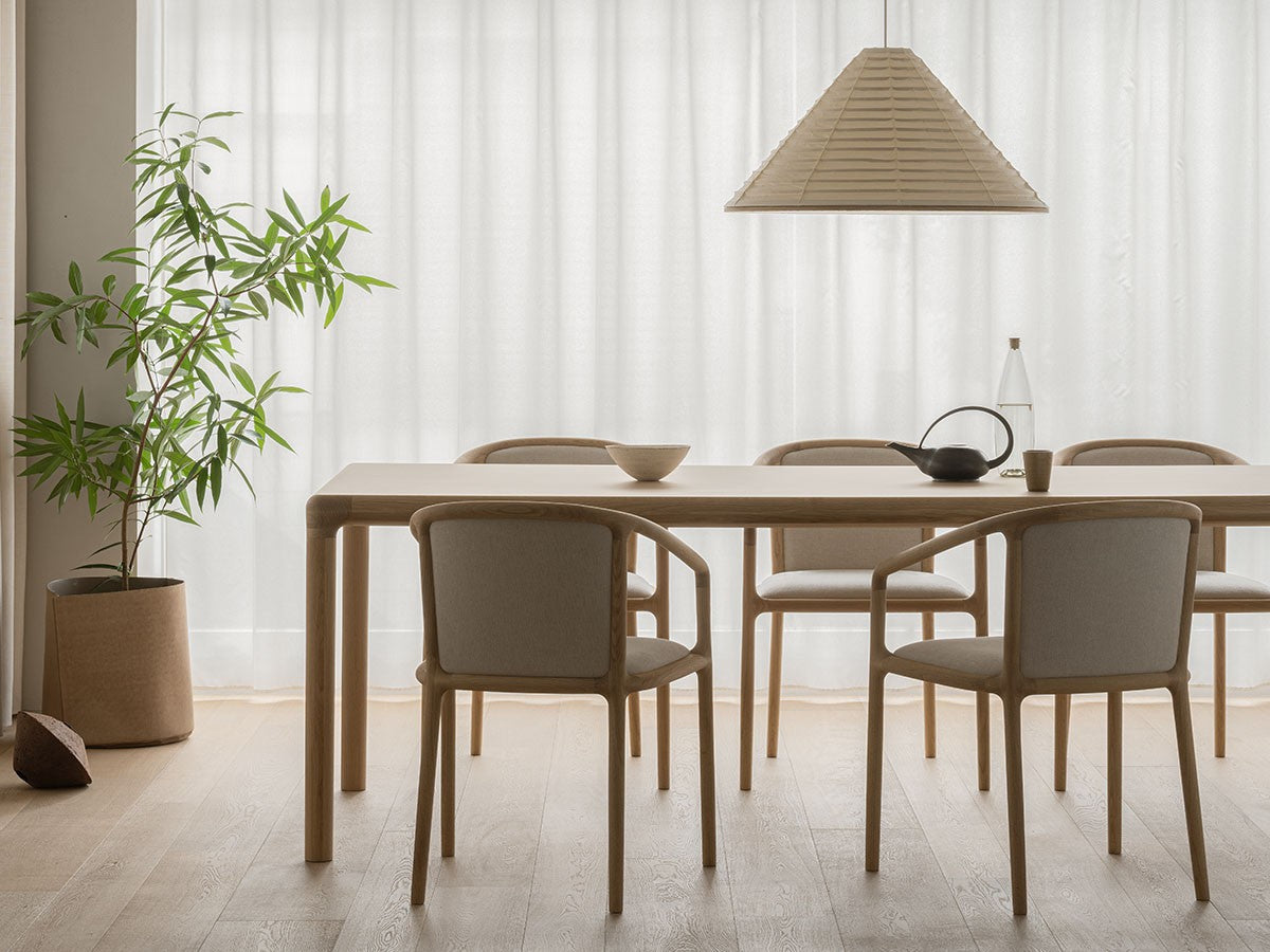 スウェーデンの海岸線沿いに立つ、アーキペラゴハウスの頂点の三角形の屋根構造を模したペンダントライト。照明の底は和紙で覆われており、磁石で固定されているため、電球の交換が必要な場合は簡単に取り外すことができます。底部にはさらにスクリーンとしての機能もあり、光源を隠し、暖かい間接光を生み出します。光は下方向だけでなく、上方向にも横方向にも広がります。ペーパーコードといった細やかなディテールにより、カリモクケースの家具のイメージをさり気なく取り入れています。また、アーキペラゴハウス近くの漁港で見つかったロープやワイヤーにインスピレーションを得ており、海の雰囲気を添えています。THE ARCHIPELAGO HOUSE「アーキペラゴハウスコレクション」は、スウェーデン西部に位置する海岸線にあるサマーハウスに備え付けられることを想定して作られています。このサマーハウスは、家族の生活の全ての側面を包含する近代化された別荘です。デンマークのデザインスタジオ、Norm Architects(ノームアーキテクツ)は、天然素材、落ち着いた色、すっきりとしたラインに重点を置いてサマーハウスを設計しました。ミニマルでありながら、居心地の良い、厳選されたインテリアに仕上げられています。