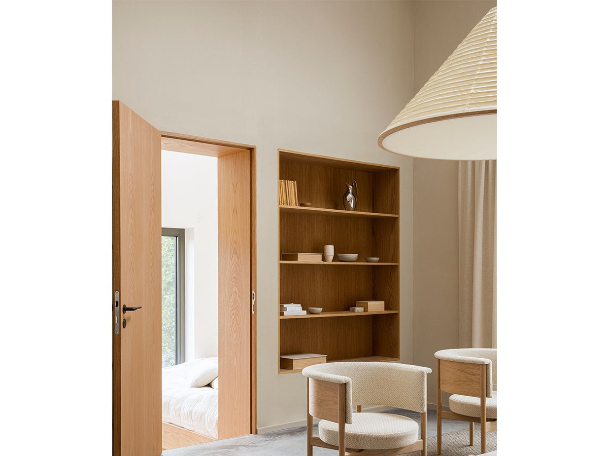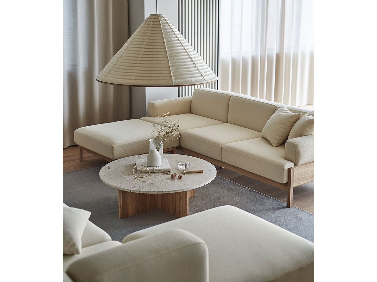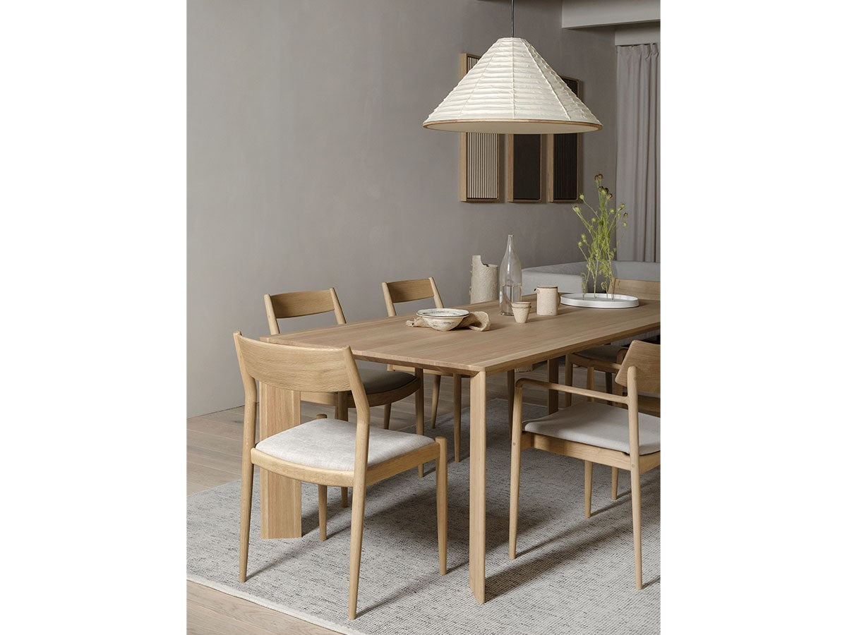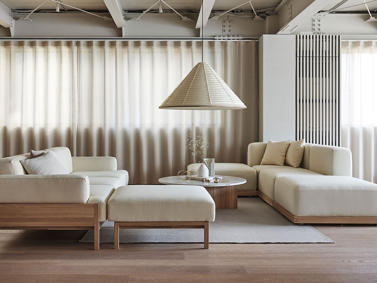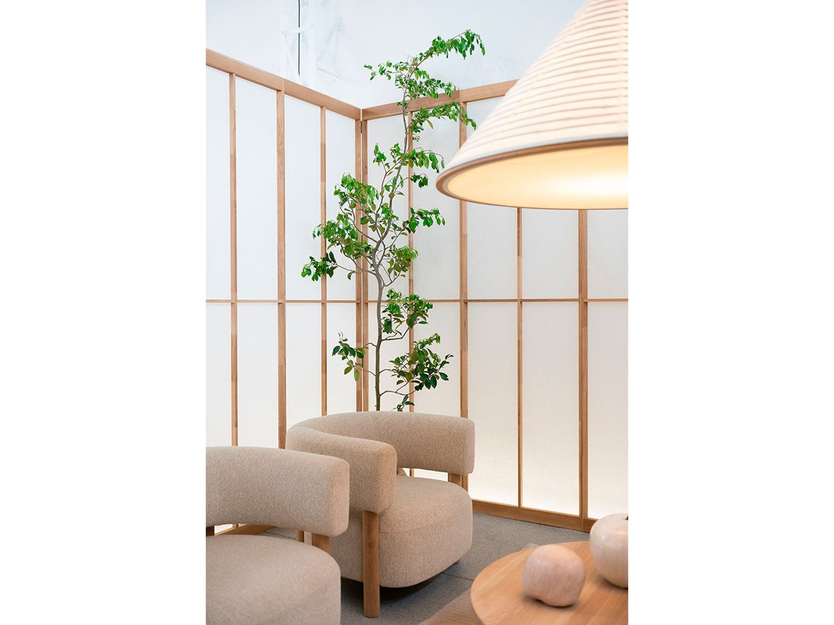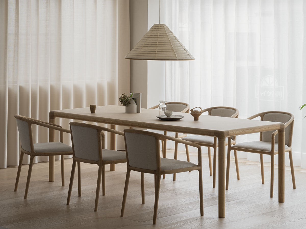 スウェーデンの海岸線沿いに立つ、アーキペラゴハウスの頂点の三角形の屋根構造を模したペンダントライト。照明の底は和紙で覆われており、磁石で固定されているため、電球の交換が必要な場合は簡単に取り外すことができます。底部にはさらにスクリーンとしての機能もあり、光源を隠し、暖かい間接光を生み出します。光は下方向だけでなく、上方向にも横方向にも広がります。ペーパーコードといった細やかなディテールにより、カリモクケースの家具のイメージをさり気なく取り入れています。また、アーキペラゴハウス近くの漁港で見つかったロープやワイヤーにインスピレーションを得ており、海の雰囲気を添えています。THE ARCHIPELAGO HOUSE「アーキペラゴハウスコレクション」は、スウェーデン西部に位置する海岸線にあるサマーハウスに備え付けられることを想定して作られています。このサマーハウスは、家族の生活の全ての側面を包含する近代化された別荘です。デンマークのデザインスタジオ、Norm Architects(ノームアーキテクツ)は、天然素材、落ち着いた色、すっきりとしたラインに重点を置いてサマーハウスを設計しました。ミニマルでありながら、居心地の良い、厳選されたインテリアに仕上げられています。