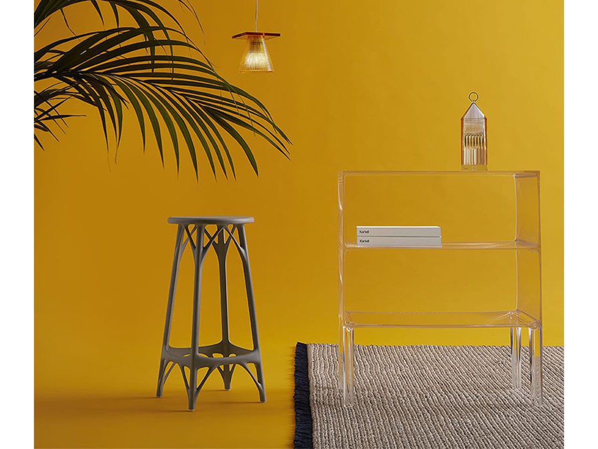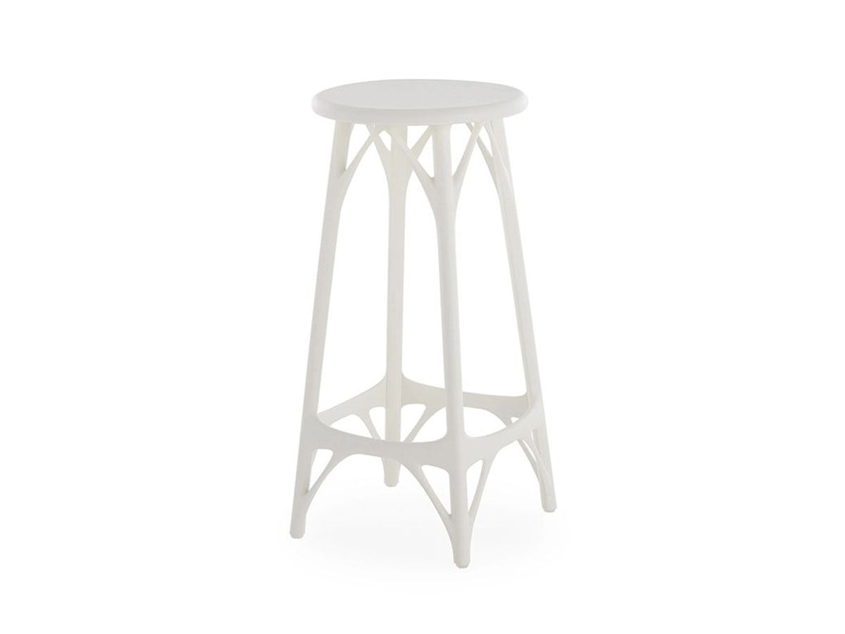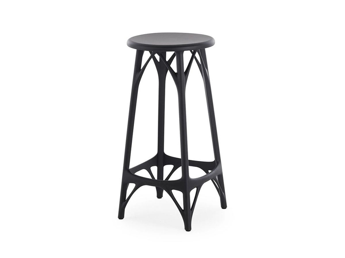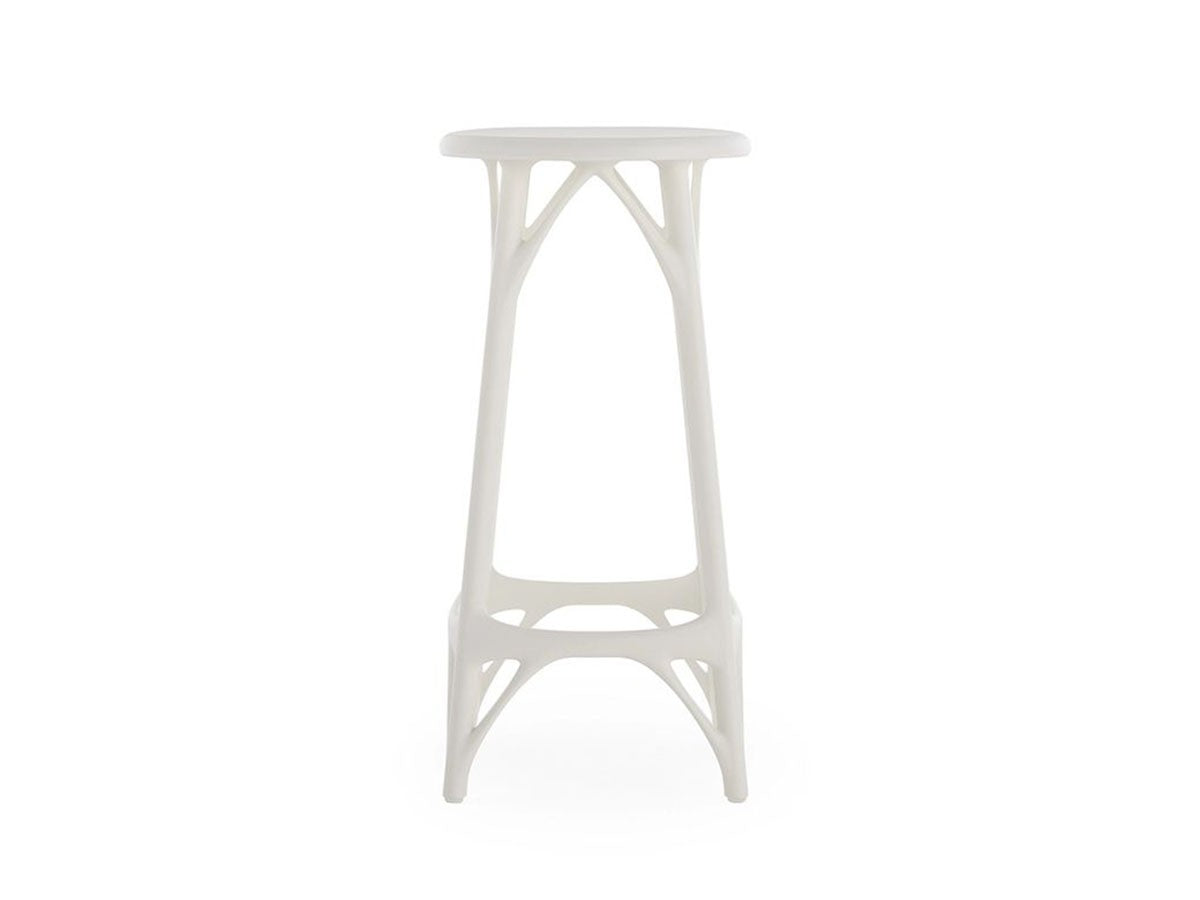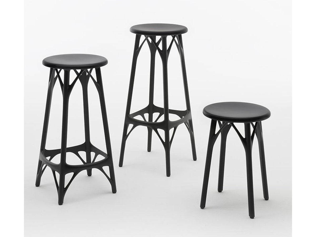 世界的なスターデザイナー、Philippe Starck(フィリップ・スタルク)がこれまでにデザインした椅子のデータをA.I.(人工知能)が学習し、導き出した最適解として制作された椅子のカウンタースツールタイプ。有機的なデザインが特徴で、快適な座り心地と強度を備えながら、材料の使用を最低限に抑えています。素材には再生樹脂が使われており、ソフトな肌触りに仕上げられています。3つの高さ違いのバリエーションがあり、サステナビリティを最大限に高めるために、それら3つのモデルの製造には同じ金型が用いられています。徹底した最適化を図ることで、生産工程においても環境に配慮しています。