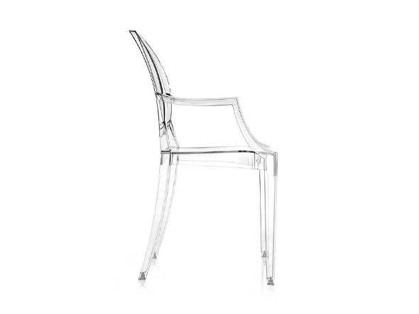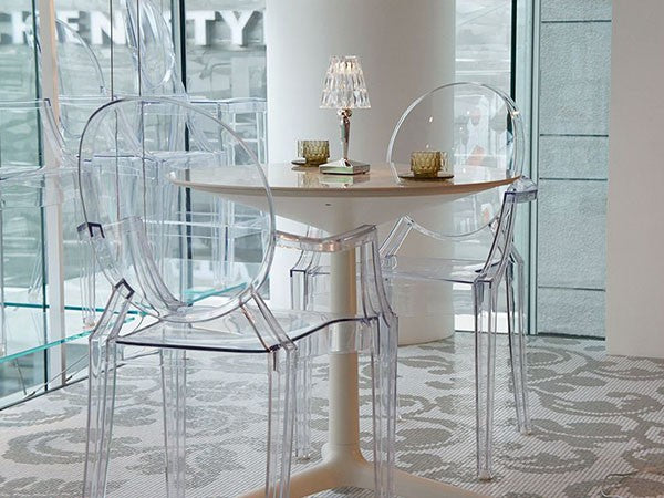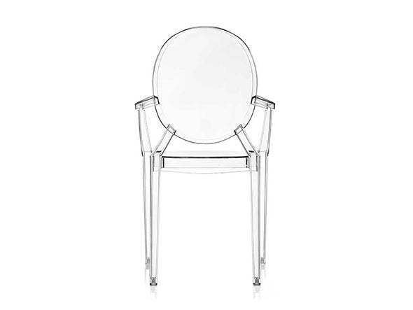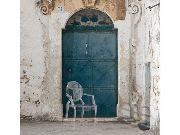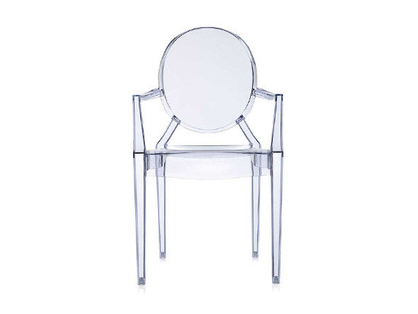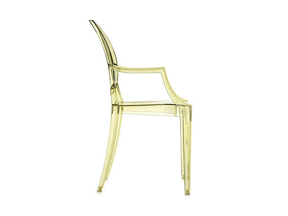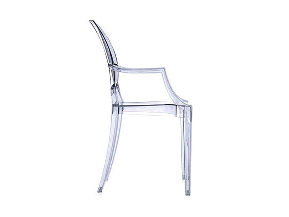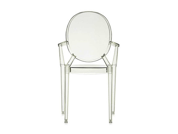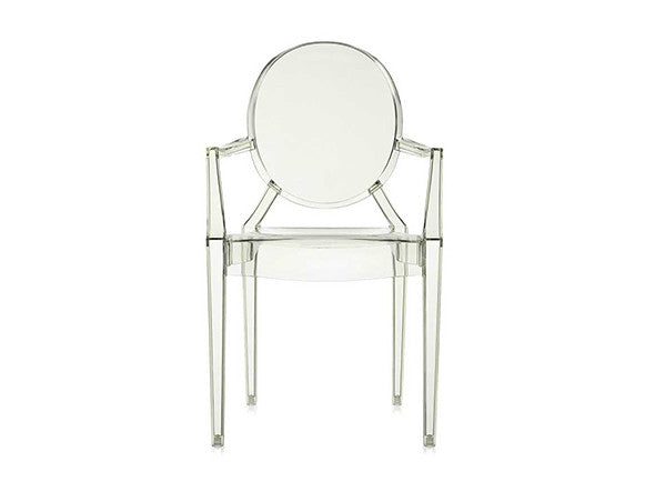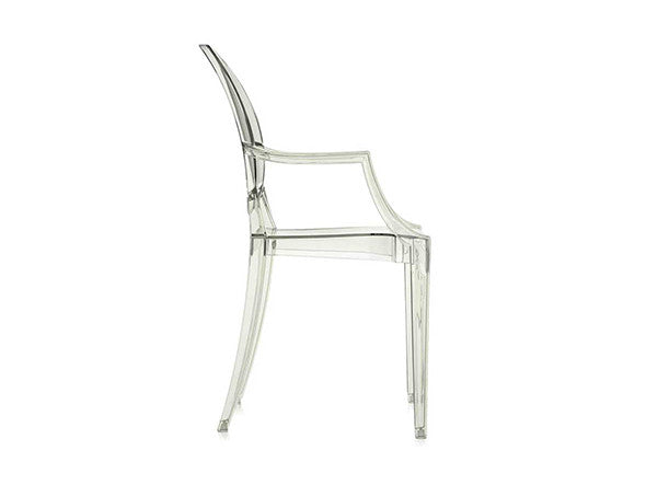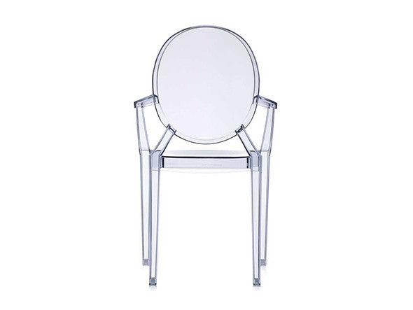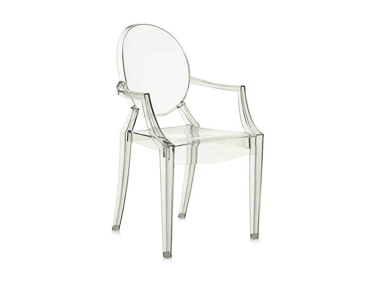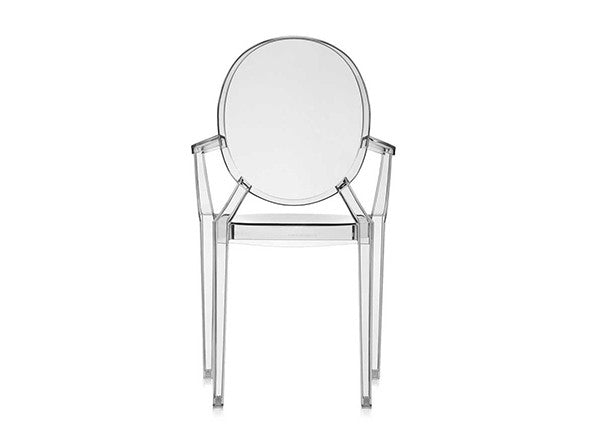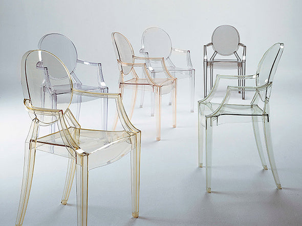 ルイ15世スタイルの椅子をポリカーボネート樹脂でユニークに再現した肘掛けチェア。バロックスタイルを現代風にアレンジすることで新鮮かつ独特な魅力を感じさせます。Kartellのアイコンとも言えるベストセラーモデルです。ルイゴーストはポリカーボネート樹脂を使用した一体型射出成形として世界でも代表的な例で、透明な儚いイメージとは裏腹に安定した耐久性があります。衝撃や傷に強く、屋外での使用も可能。6脚までスタッキングすることができます。