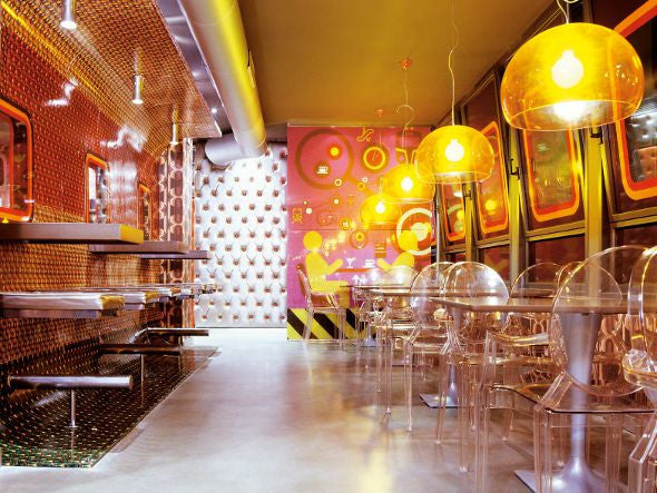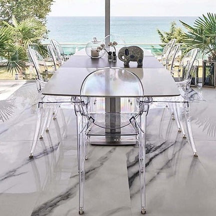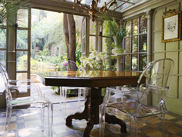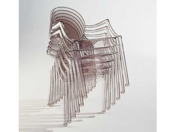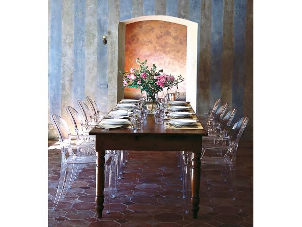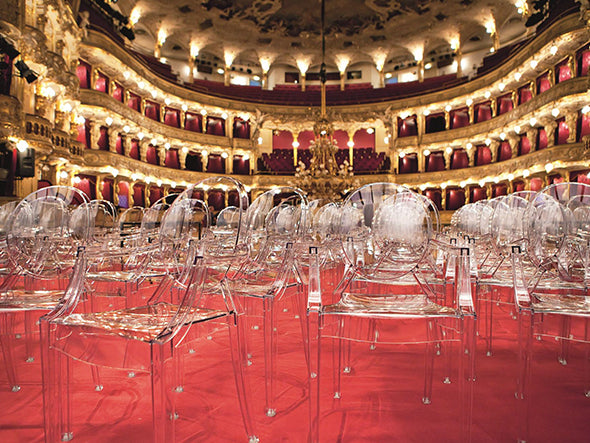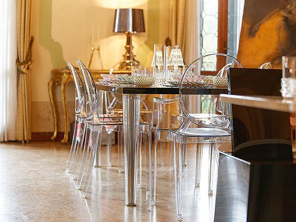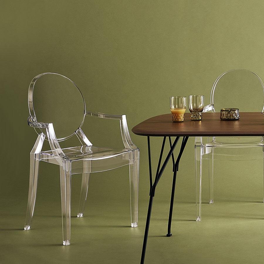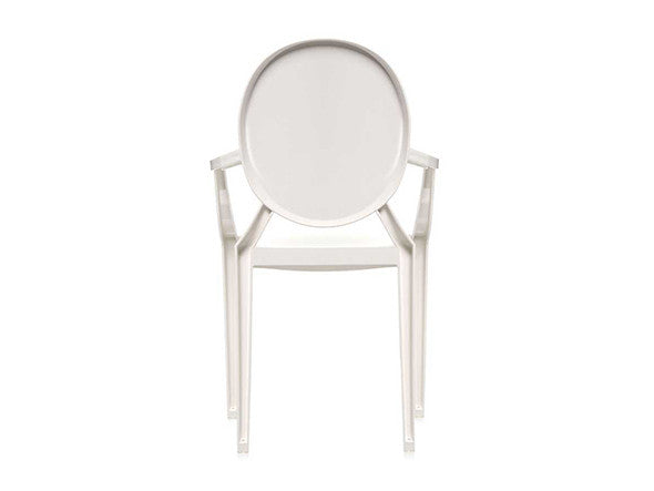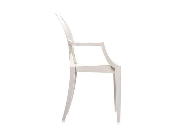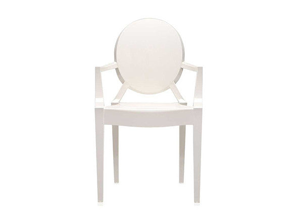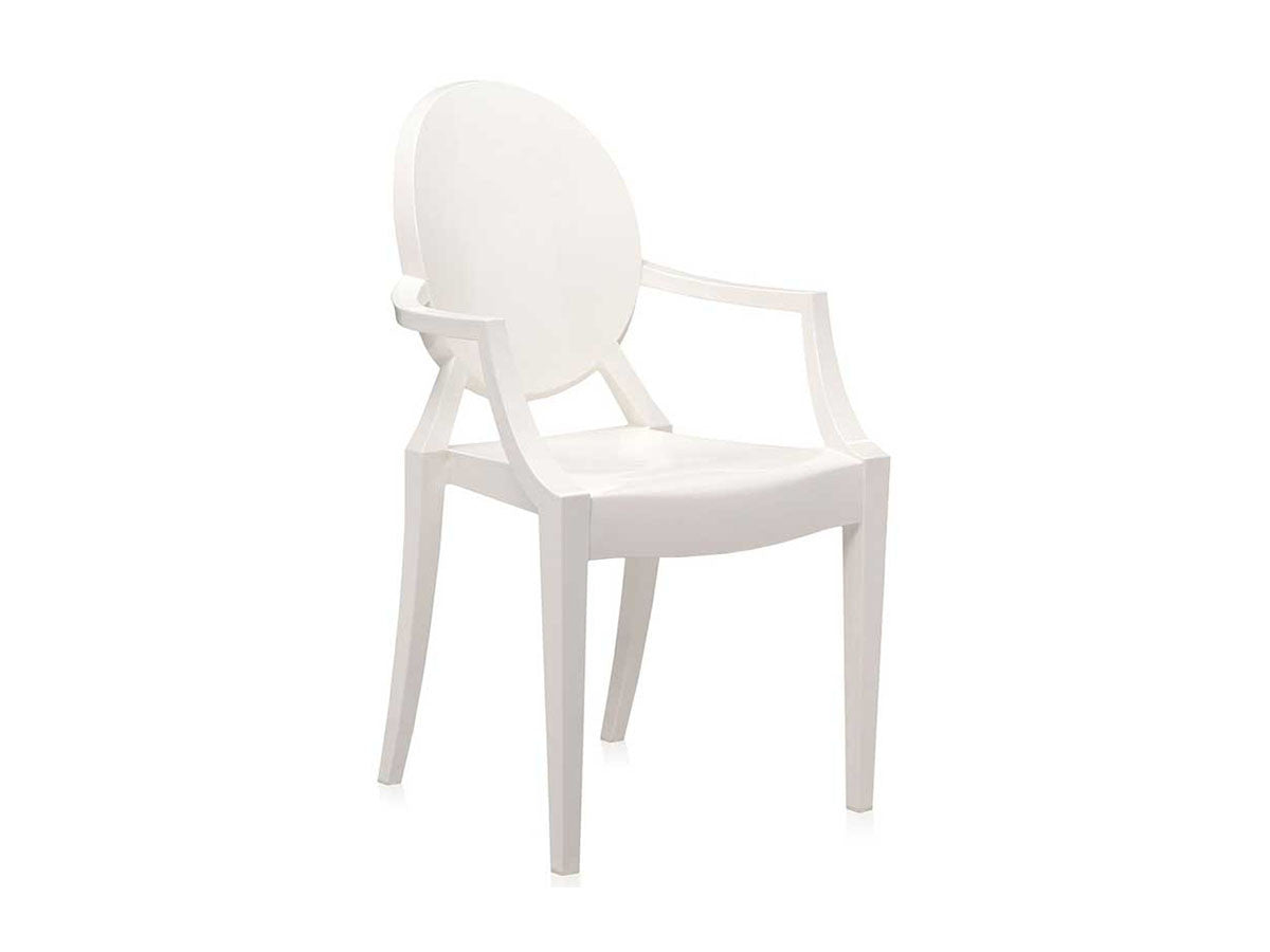 ルイ15世スタイルの椅子をポリカーボネート樹脂でユニークに再現した肘掛けチェア。バロックスタイルを現代風にアレンジすることで新鮮かつ独特な魅力を感じさせます。Kartellのアイコンとも言えるベストセラーモデルです。ルイゴーストはポリカーボネート樹脂を使用した一体型射出成形として世界でも代表的な例で、透明な儚いイメージとは裏腹に安定した耐久性があります。衝撃や傷に強く、屋外での使用も可能。6脚までスタッキングすることができます。