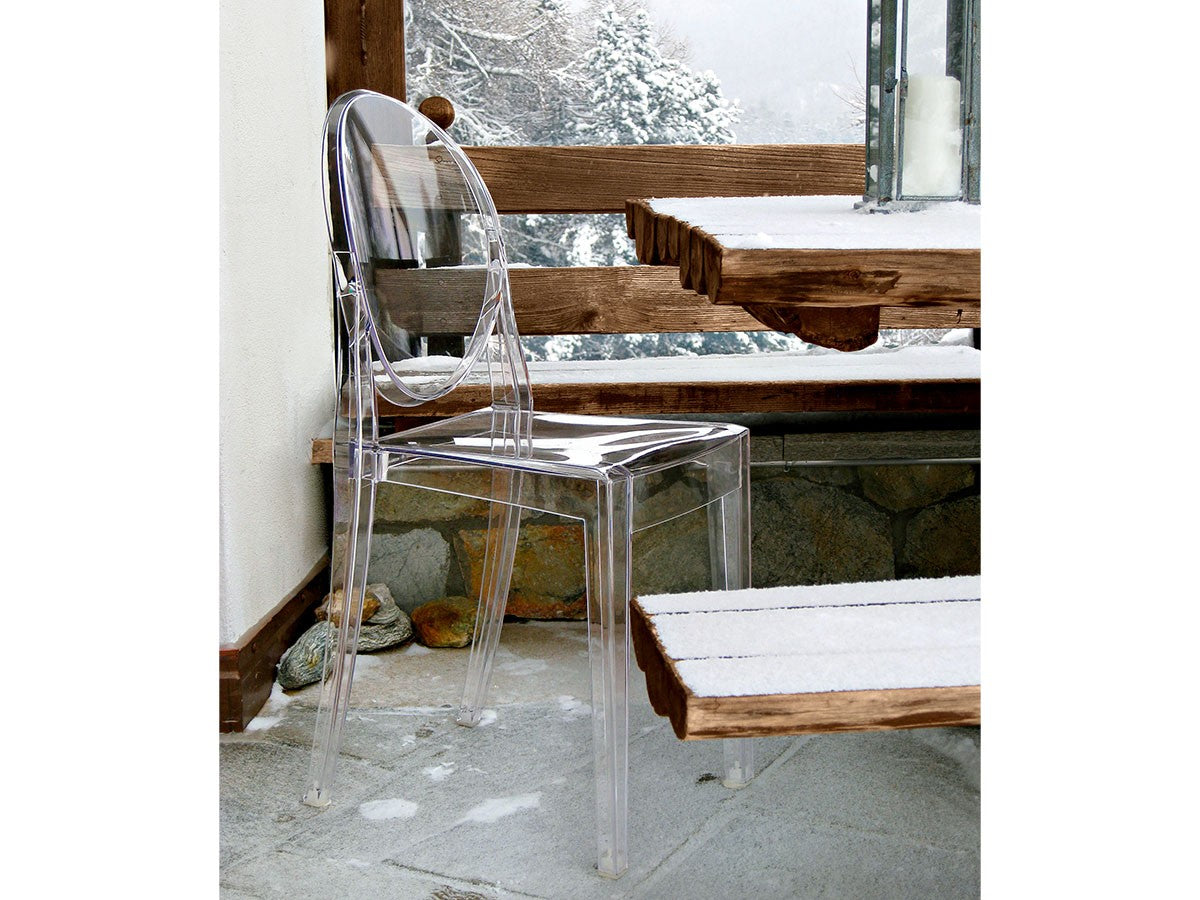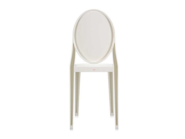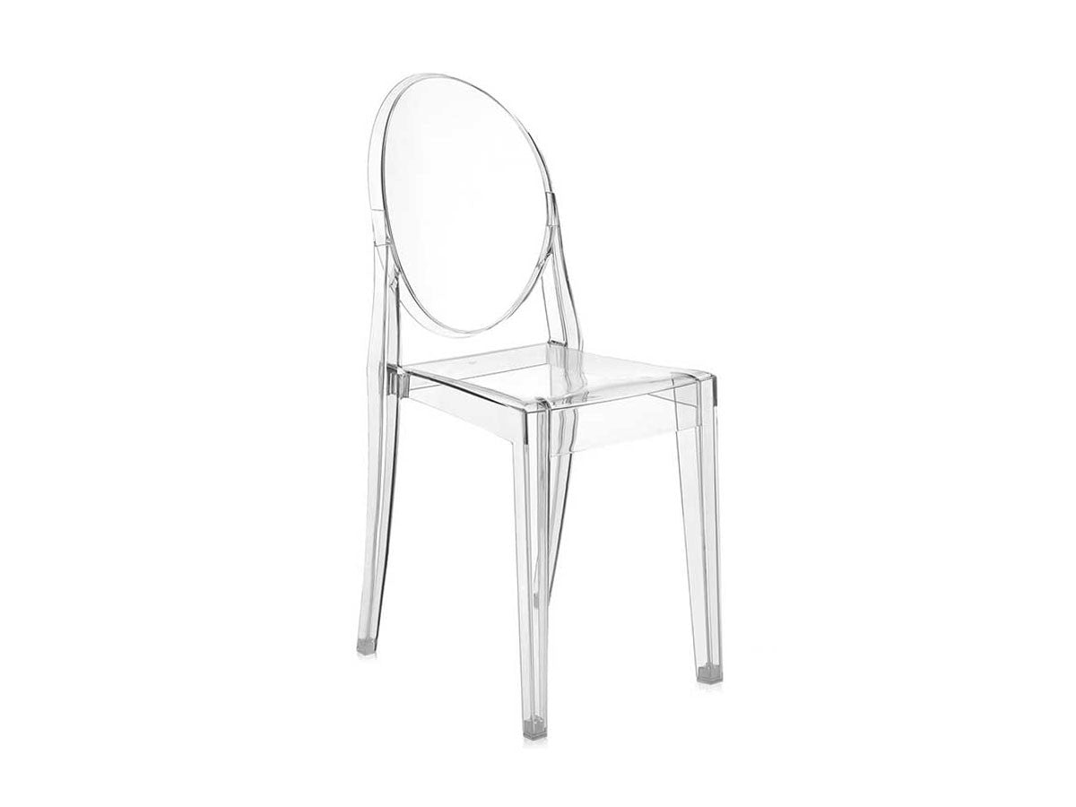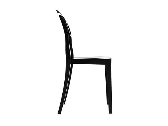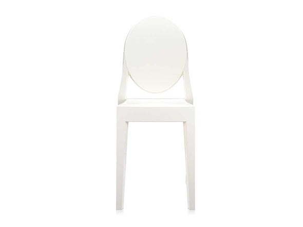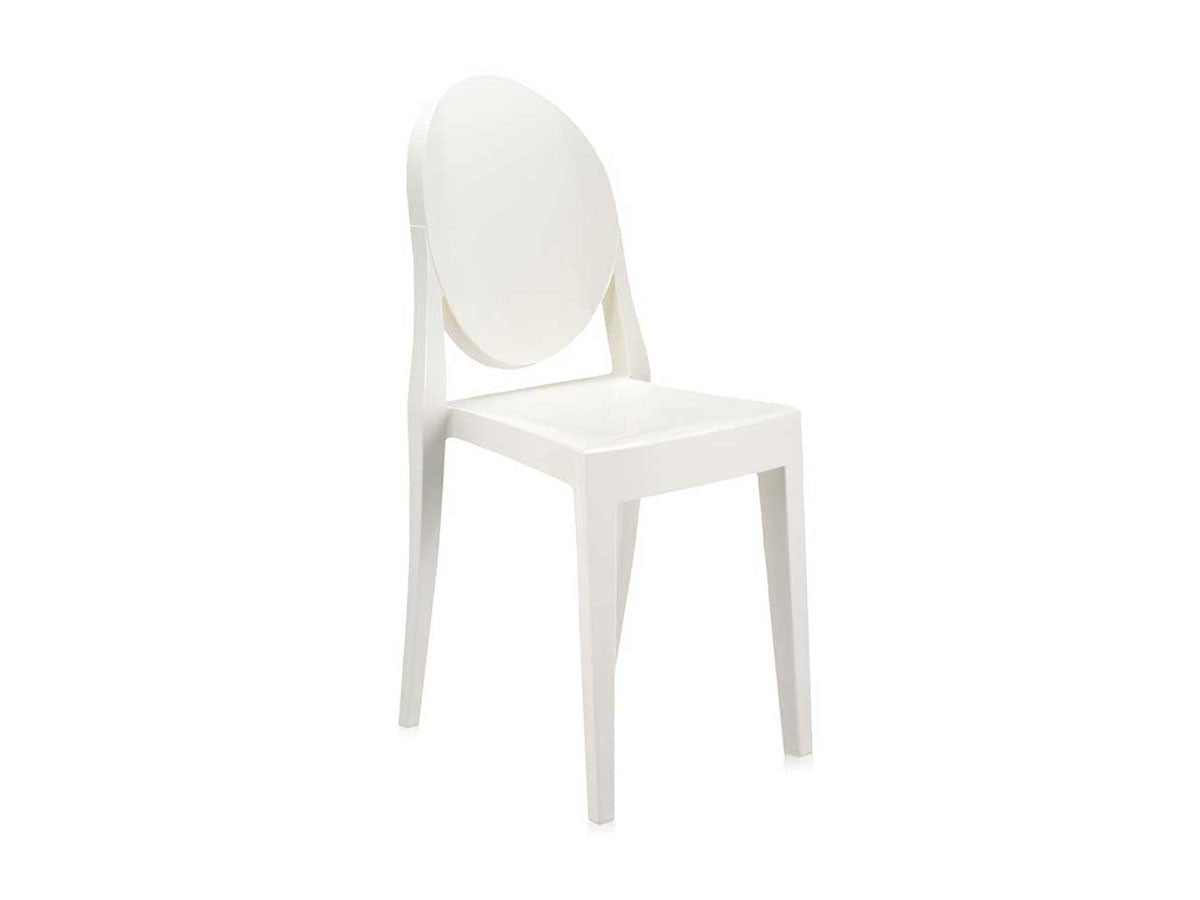 クラシックなラインに、アンティークのメダルを思わす丸みを帯びたデザインの背もたれが印象的なヴィクトリアゴースト。一体型射出成形で作られたポリカーボネート製で、安定性があり傷や衝撃に強く、耐候性にも優れています。スリムなつくりのため省スペースでご使用になれます。