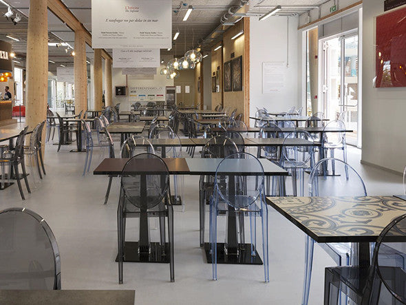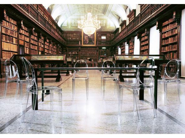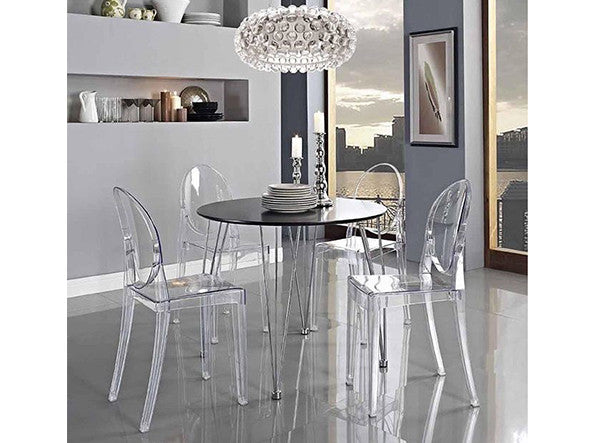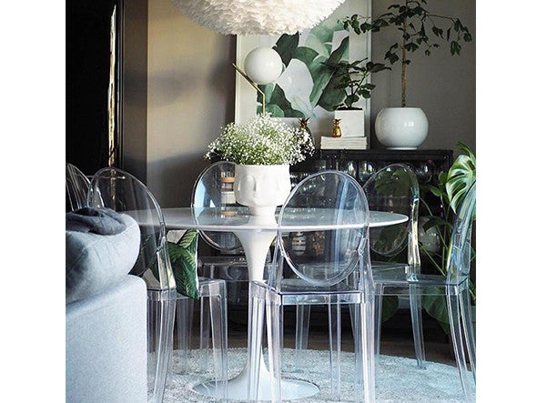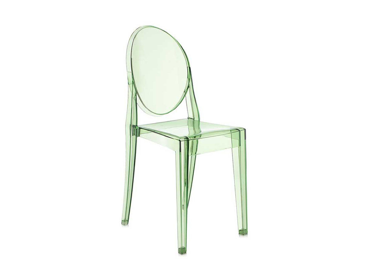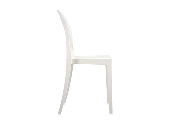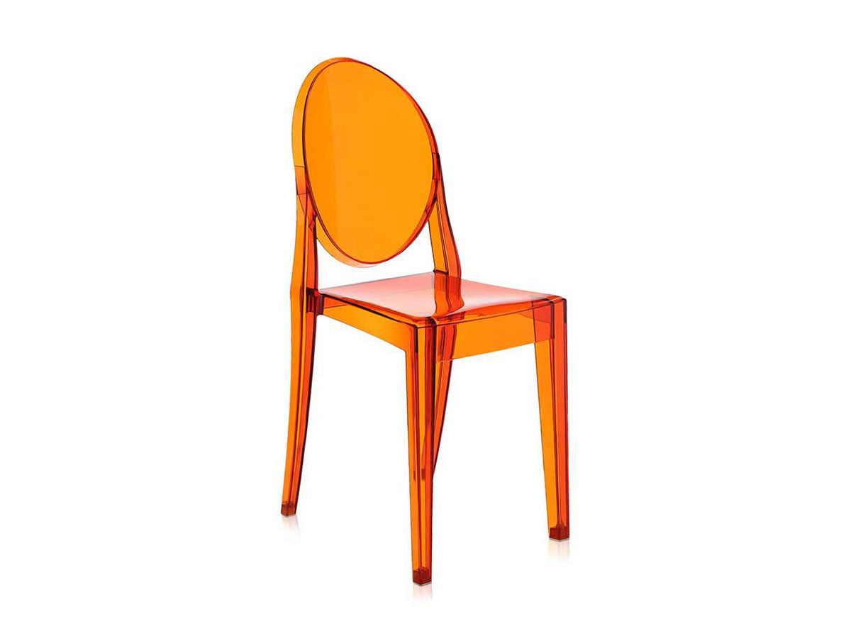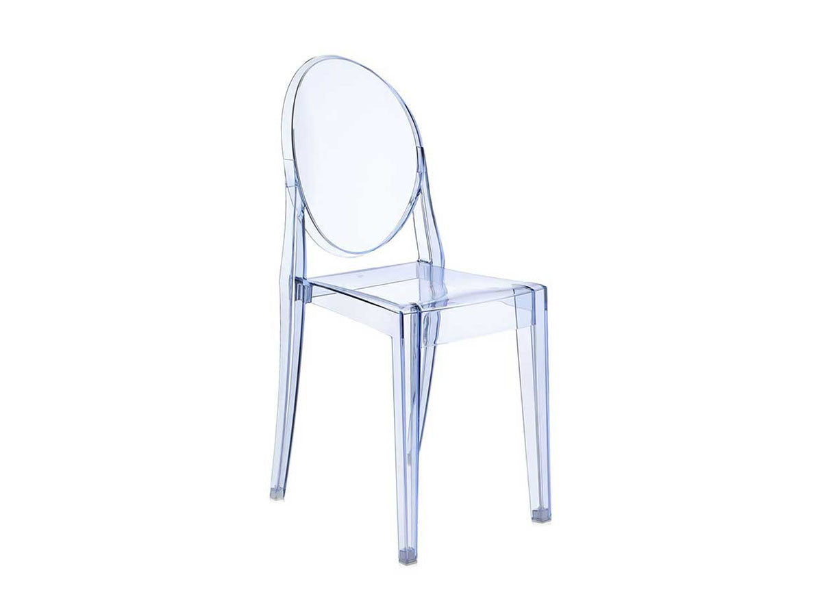 クラシックなラインに、アンティークのメダルを思わす丸みを帯びたデザインの背もたれが印象的なヴィクトリアゴースト。一体型射出成形で作られたポリカーボネート製で、安定性があり傷や衝撃に強く、耐候性にも優れています。スリムなつくりのため省スペースでご使用になれます。