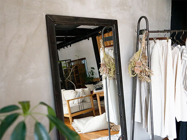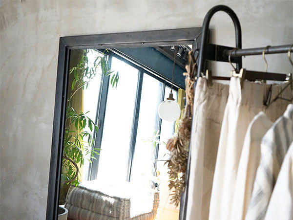 メンズライクでビンテージ感のあるソコフシリーズのミラー。スチールは素材の加工や溶接の継ぎはぎをそのまま残し、荒々しい雰囲気に。ウッド素材の家具との相性も抜群です。Lサイズは美容室や店舗のディスプレイにもおすすめです。「socph / ソコフ」とは感覚の対比が調和されたことを表す造語です。「男性っぽい、でもどこか女性らしい」「気軽にしっかり使える」、ソコフシリーズはそんな不思議だけれど心地よい感覚になるアイテムをそろえています。