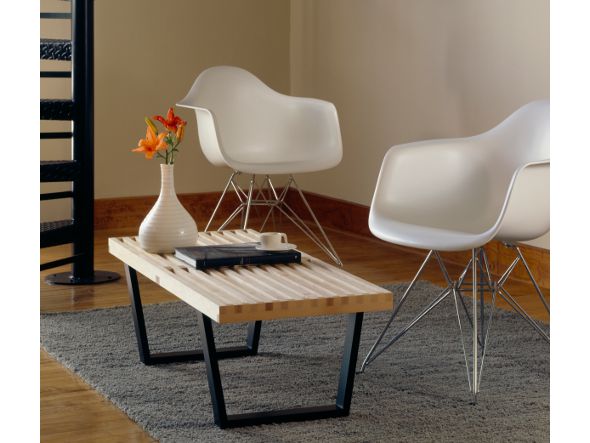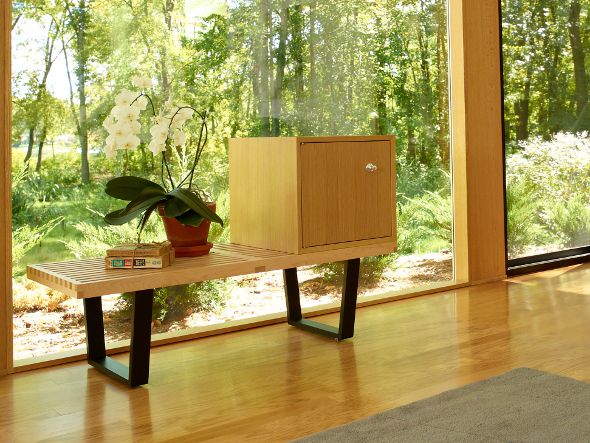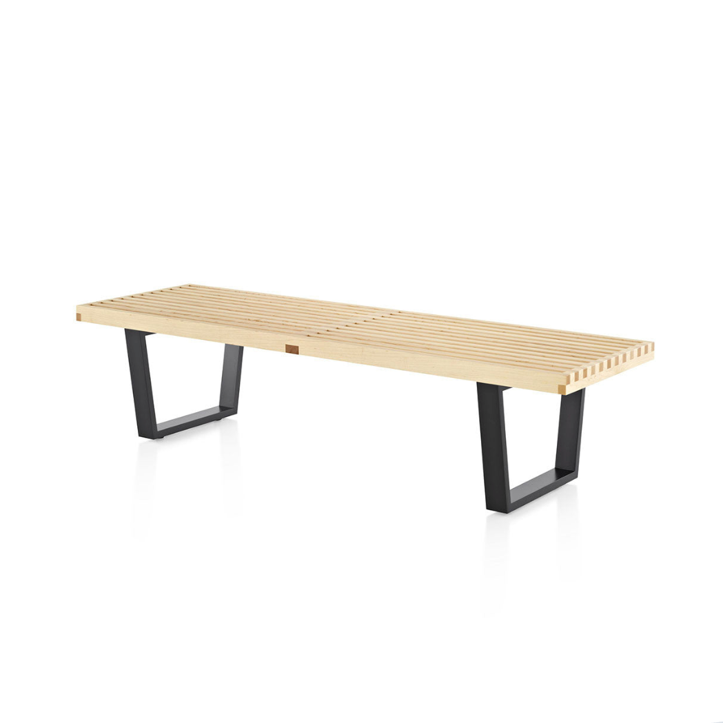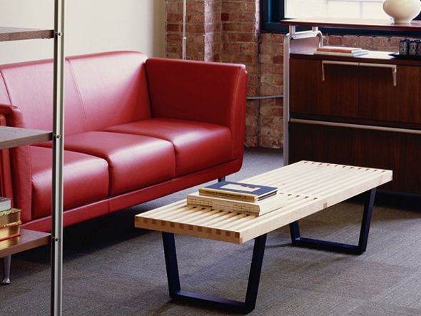 1946年に発表され、今日に至るまでモダンデザインの象徴であり続けるネルソンプラットフォームベンチ。ベンチとして、ローテーブルとして、シーンに合わせ様々な役割を果たします。すっきりとした直線的なラインは「目的を明確に示す外観を作る」というジョージ・ネルソンによる誠実なデザインへのこだわり。座面は空気と光が通るよう間隔があけられており、時間と共に変化する光と影のコントラストを楽しんでいただけます。